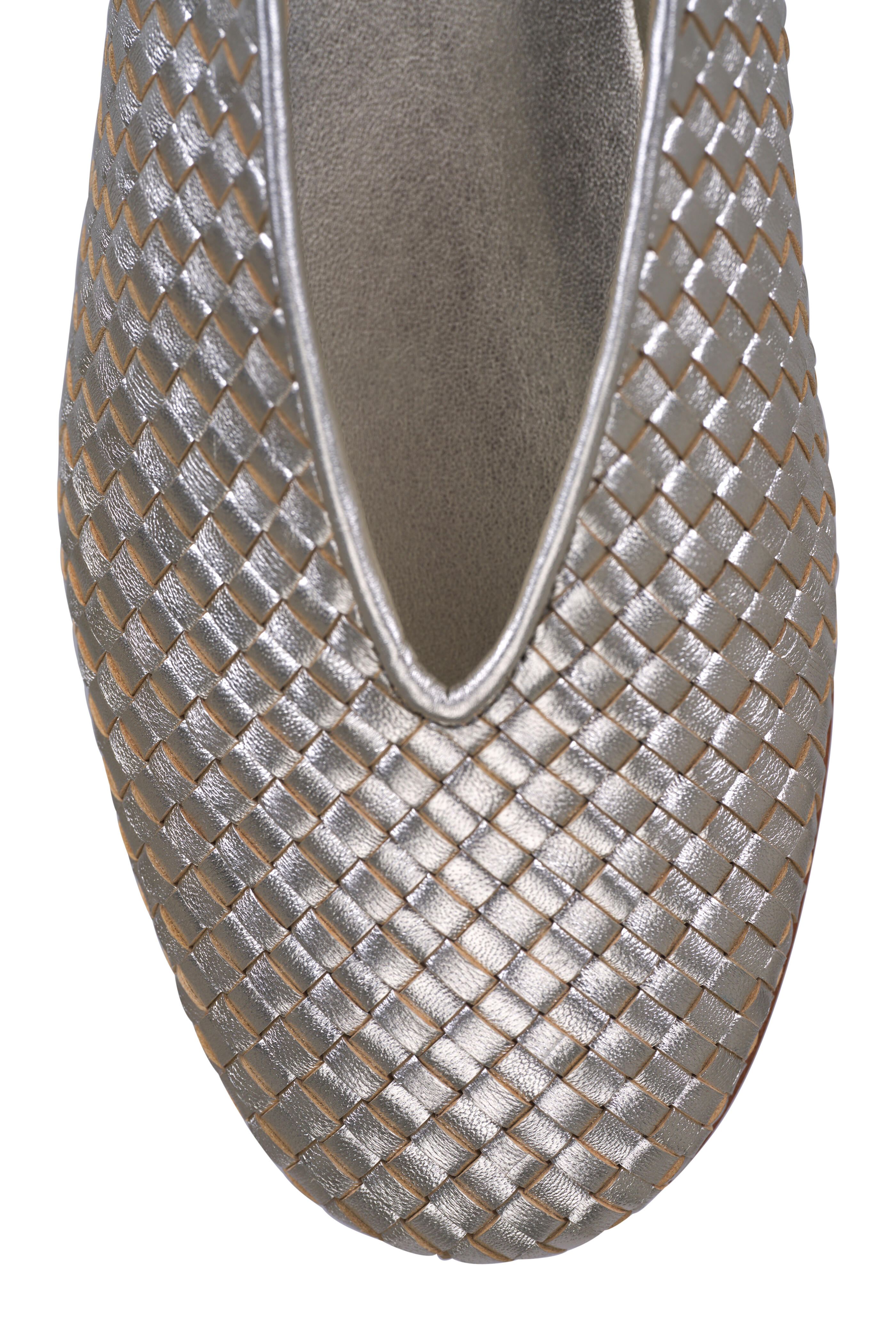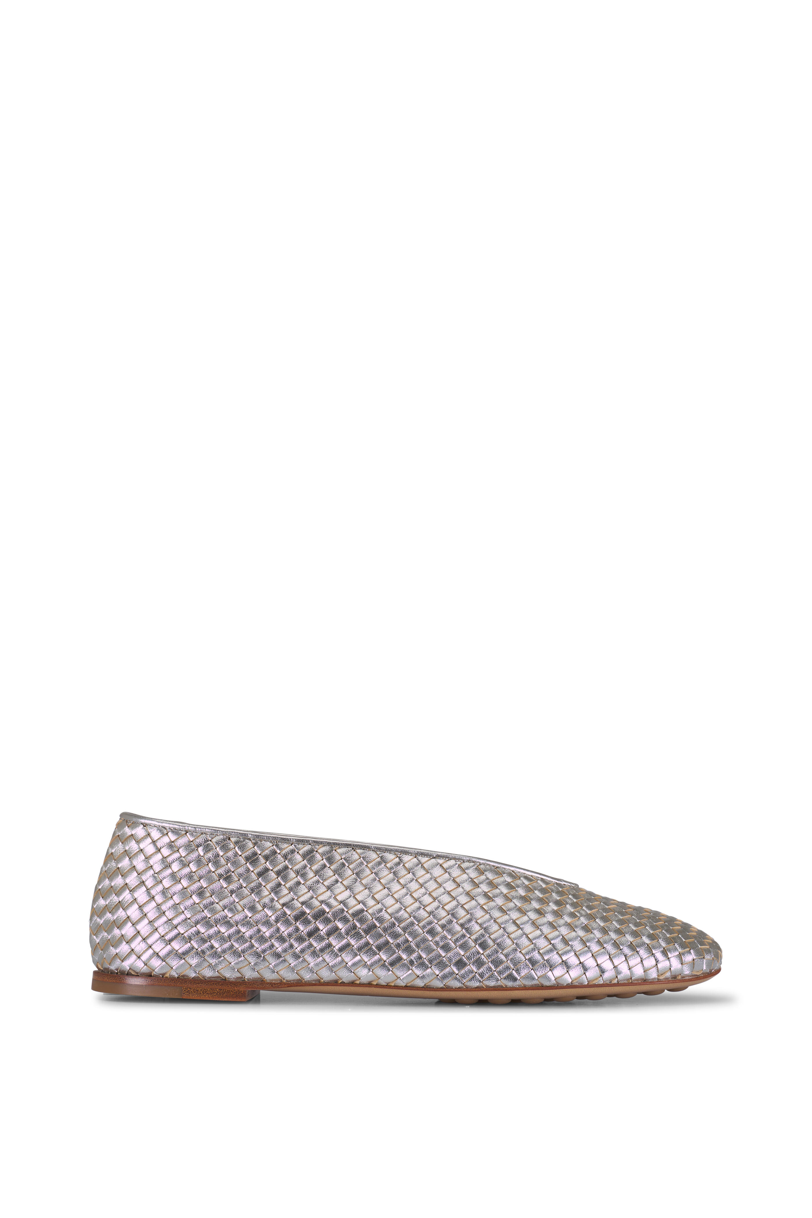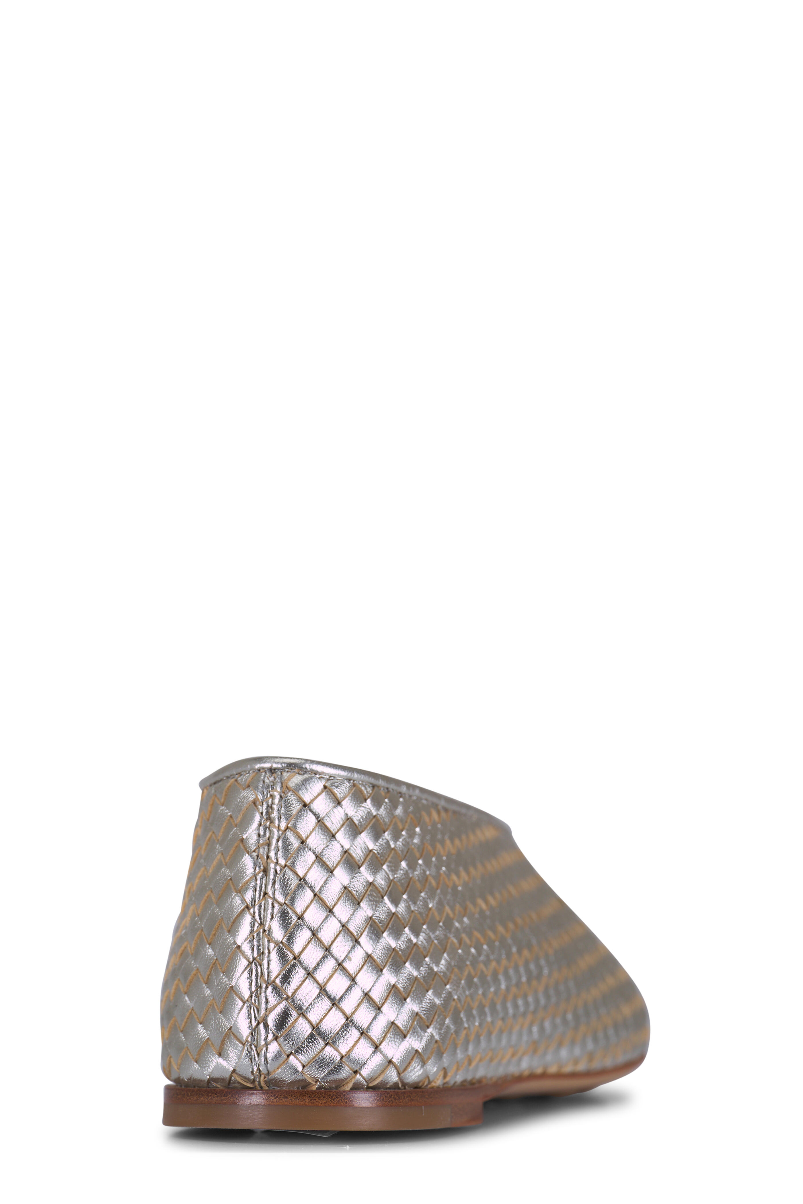 Rosa Platinum Intrecciato Leather Flat