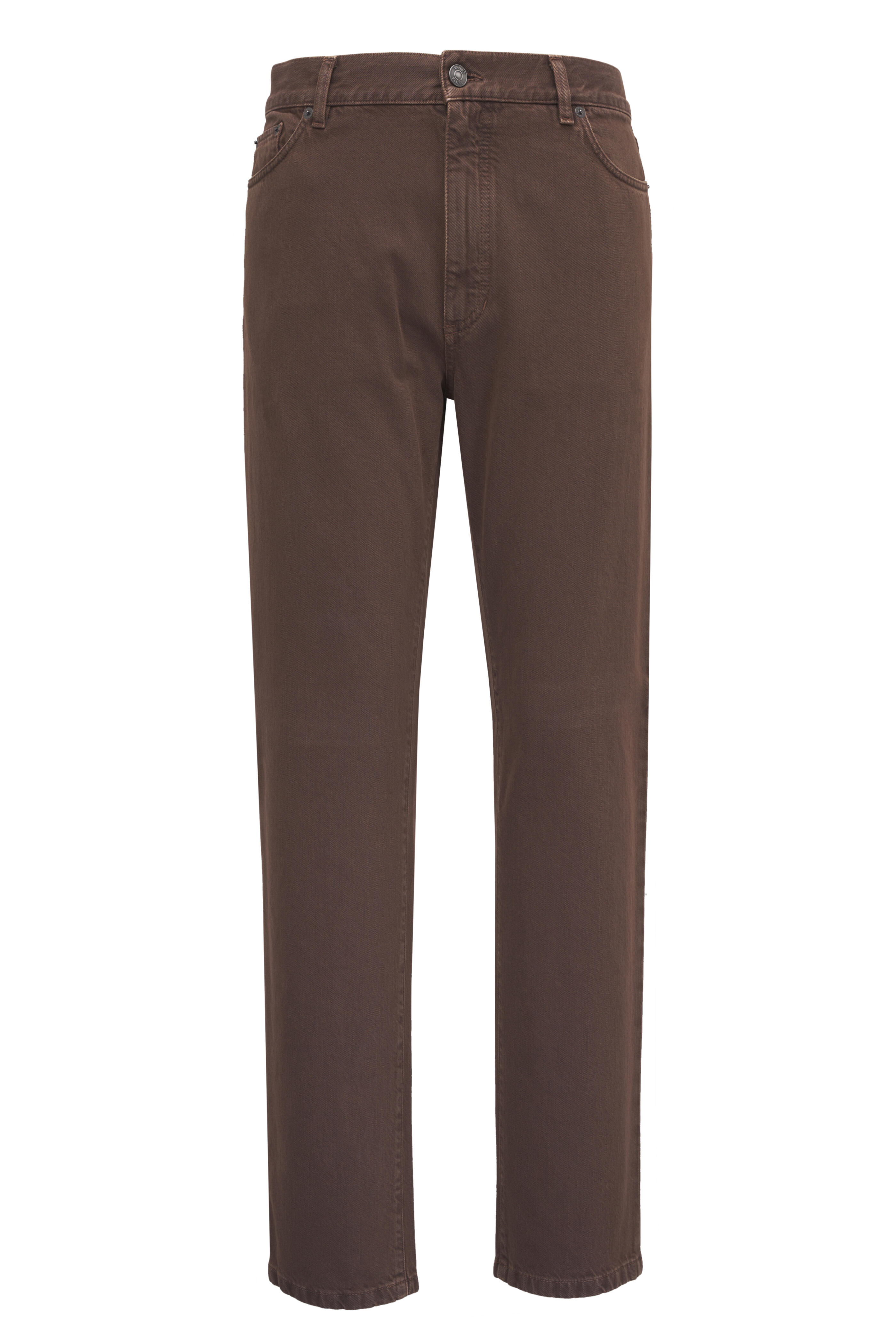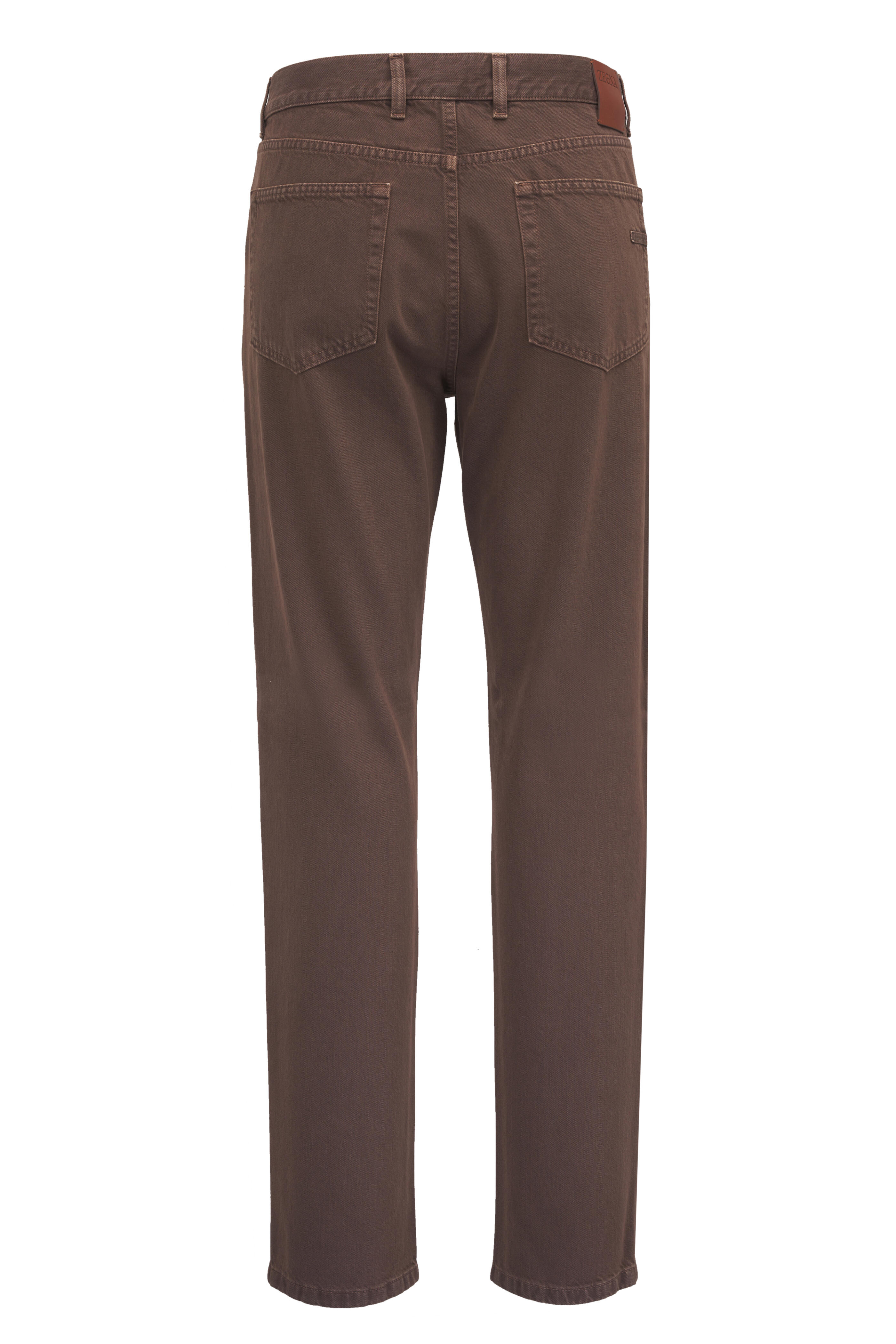 Zip fly; button closure. Banded waist; belt loops. Five pocket styling. Imported. Inseam: 33". 100% cotton. Machine wash.