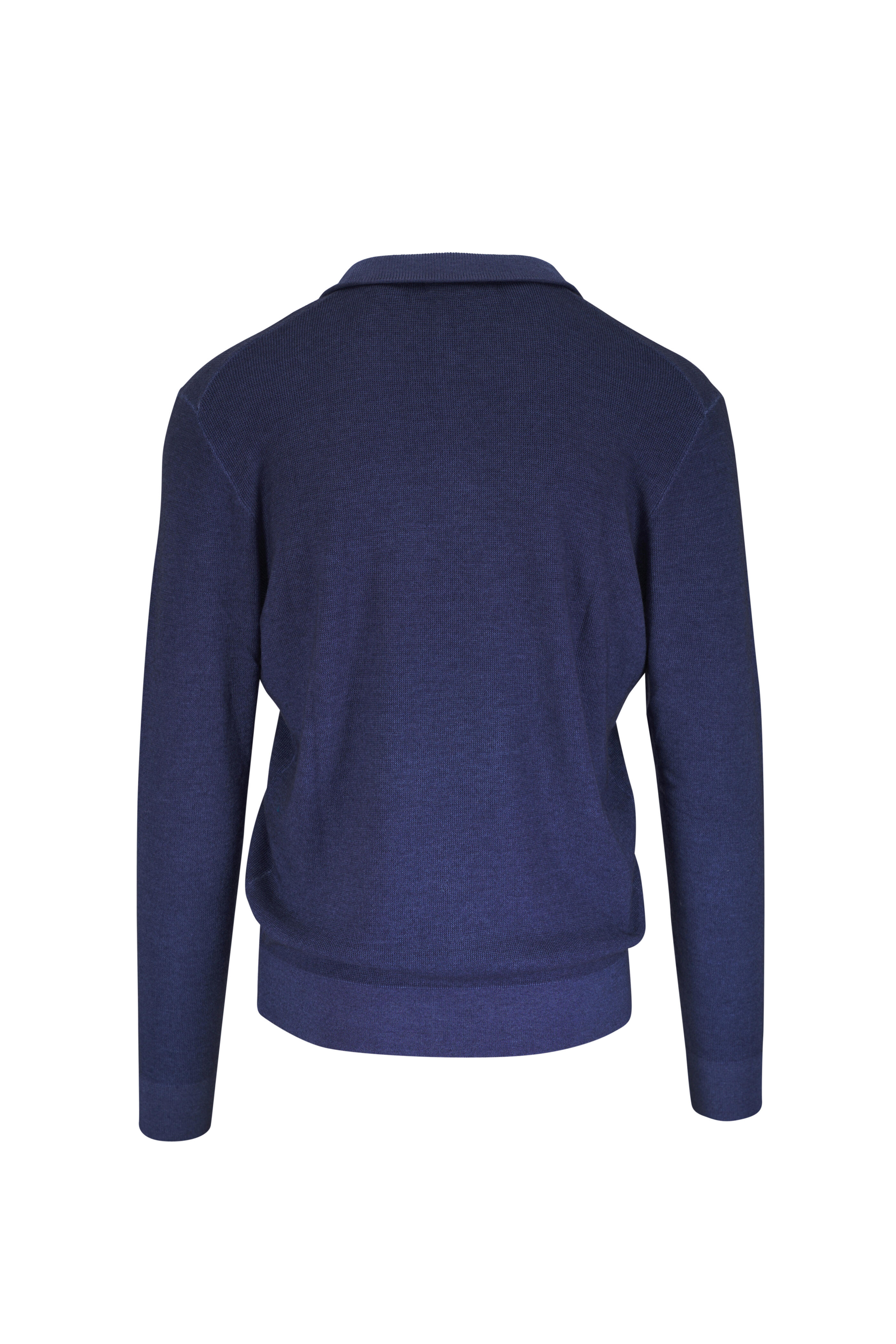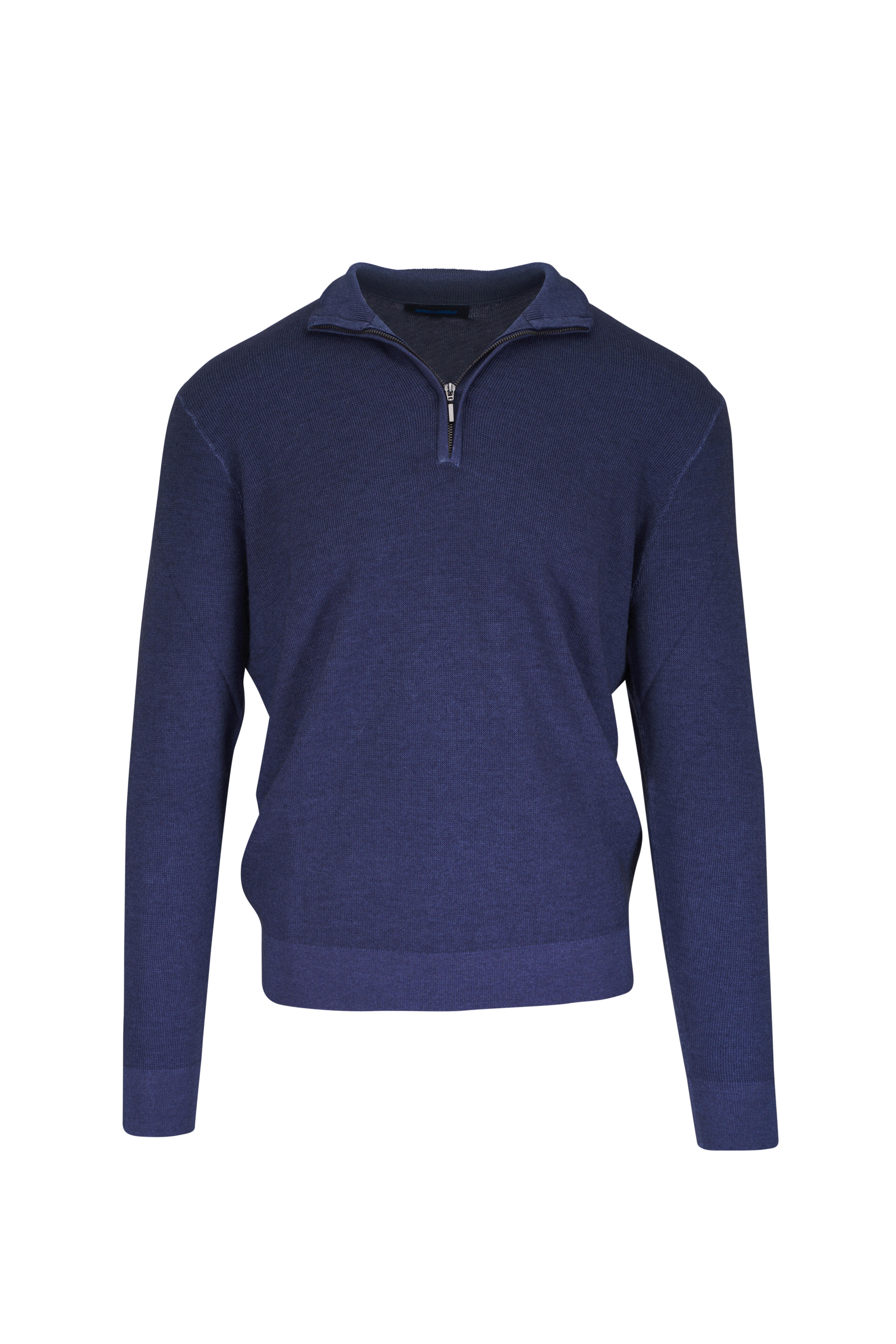 Mock neckline. Quarter zip placket. Imported. 100% extra fine merino wool. Dry clean.