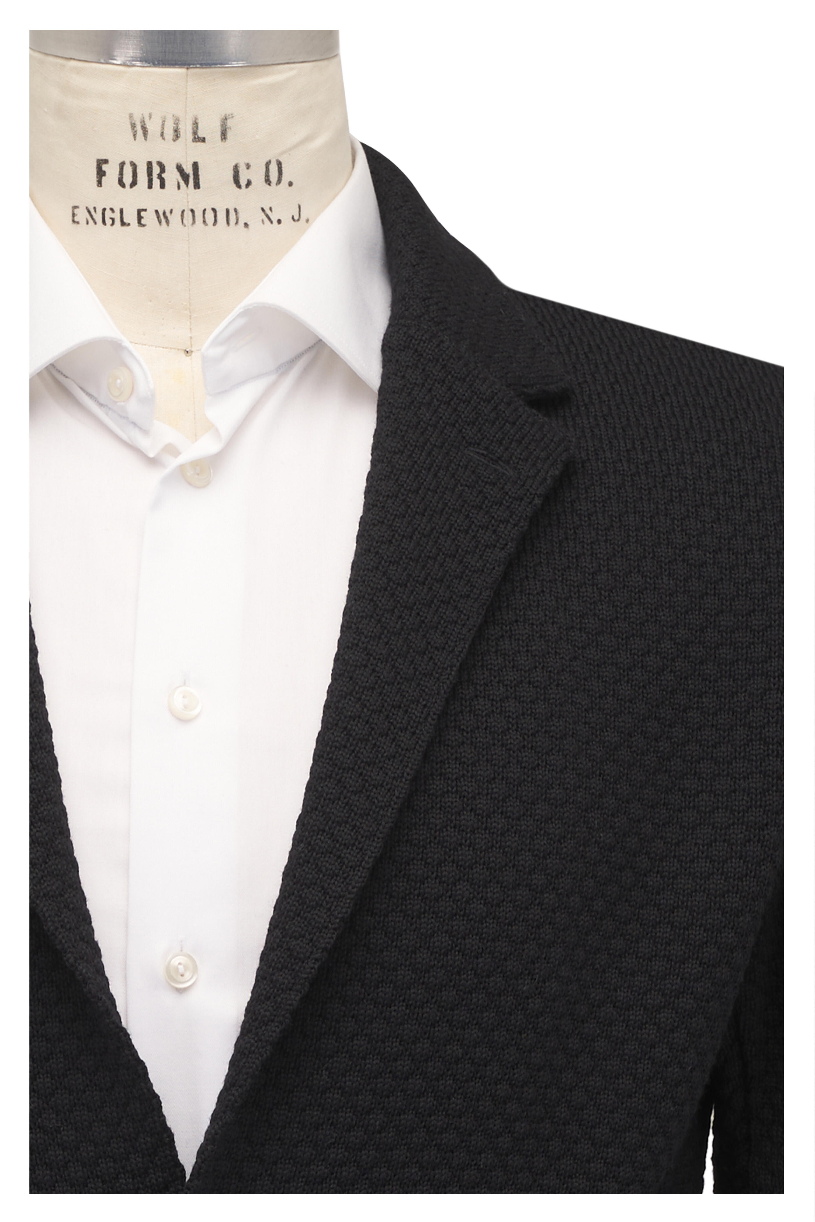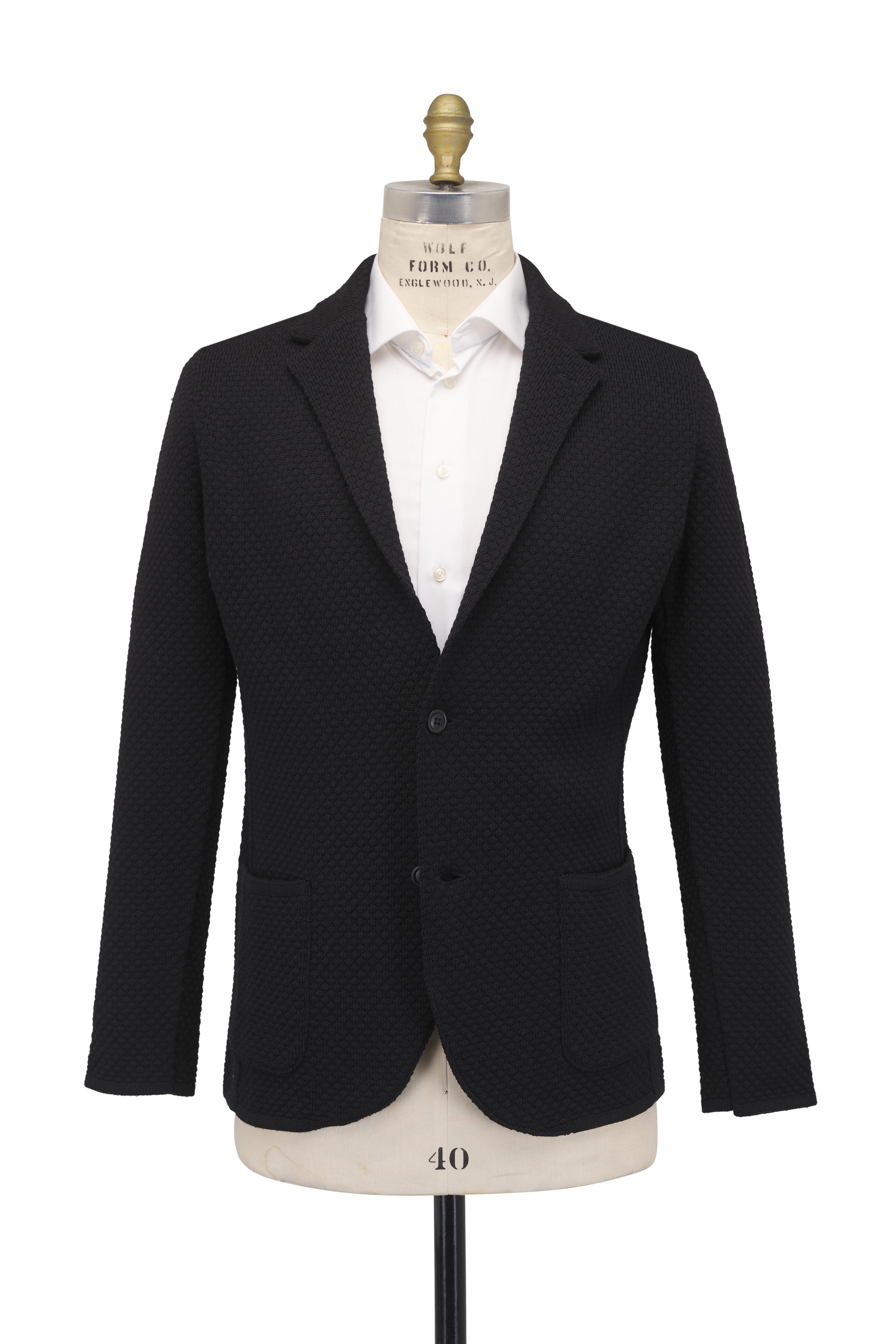 Notched lapels. Lower waist flap pockets. Made in Italy. 100% extrafine merino wool. Dry clean.