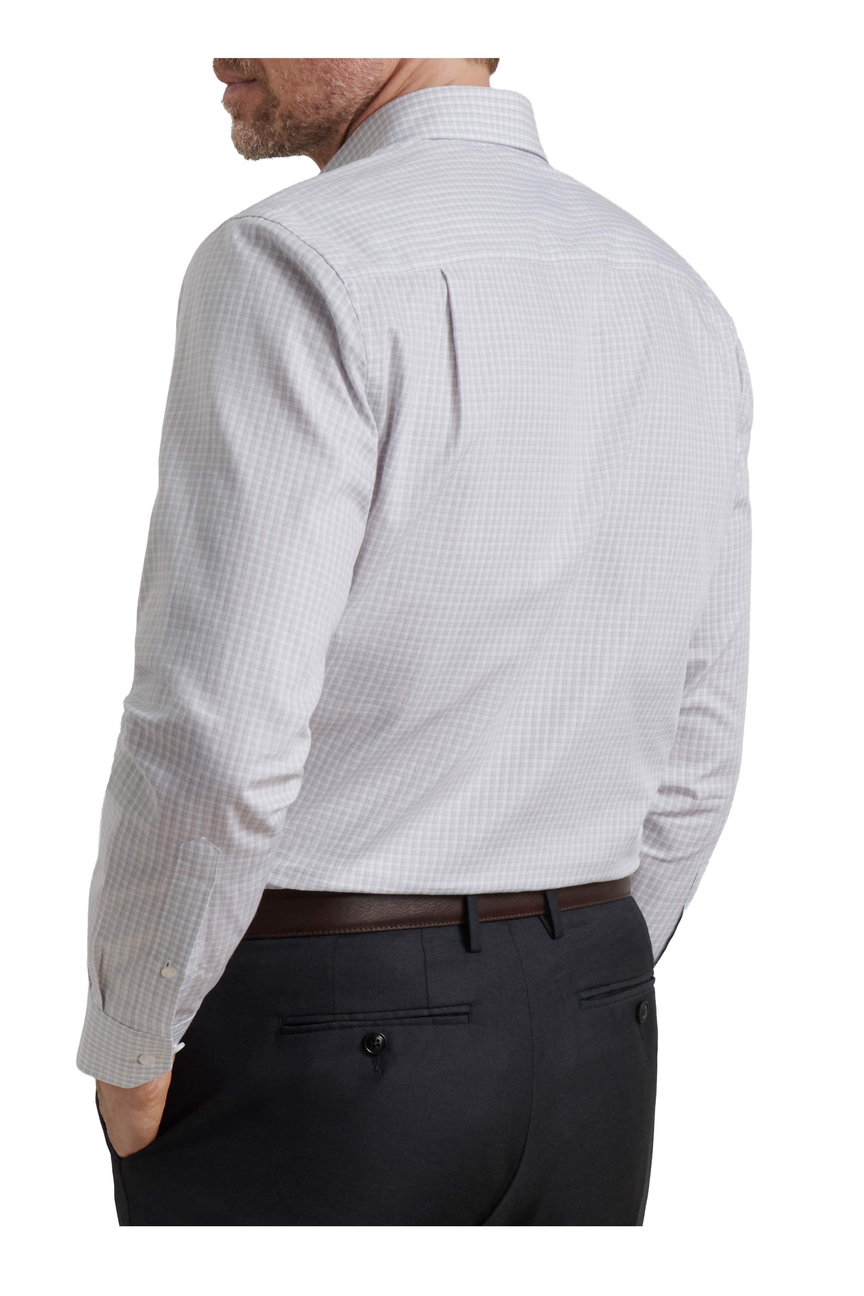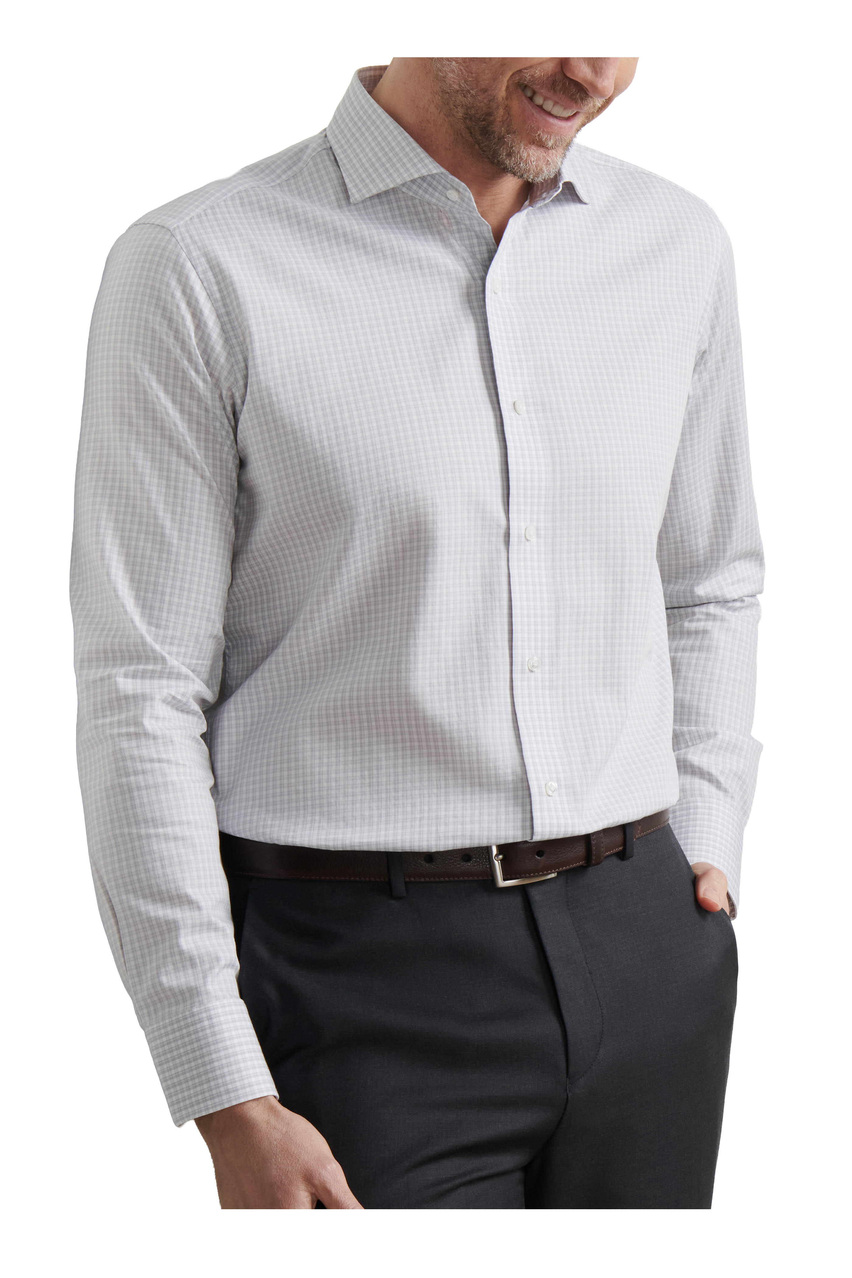Spread collar. French front button placket. Single button mitered cuffs. Imported. 100% cotton. Machine wash.