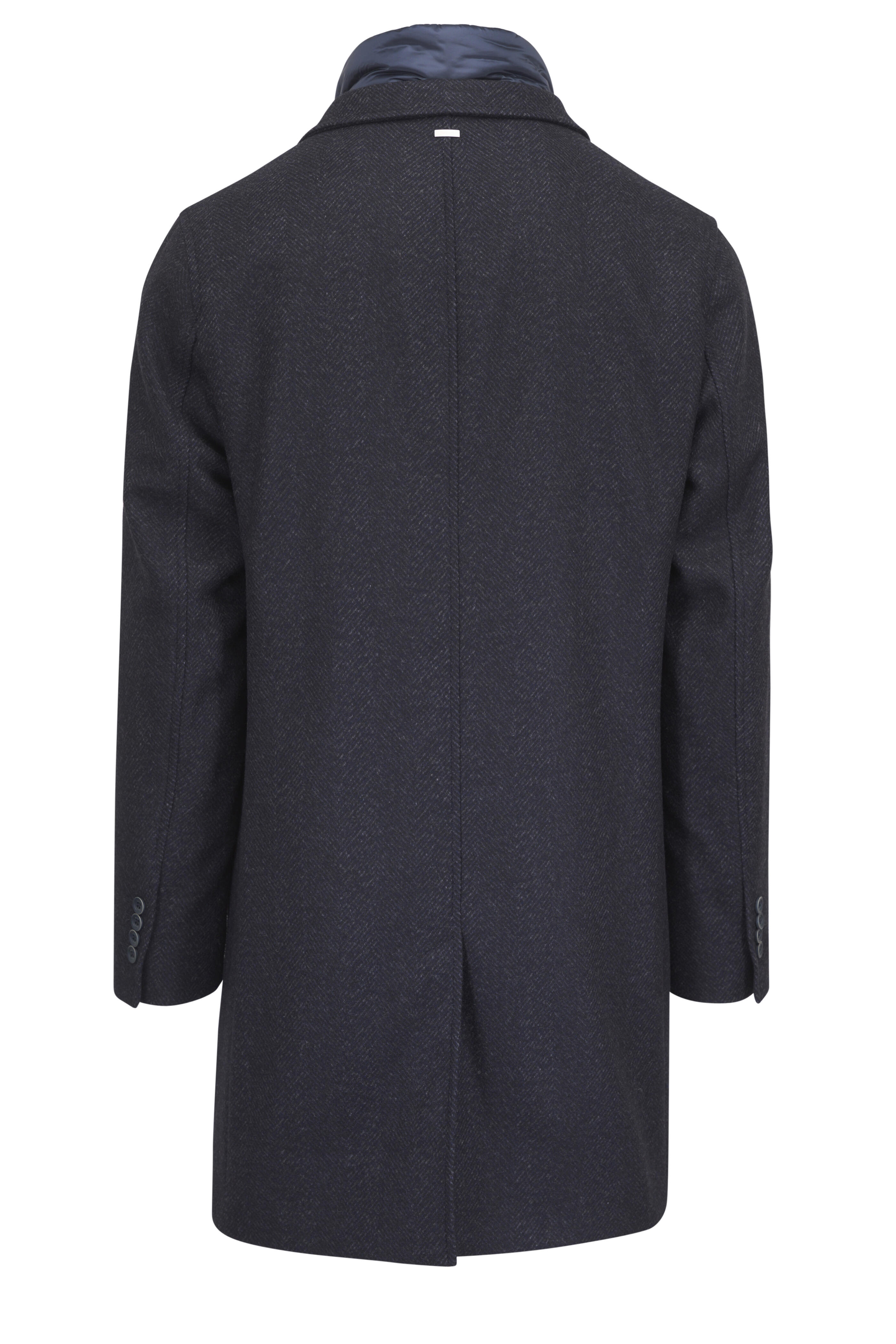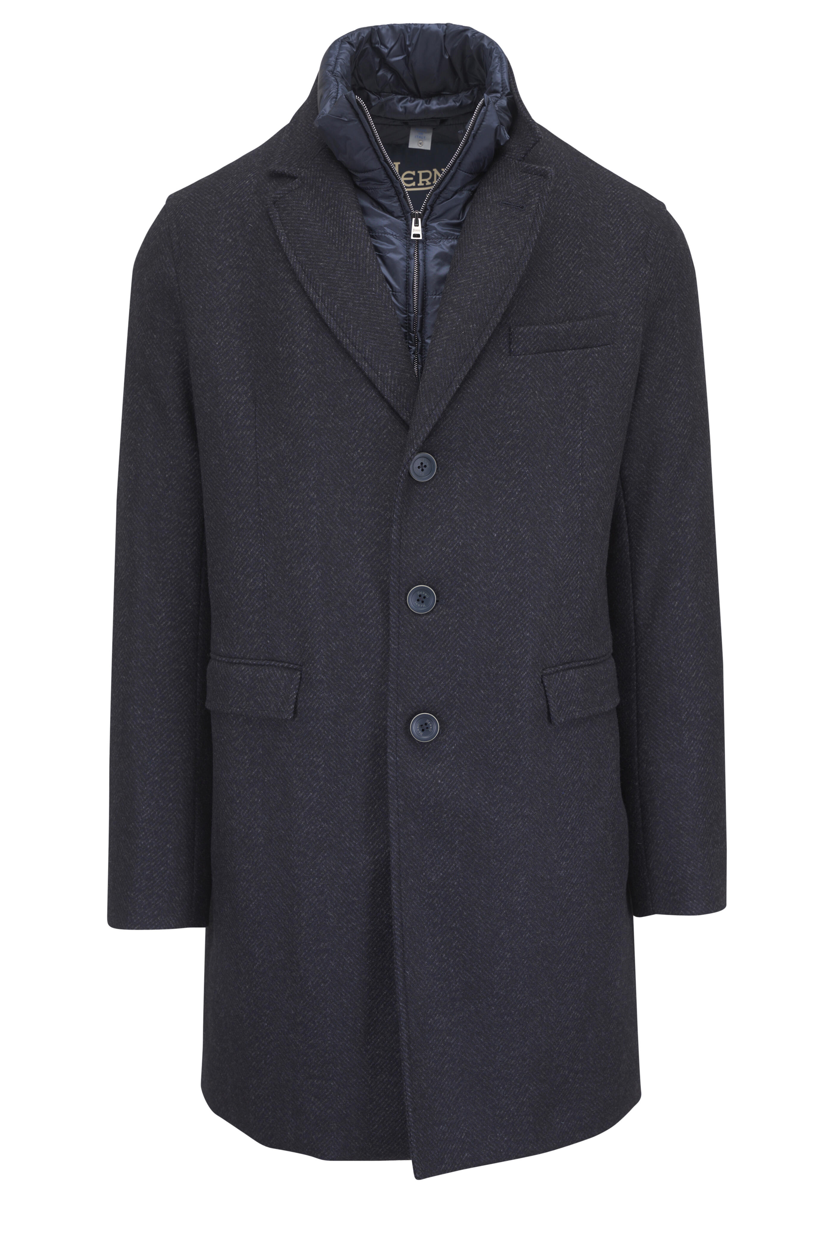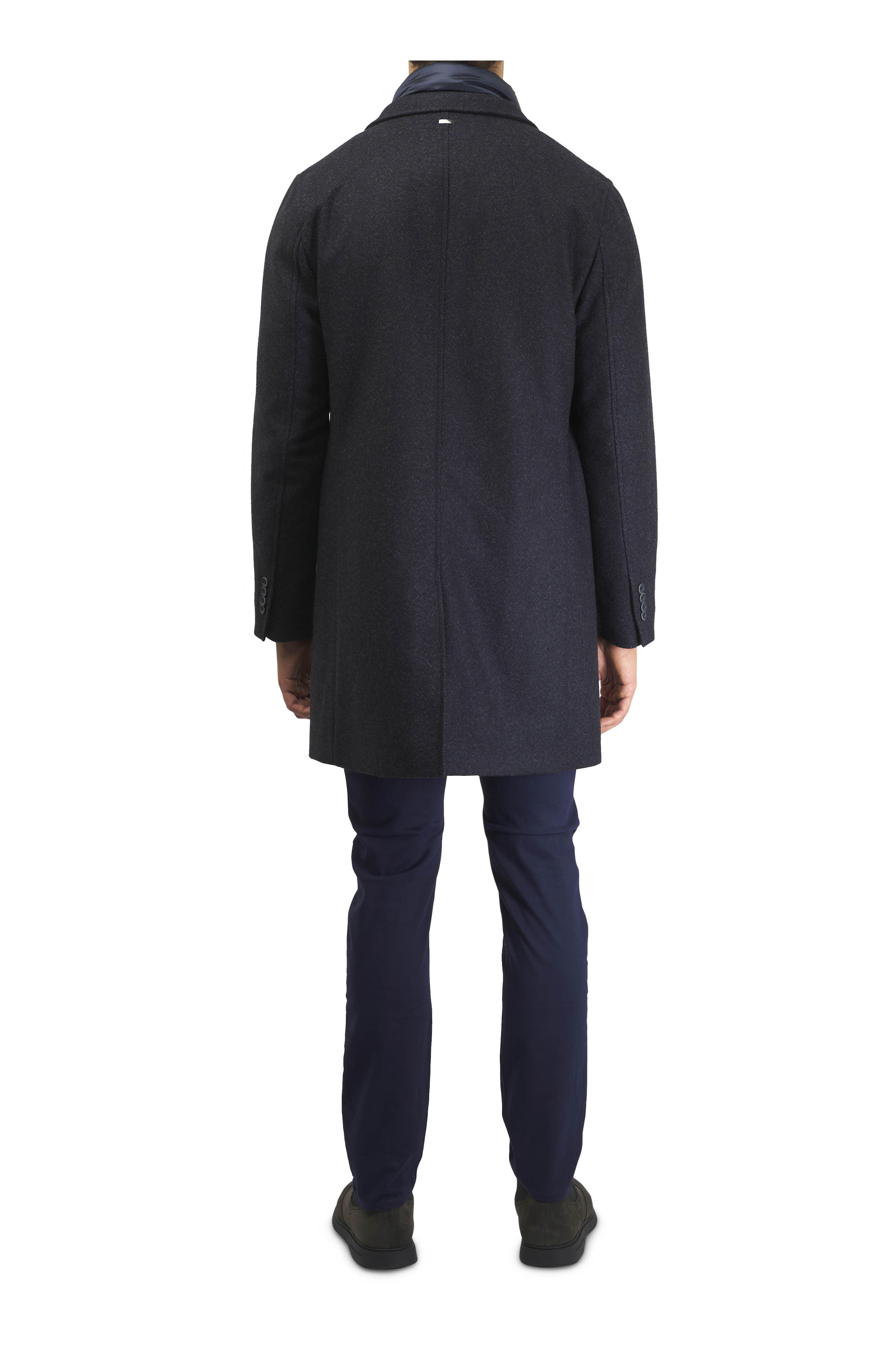 Herringbone Navy Blue Bibbed Top Coat