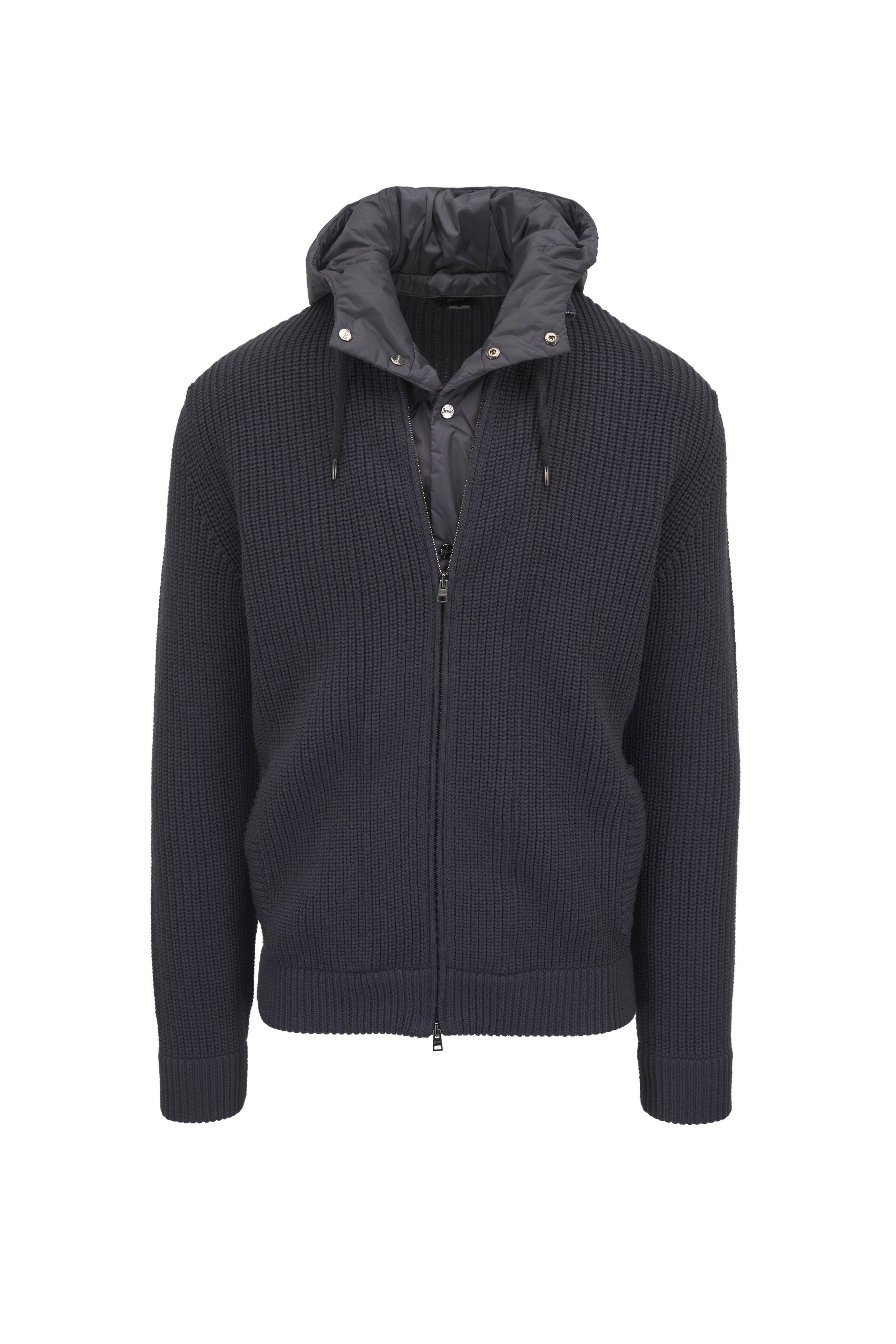 Stand collar. Two-way zip fastening. Lower waist side pockets. Ribbed trims. Removable bib & hood. Imported. 100% wool. Dry clean.