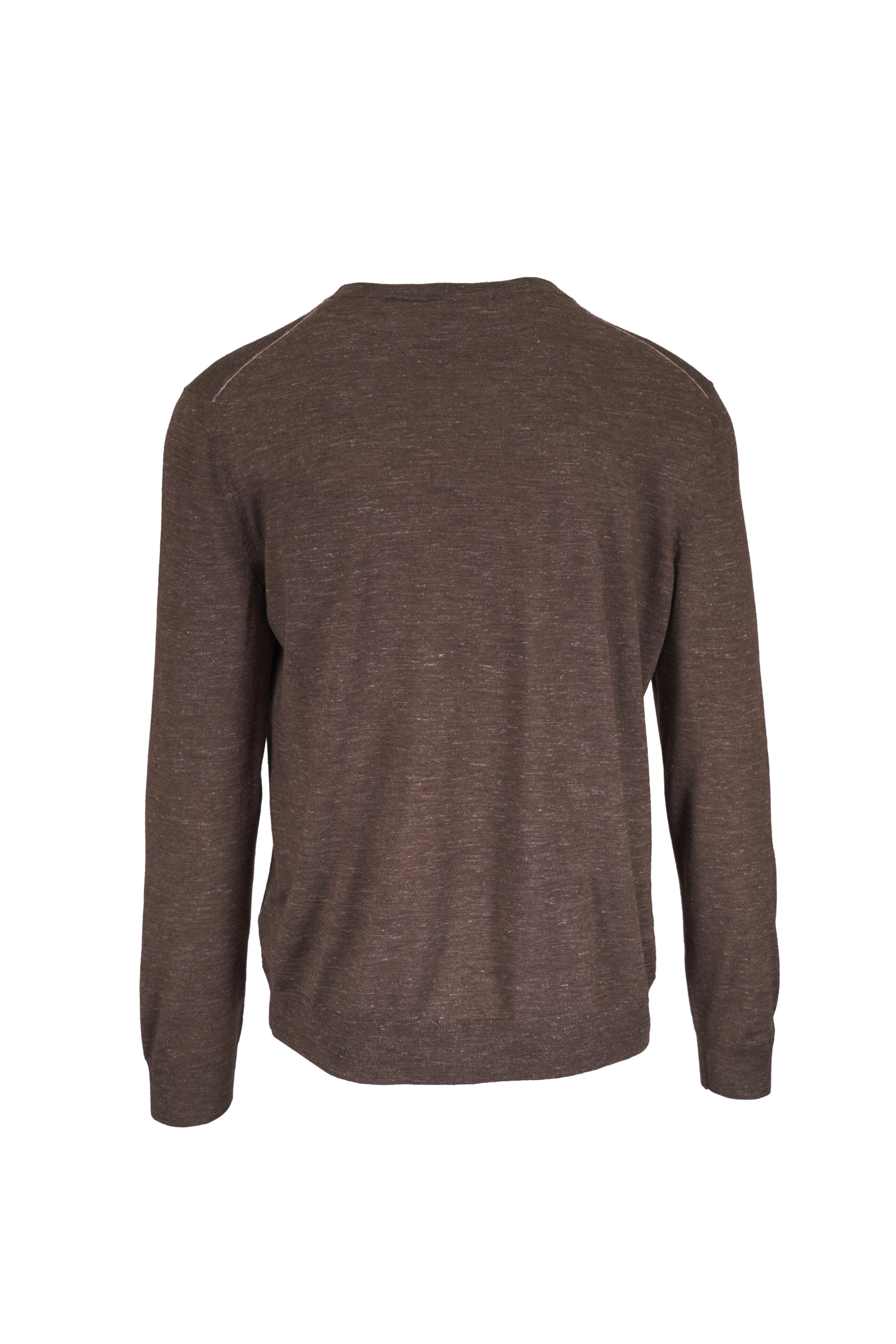 Brown Silk, Cashmere & Linen Crewneck Sweater