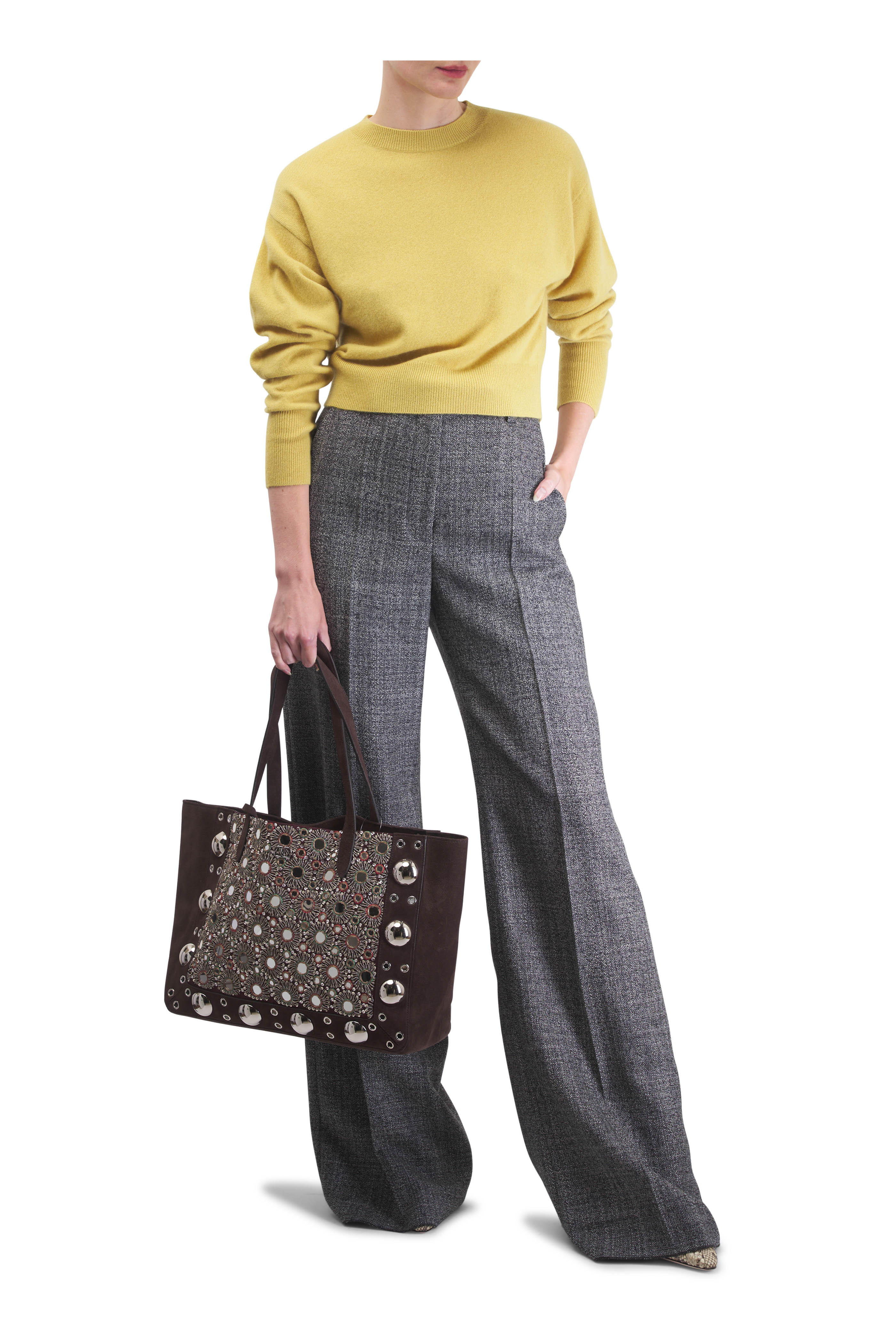 Crew neckline. Dropped shoulders. Ribbed trims. Lightweight knit. Imported. Relaxed fit. 100% organic cashmere. Hand wash.