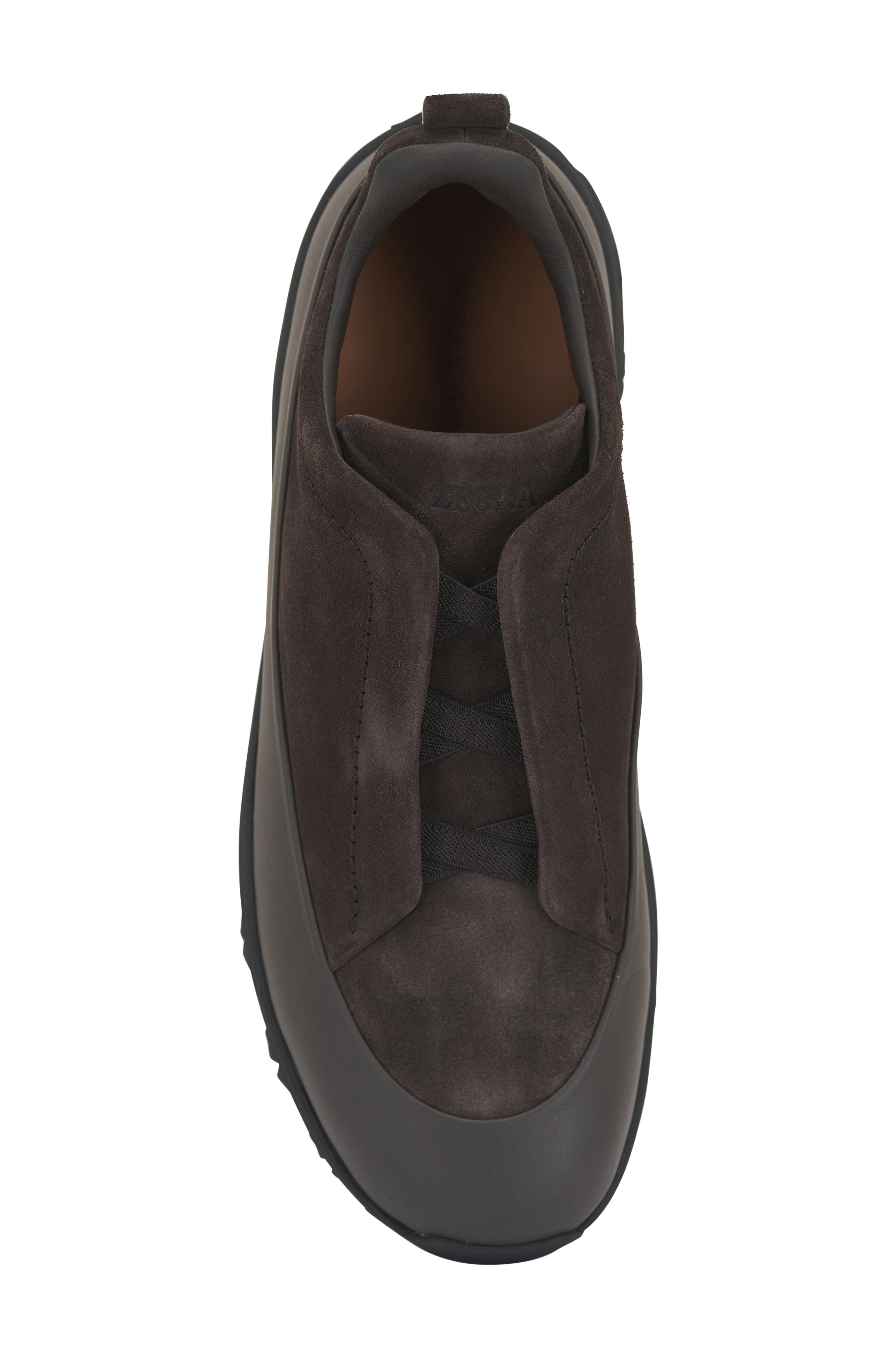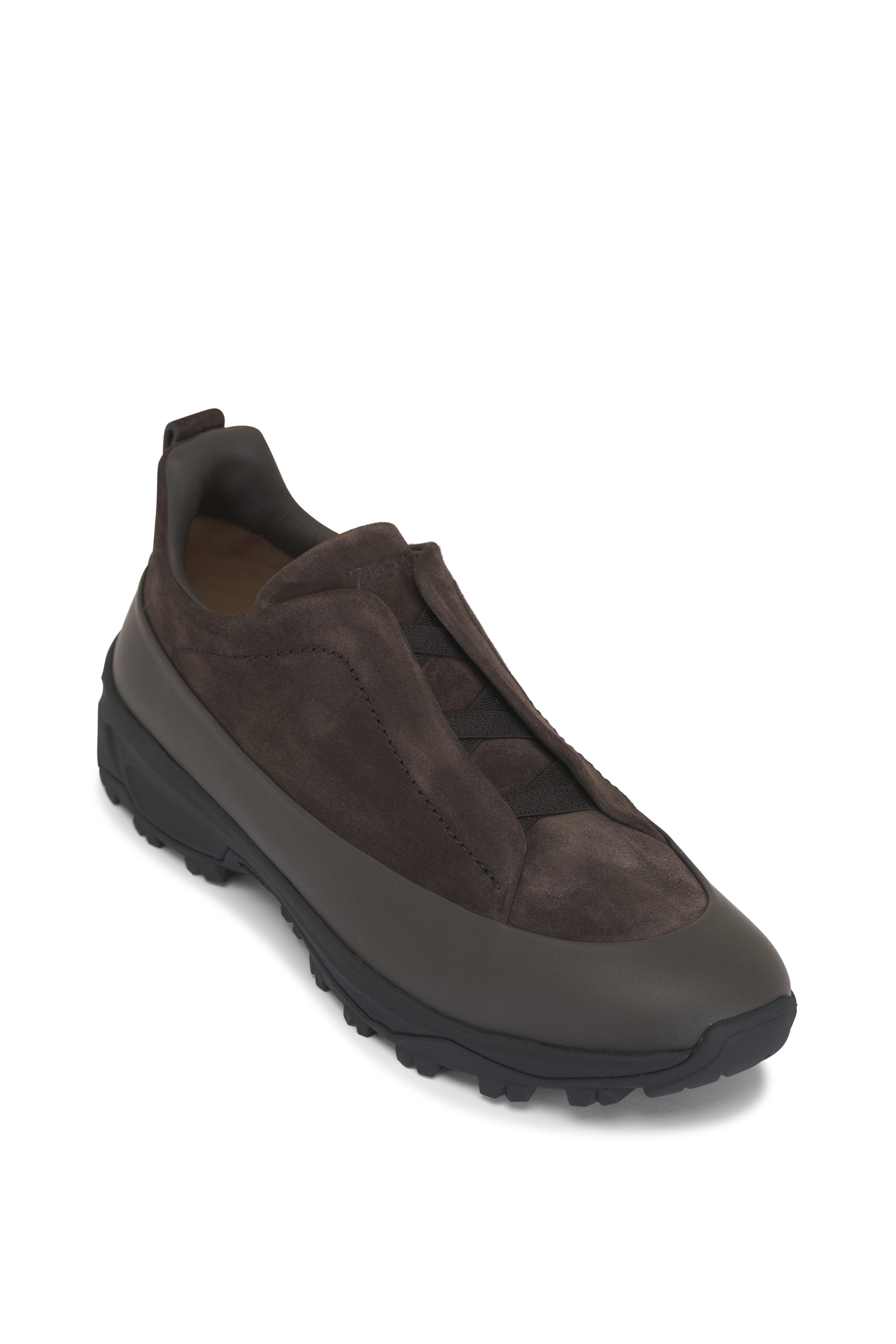 Suede upper; leather trim. Elasticized laces; back pull tab. Leather lining and insole. Vibram® Arctic Grip All Terrain sole. Made in Italy.