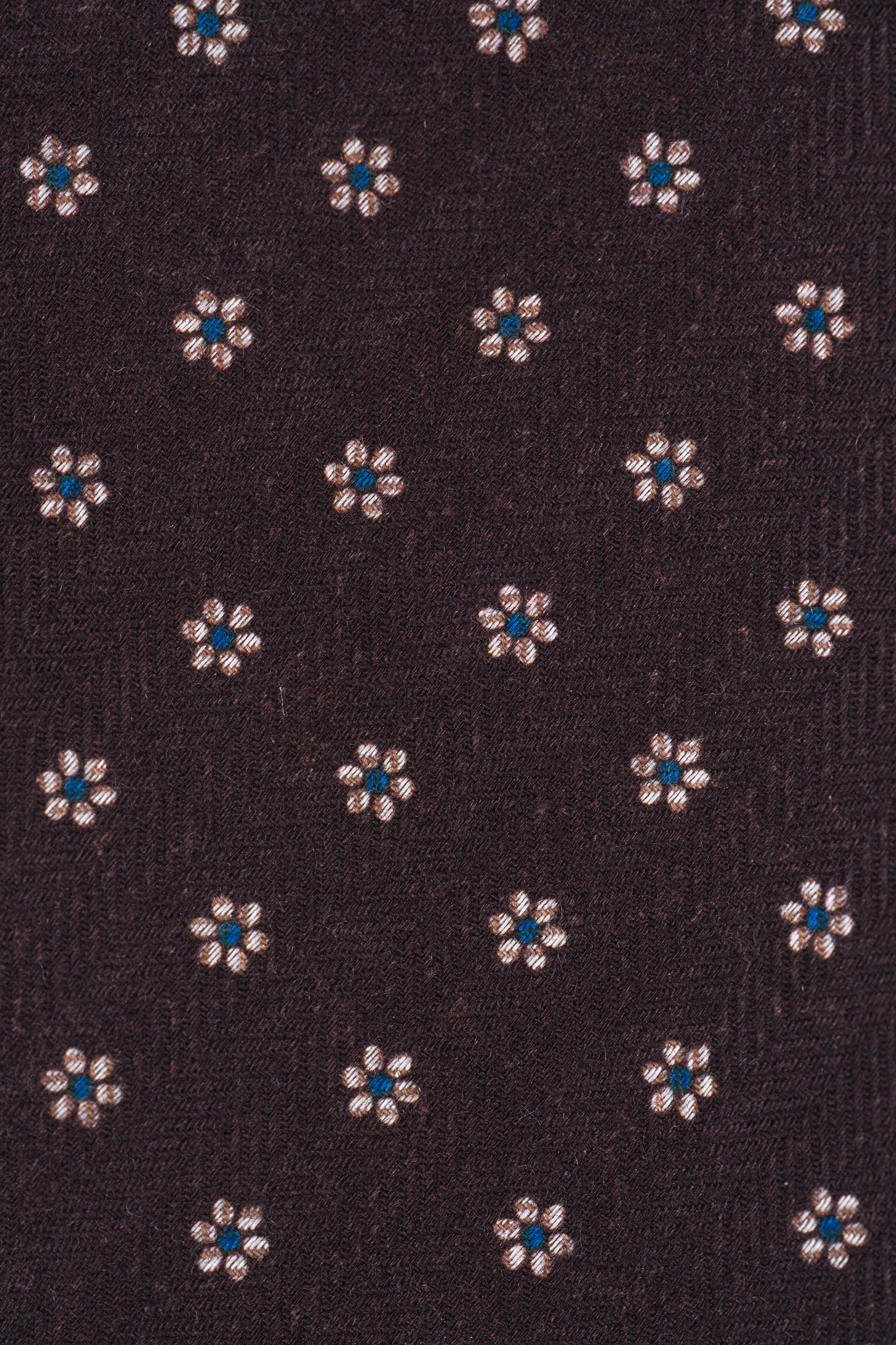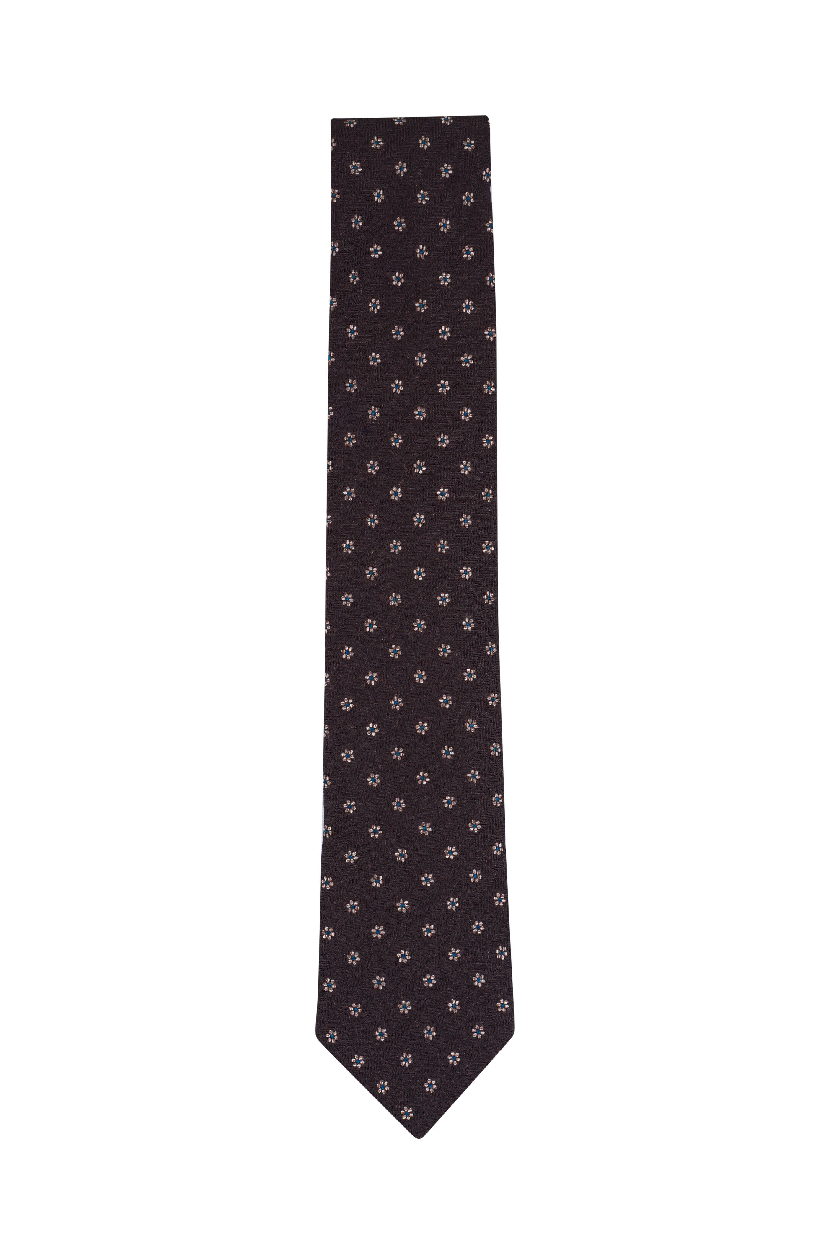 Brown Floral Print Wool & Silk Necktie