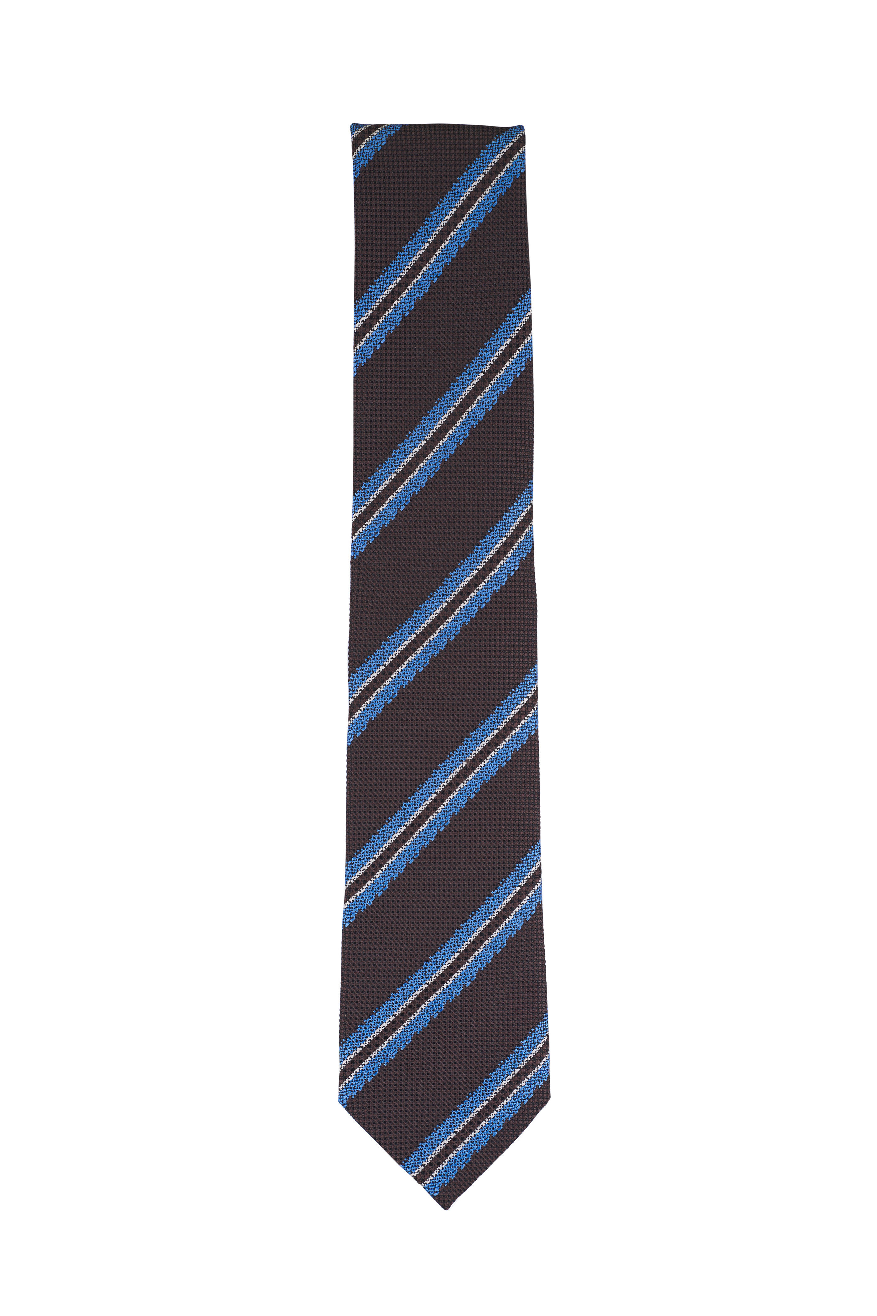 Brown & Blue Stripe Silk Jacquard Necktie