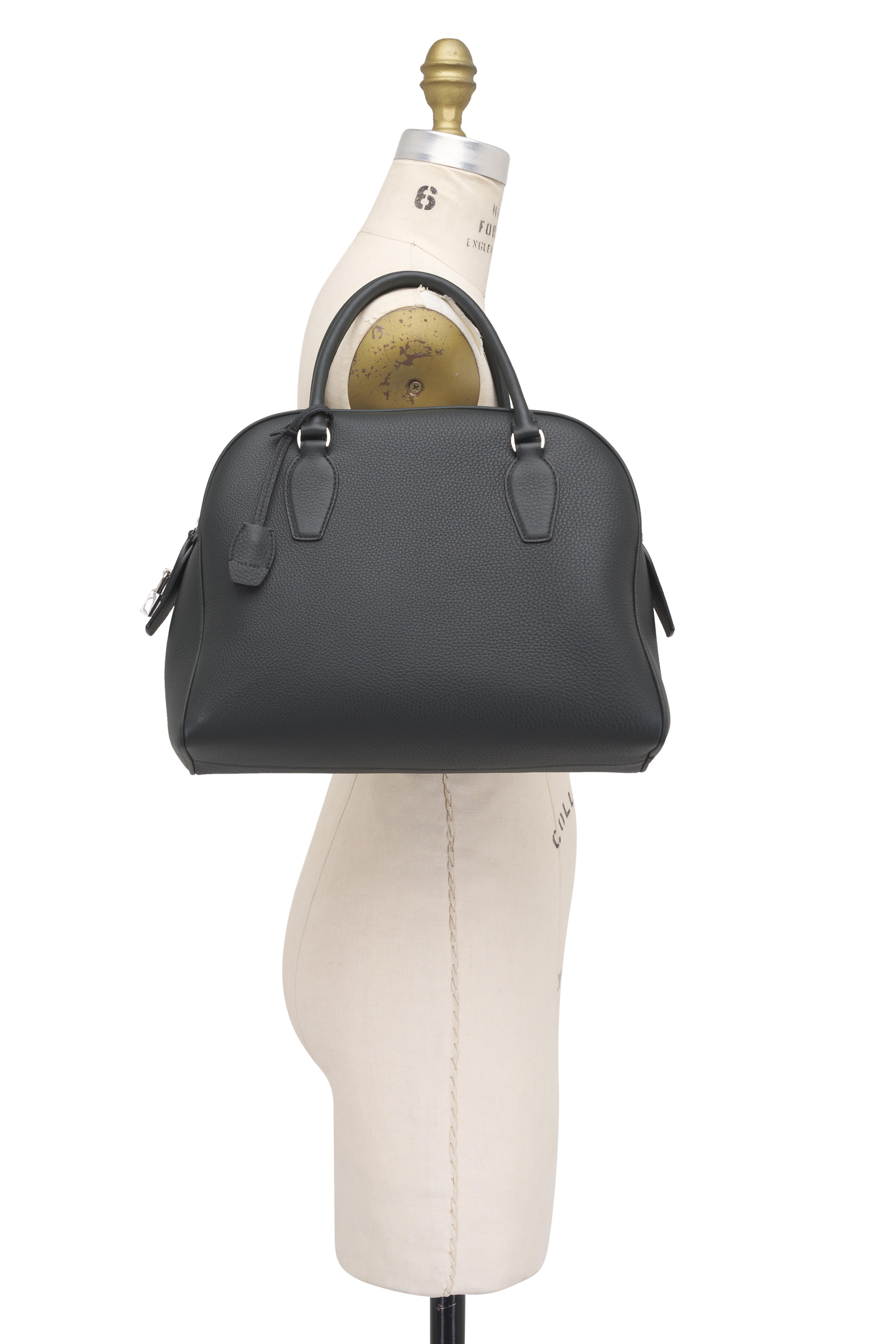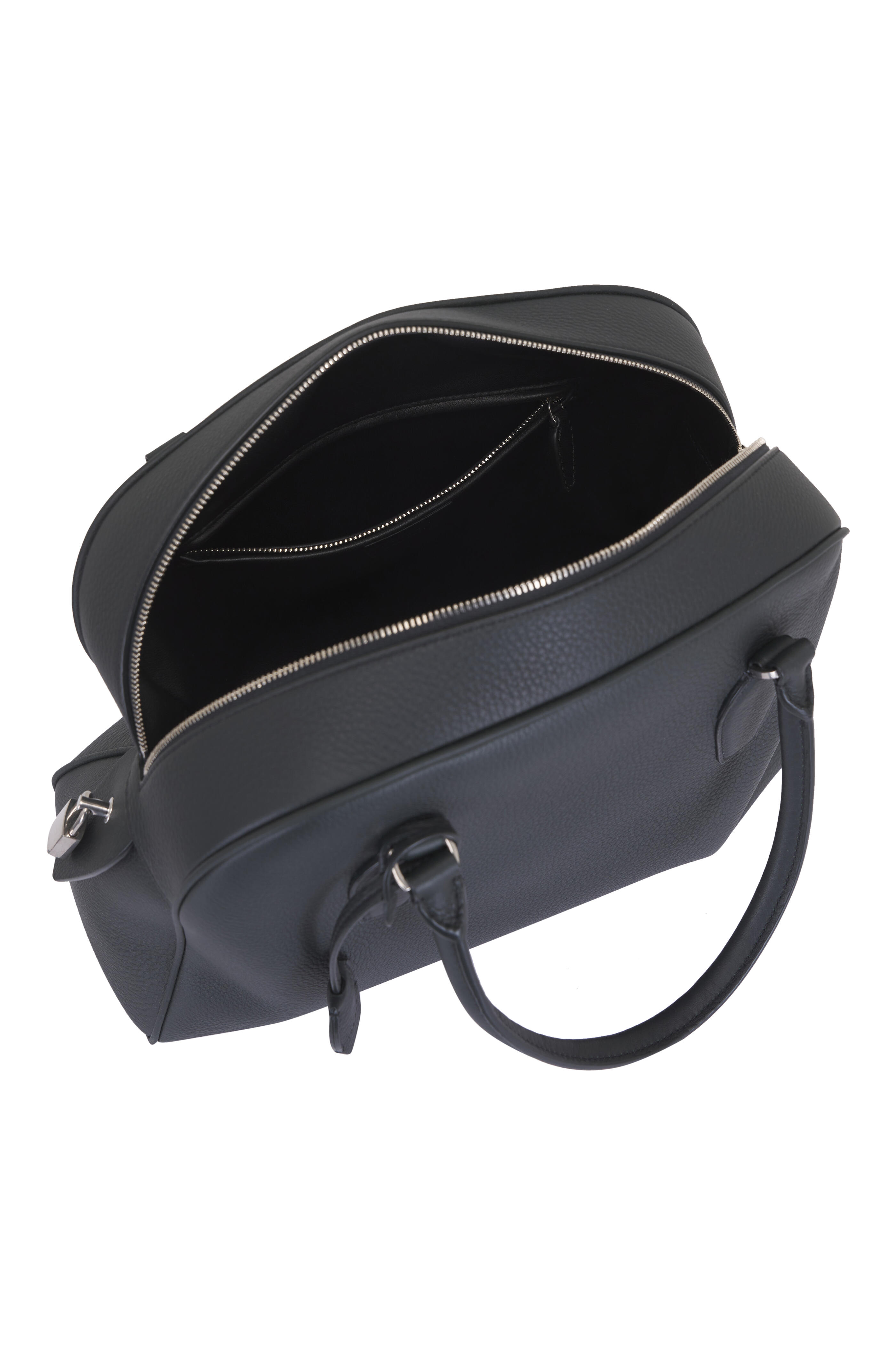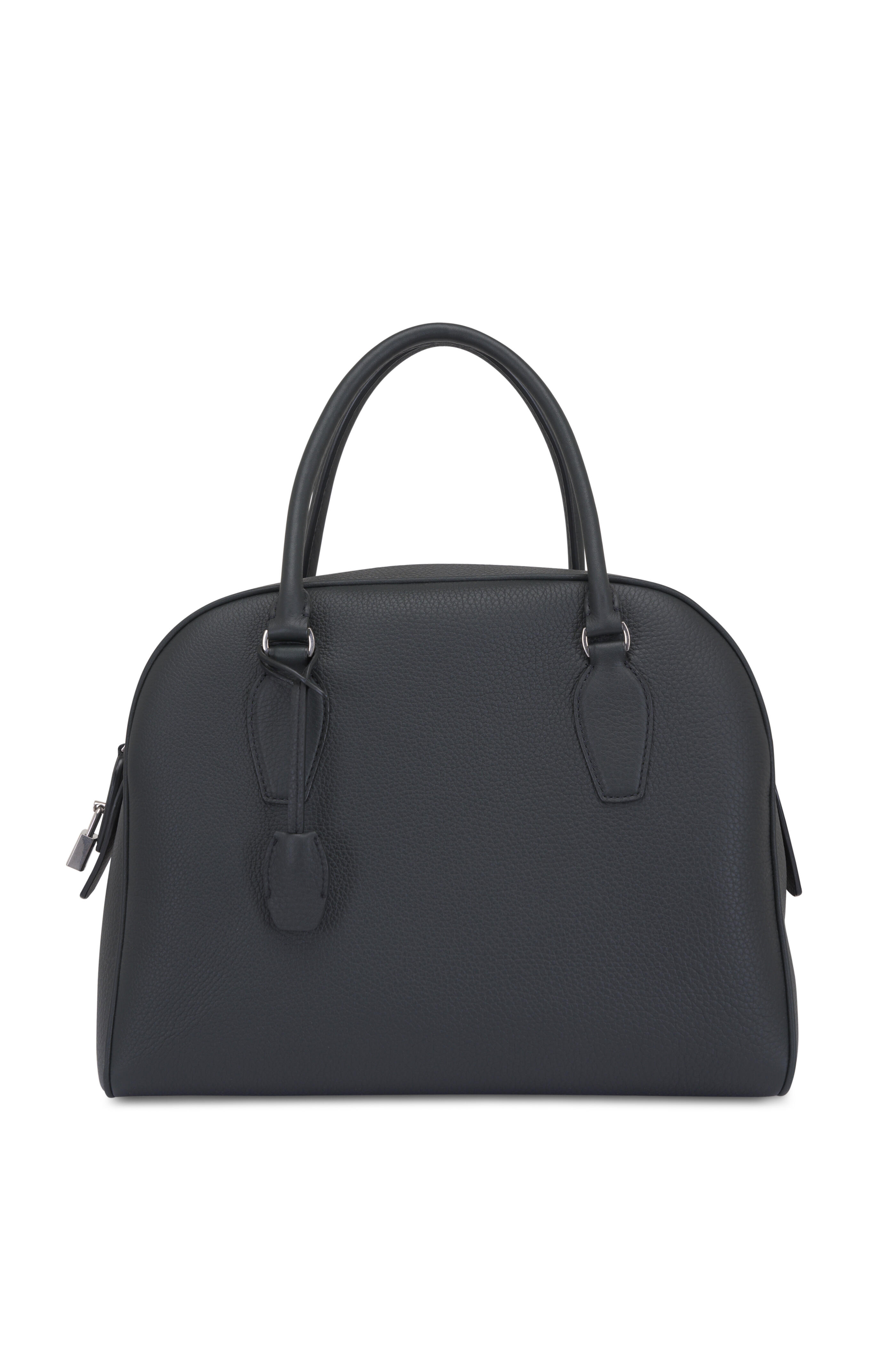 Leather. Dual tubular top handles. Top zip with branded metal padlock. One compartments. Interior wall pocket; interior zipped wall pocket. Detachable key with key chain. Calfskin leather lining. Made in Italy. 11.81 x 4.72 x 9.45 in.