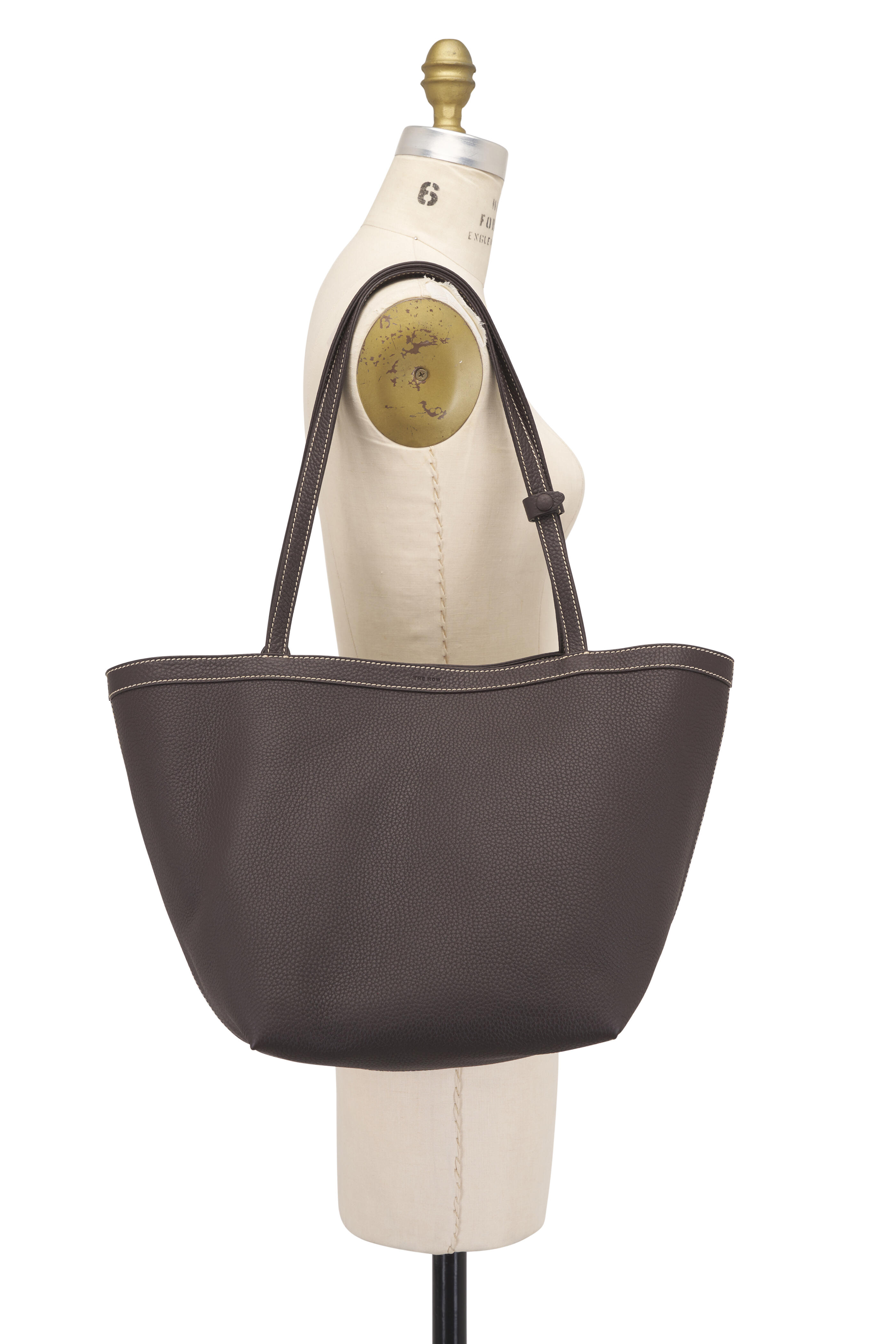 Park Three Stitch Dark Brown & Ecru Leather Tote