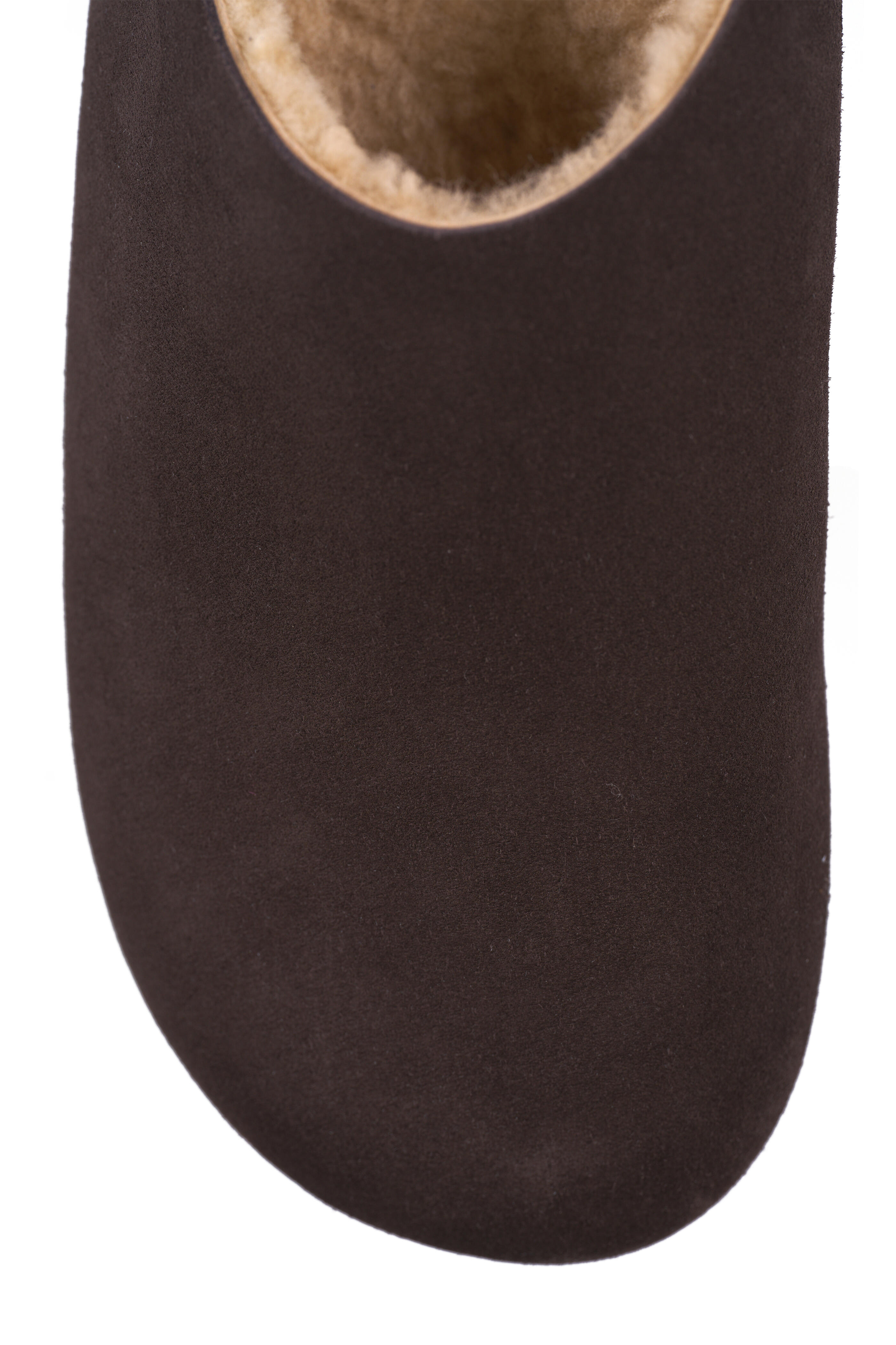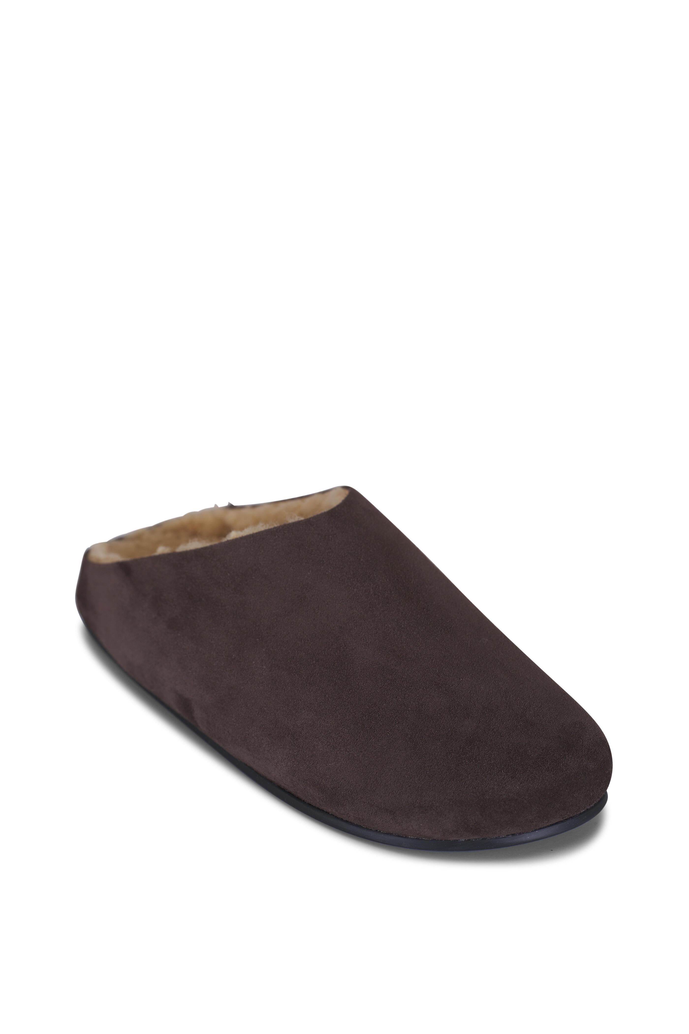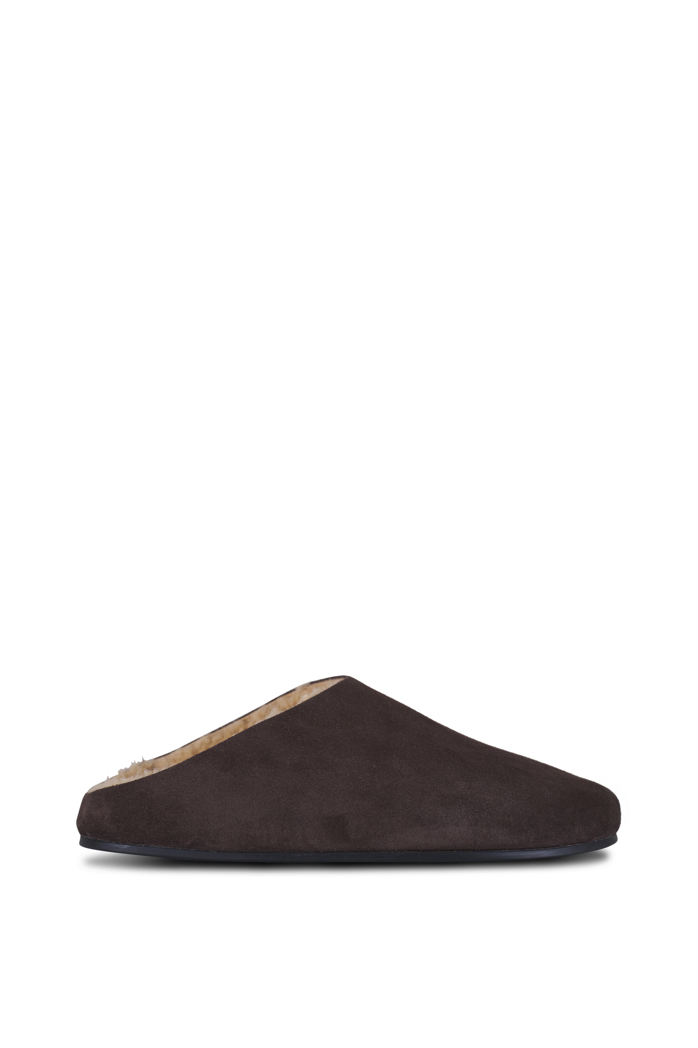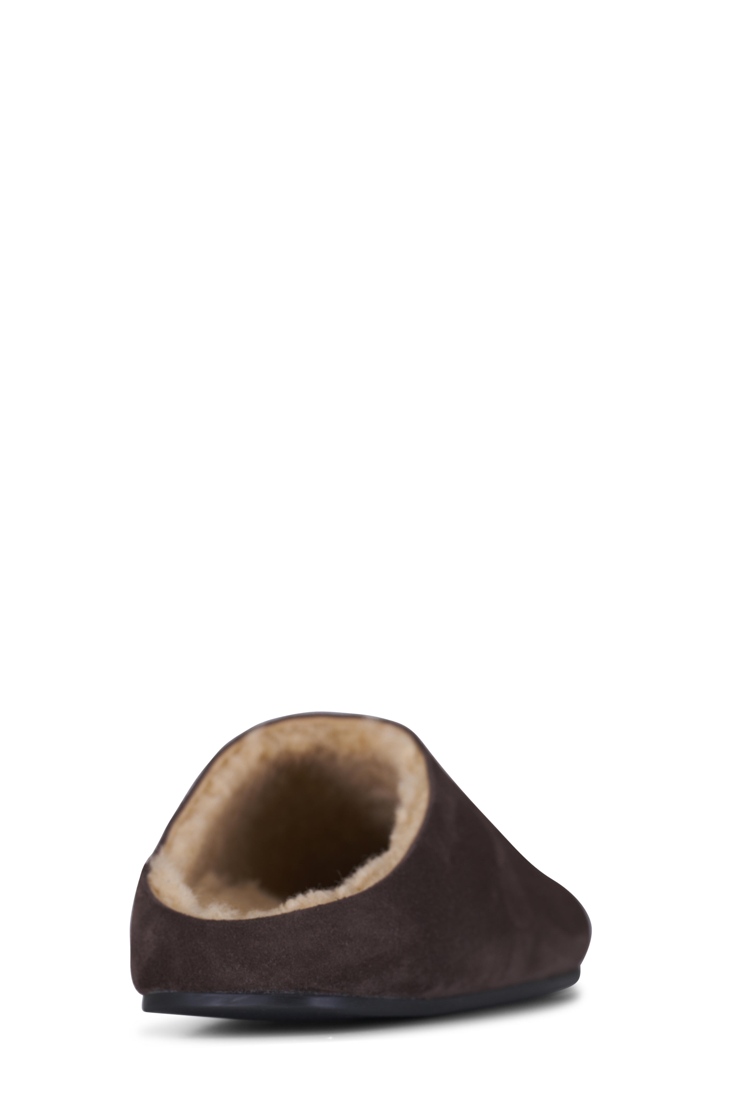 Suede upper. Round toe. Slip-on style. Shearling lining. Rubber sole. Made in Italy.