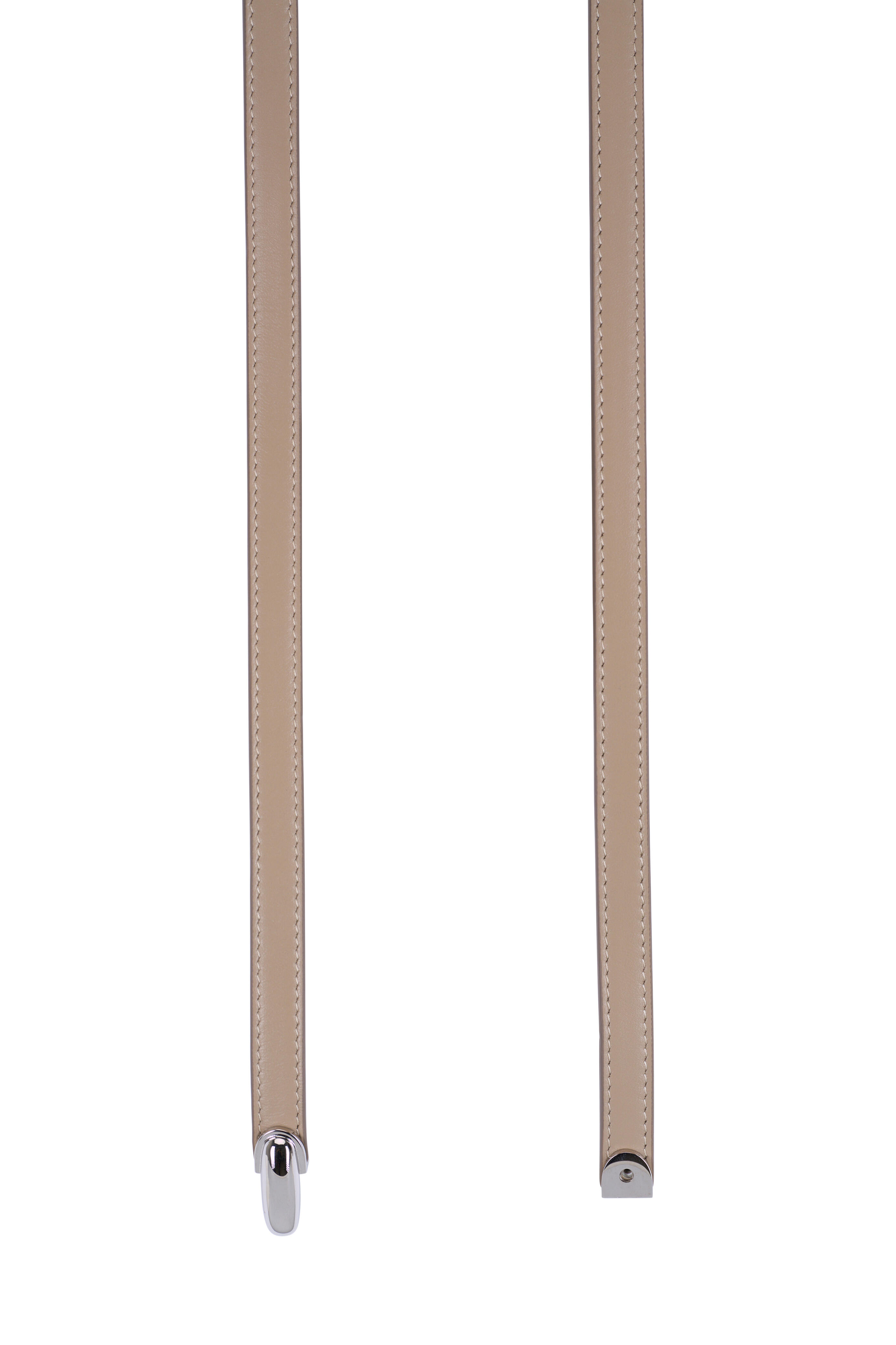 Calfskin leather. Loop keeper. Adjustable snap closure. Imported. 100cm long x 1cm wide.