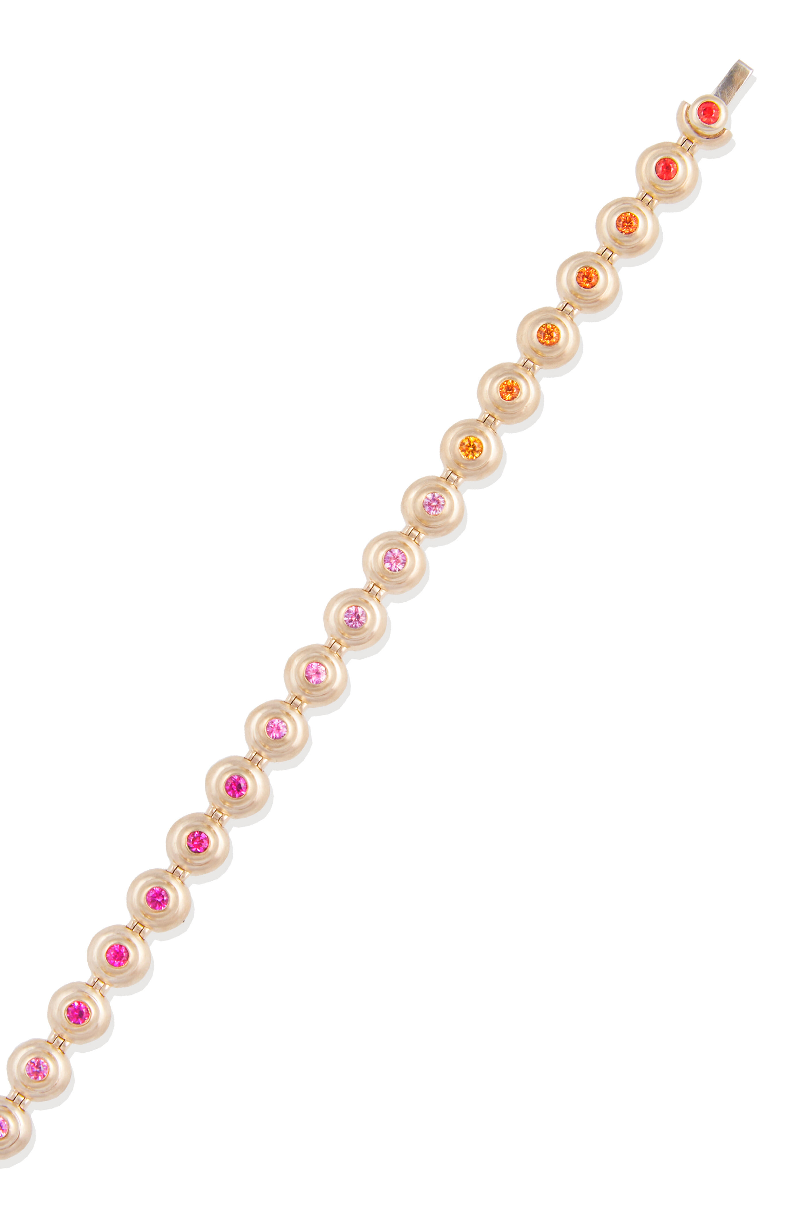 14k Yellow Gold. Pink & Orange Sapphires. Bracelet length is 7 inches.