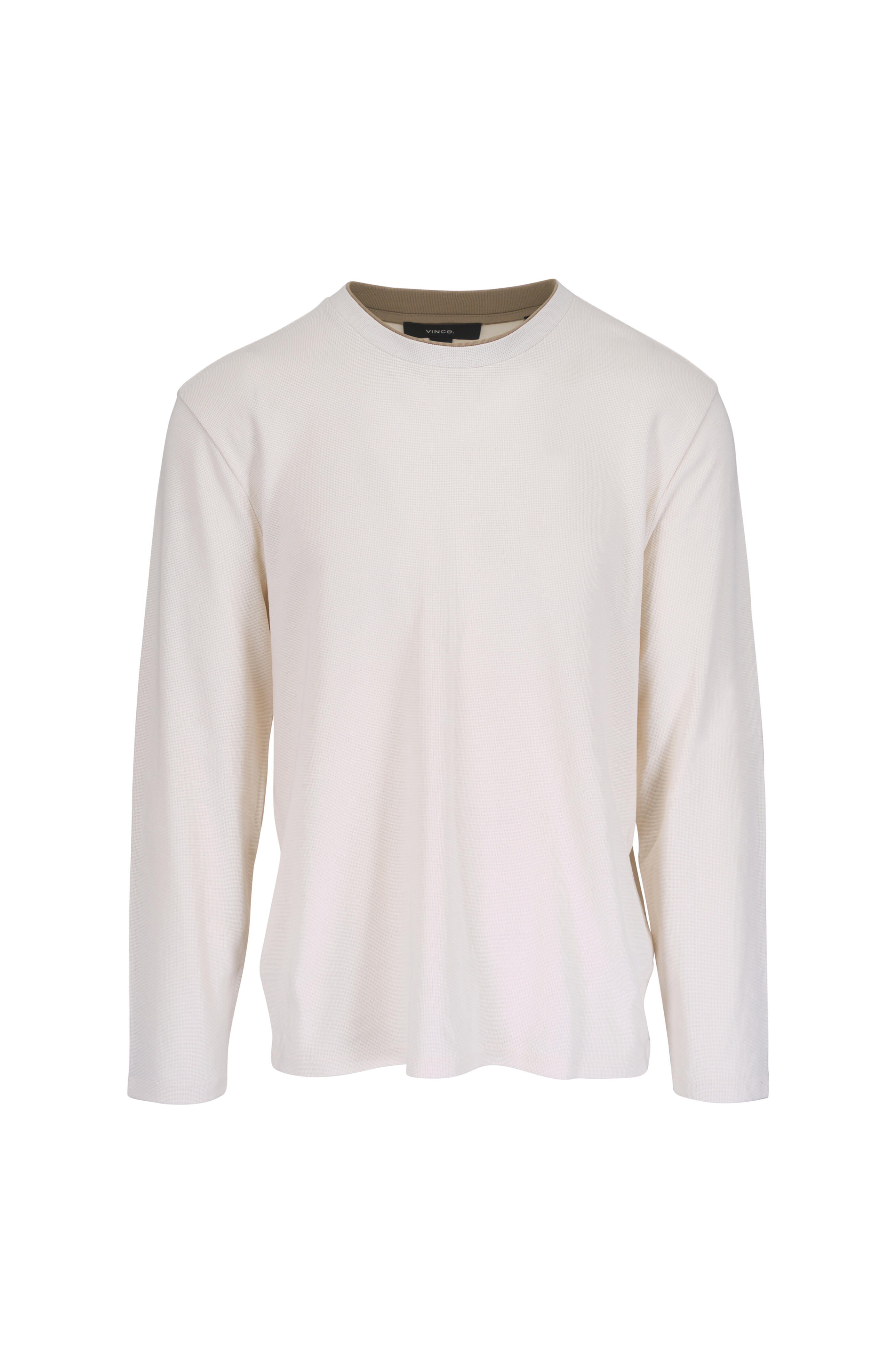Microwaffle Double Collar White Cotton Crew