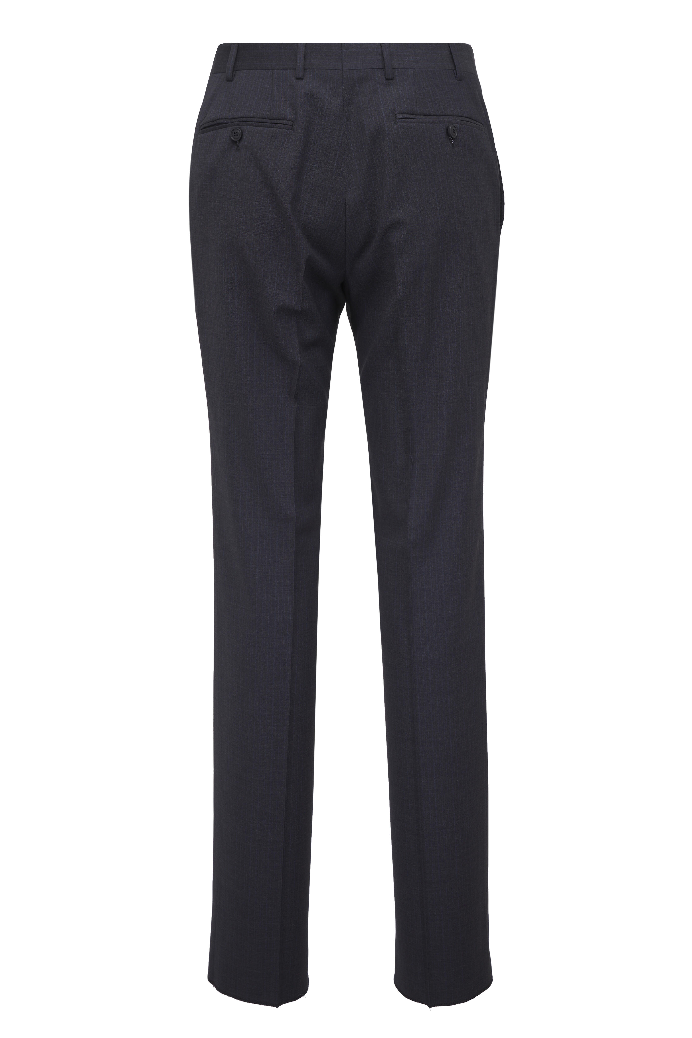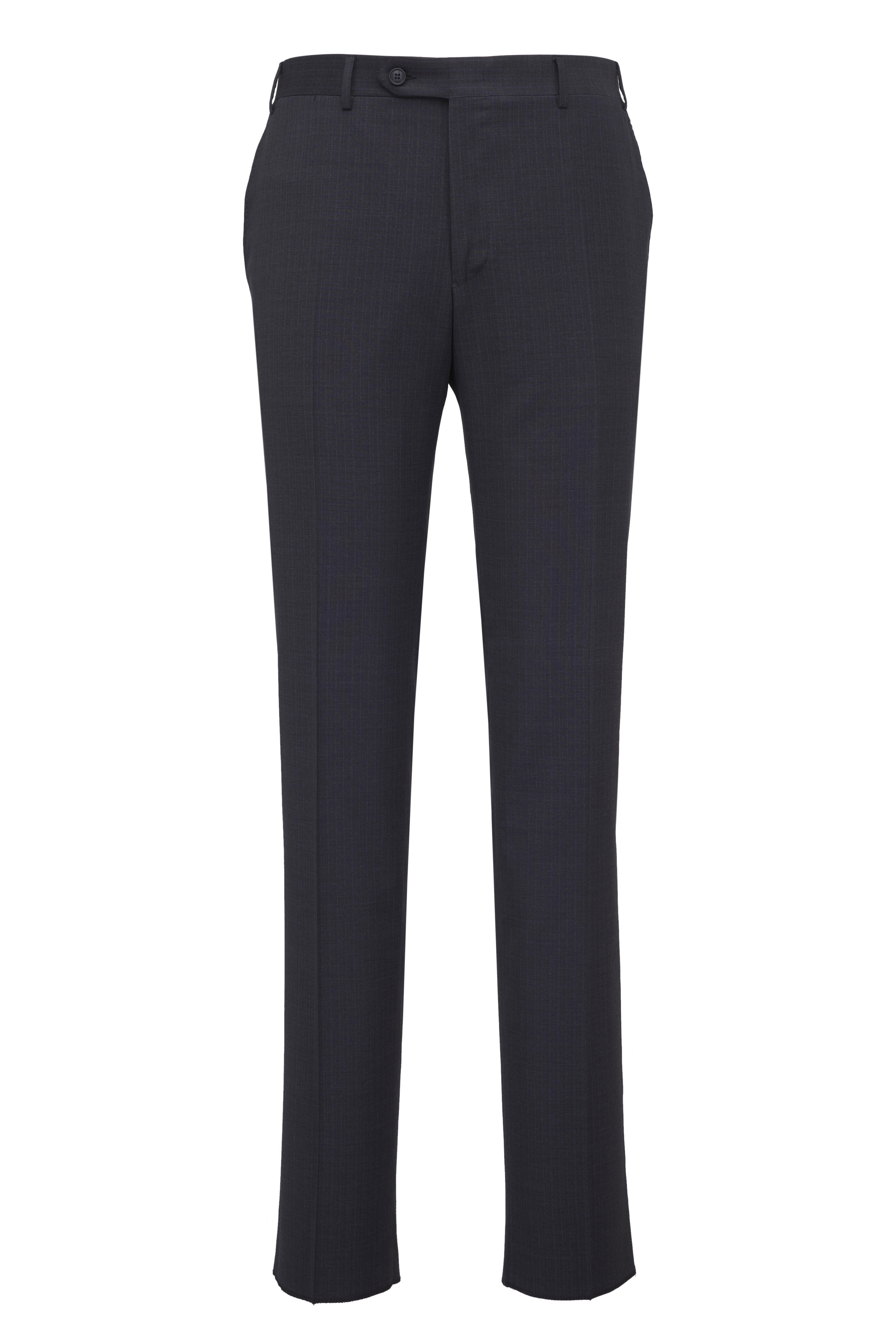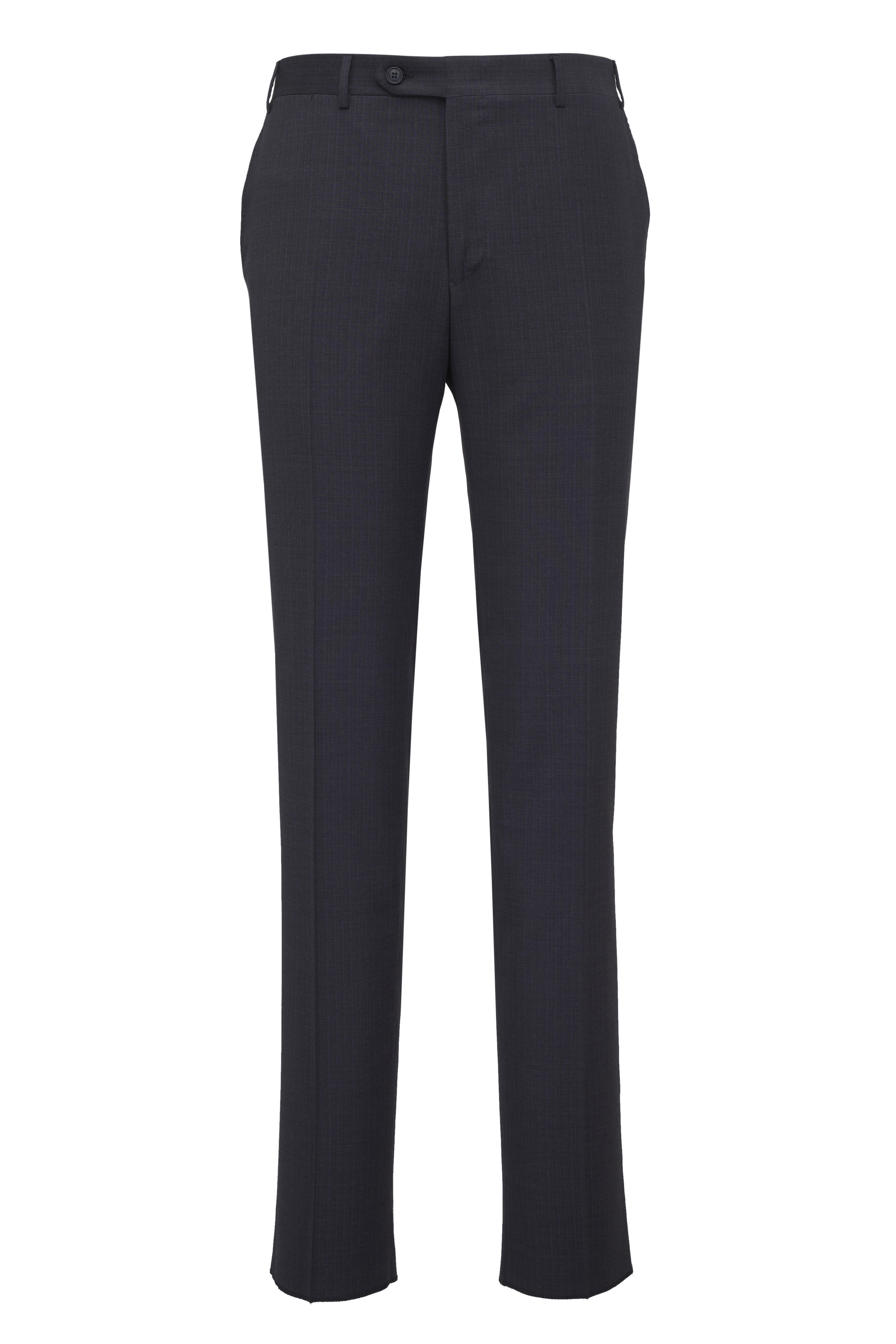 Made in Italy. Jacket: Fully lined. Notched lapels. Front two button closure. Chest welt pocket; lower flap pockets; interior slip pockets. No buttons attached. Double vent. Pant: Banded waist; belt loops. Front slip pockets; back besom pockets. Unfinished hem. 100% wool. Dry clean.