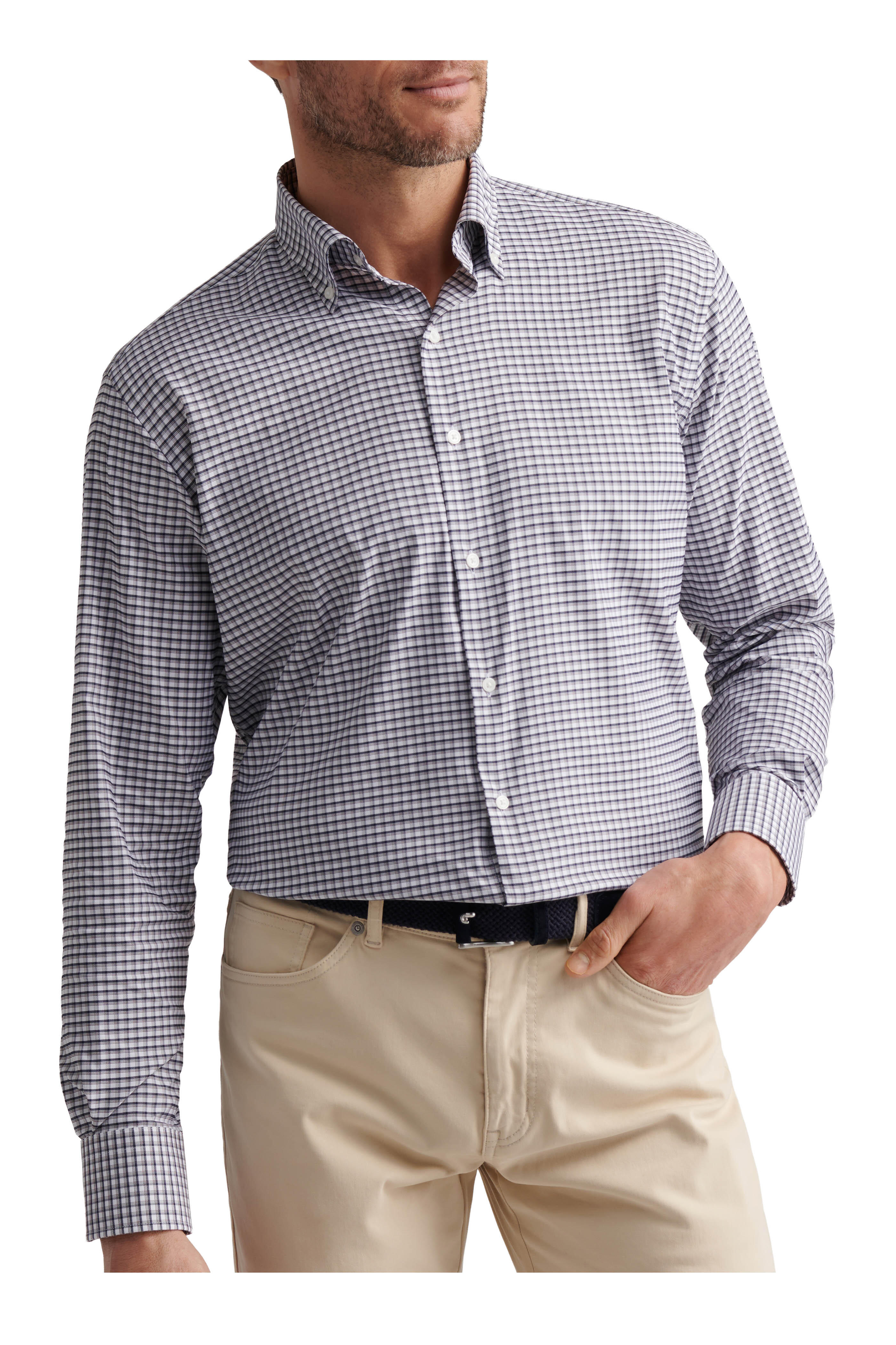 Cashiers Navy & Brown Plaid Twill Sport Shirt