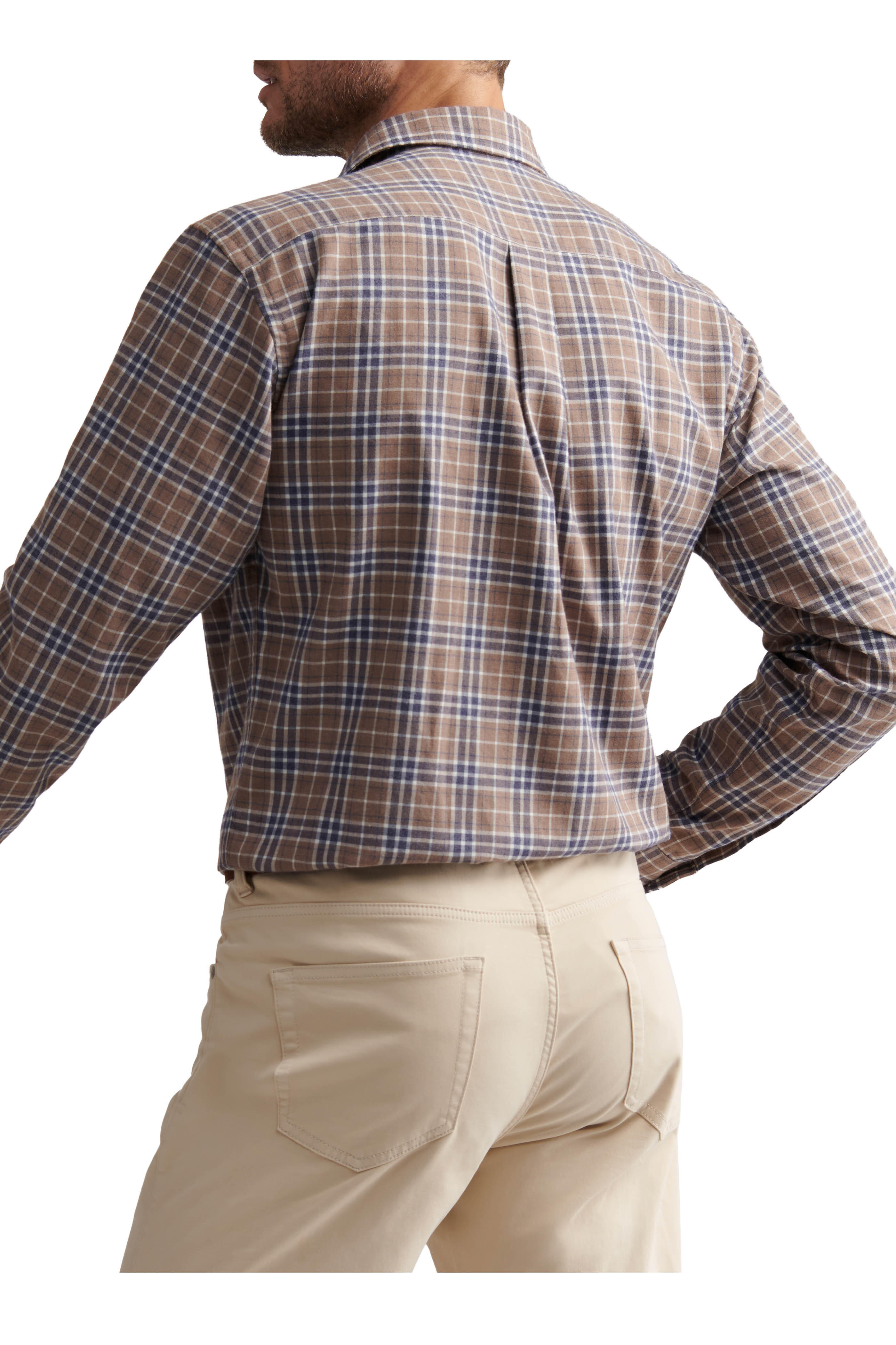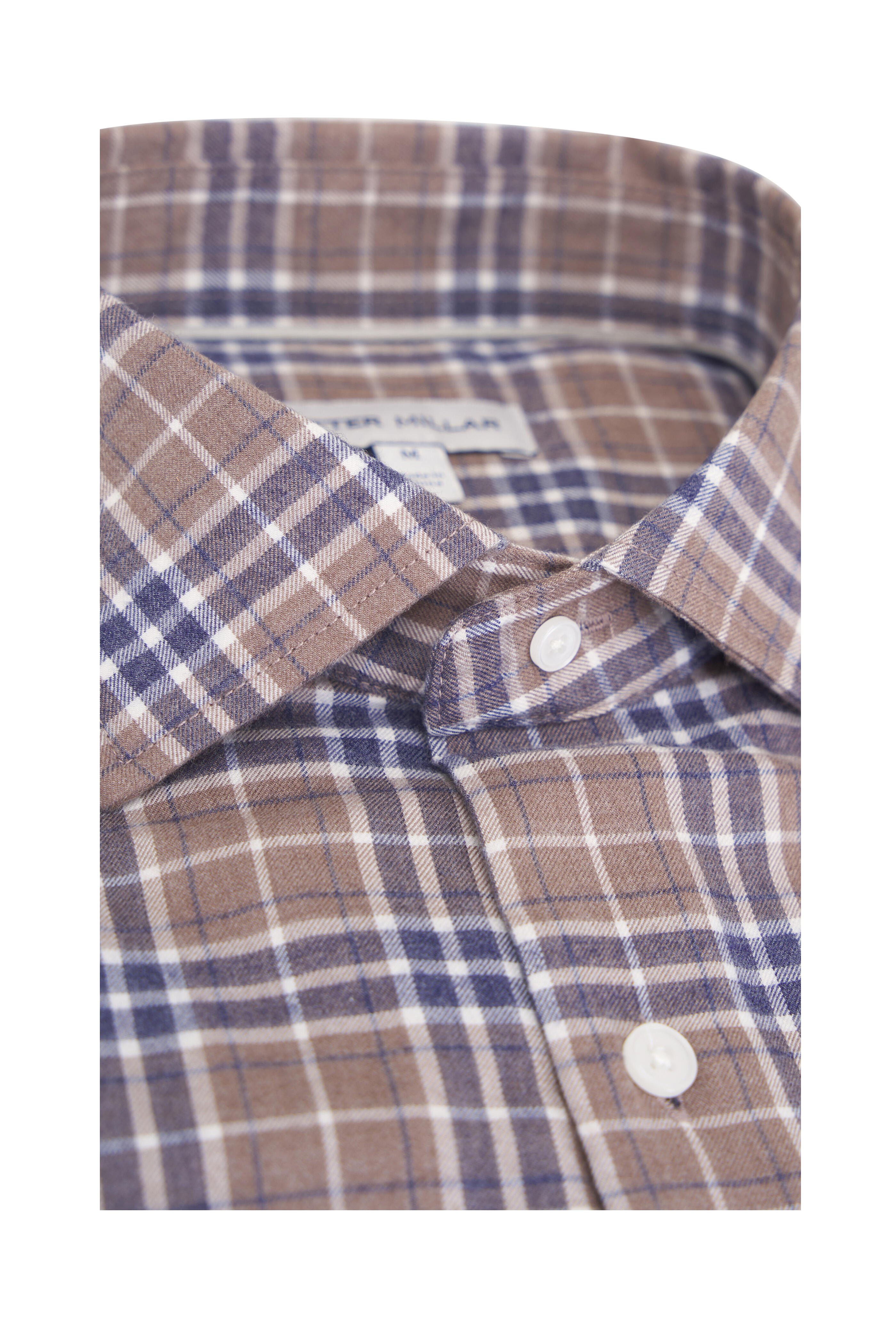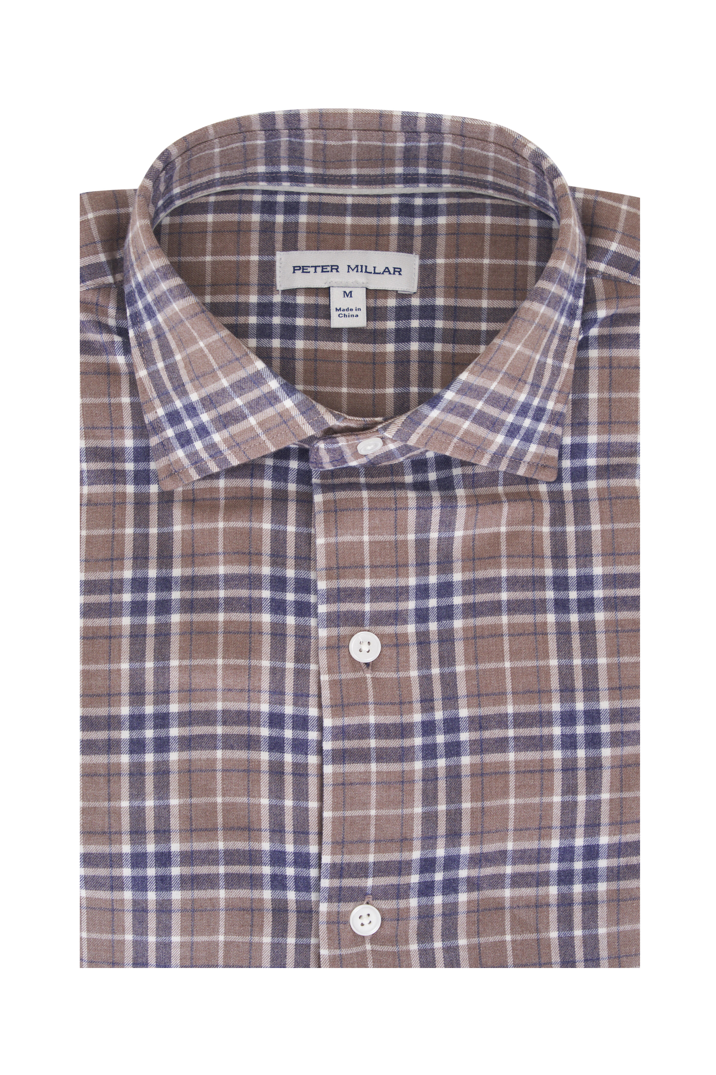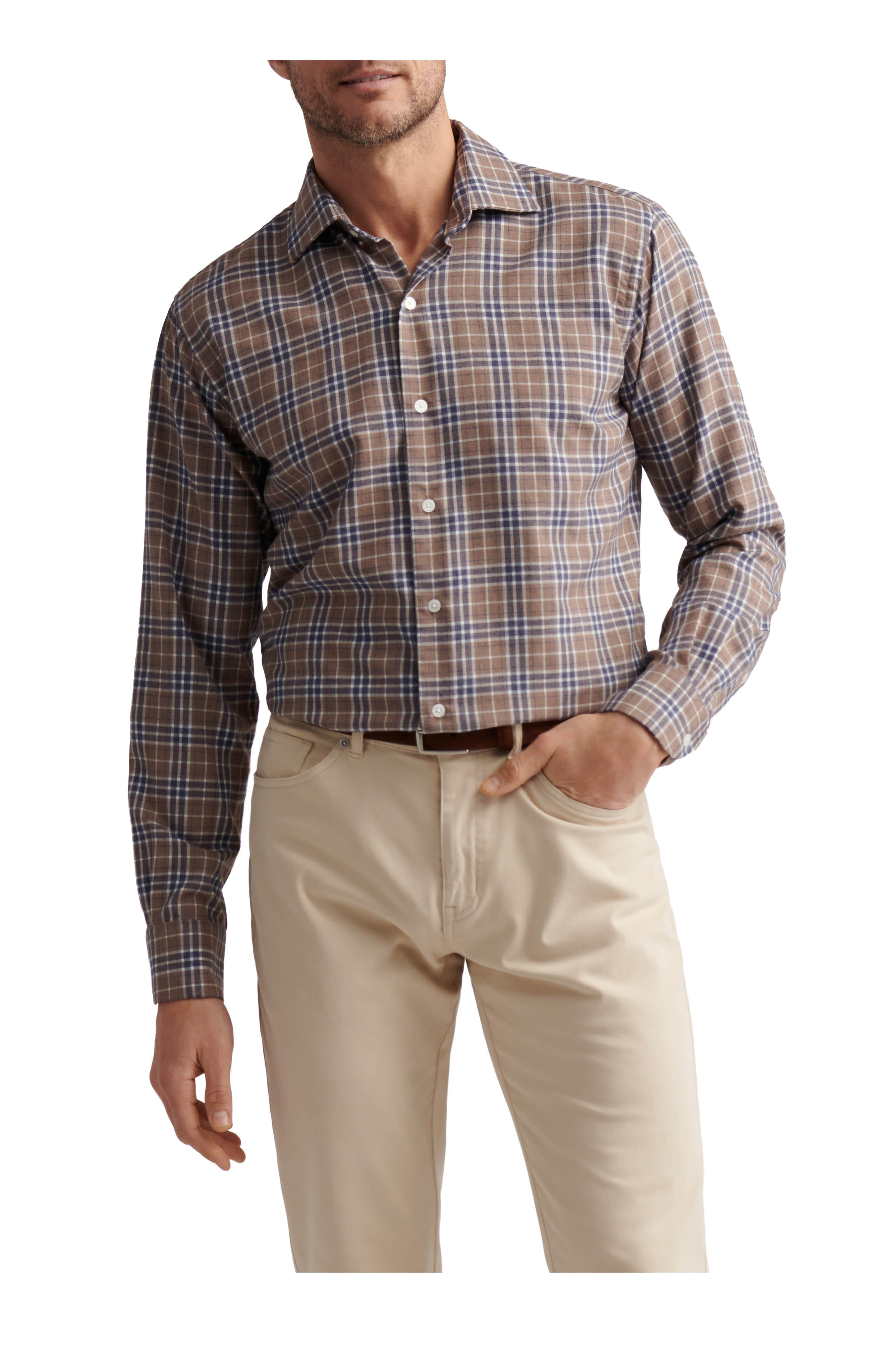 Spread collar. French front button placket. Adjustable single button barrel cuffs. Imported. Color: Poplar Brown. Classic fit. 65% polyester, 35% viscose. Machine wash.