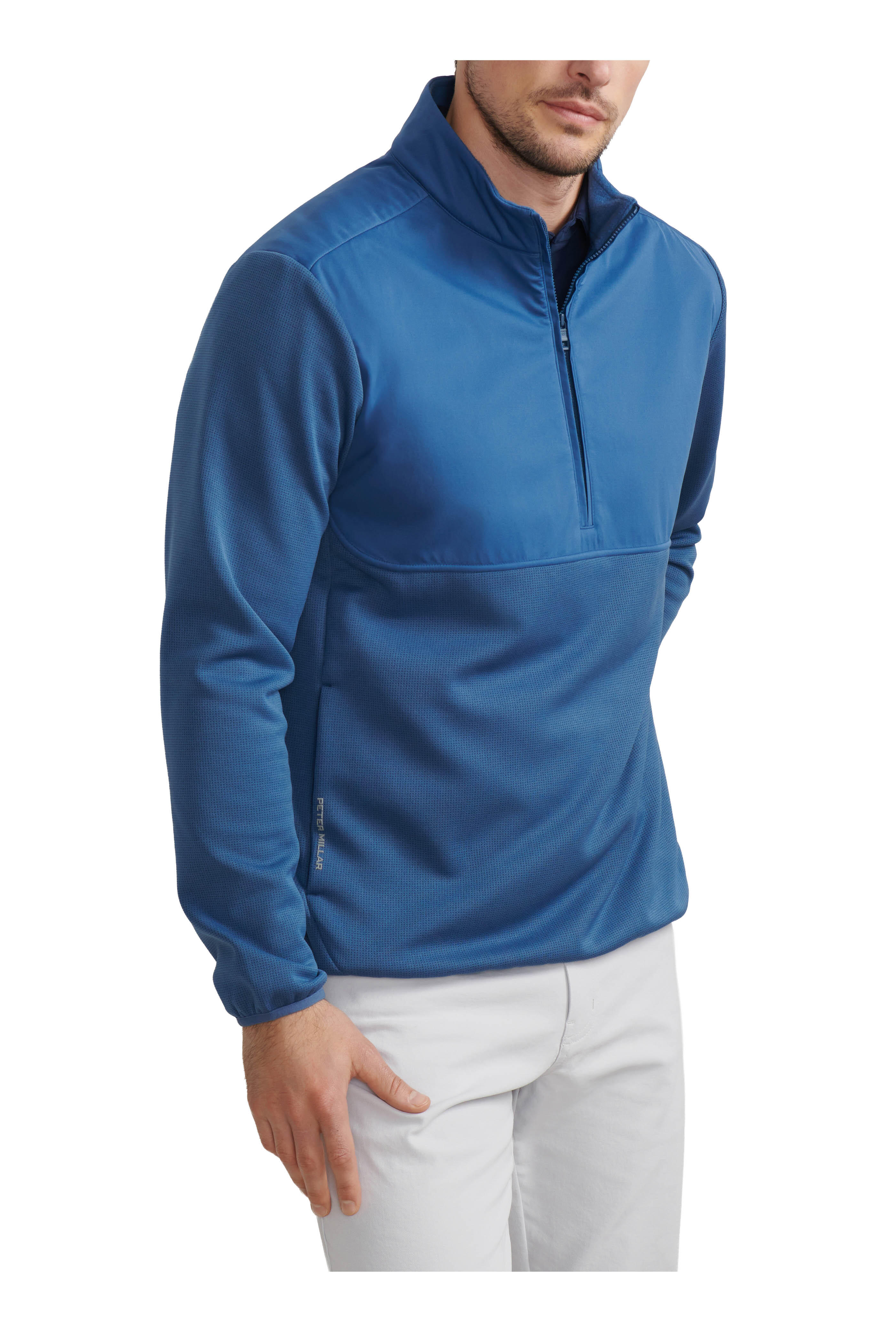 Stand collar. Half zip placket. Side zippered pockets. Water-resistant shell panels. Imported. Approximately 28" shoulder to hem (measurements taken from size M). Classic fit. 94% polyester, 6% elastane; contrasting fabric: 100% recycled polyester. Machine wash.