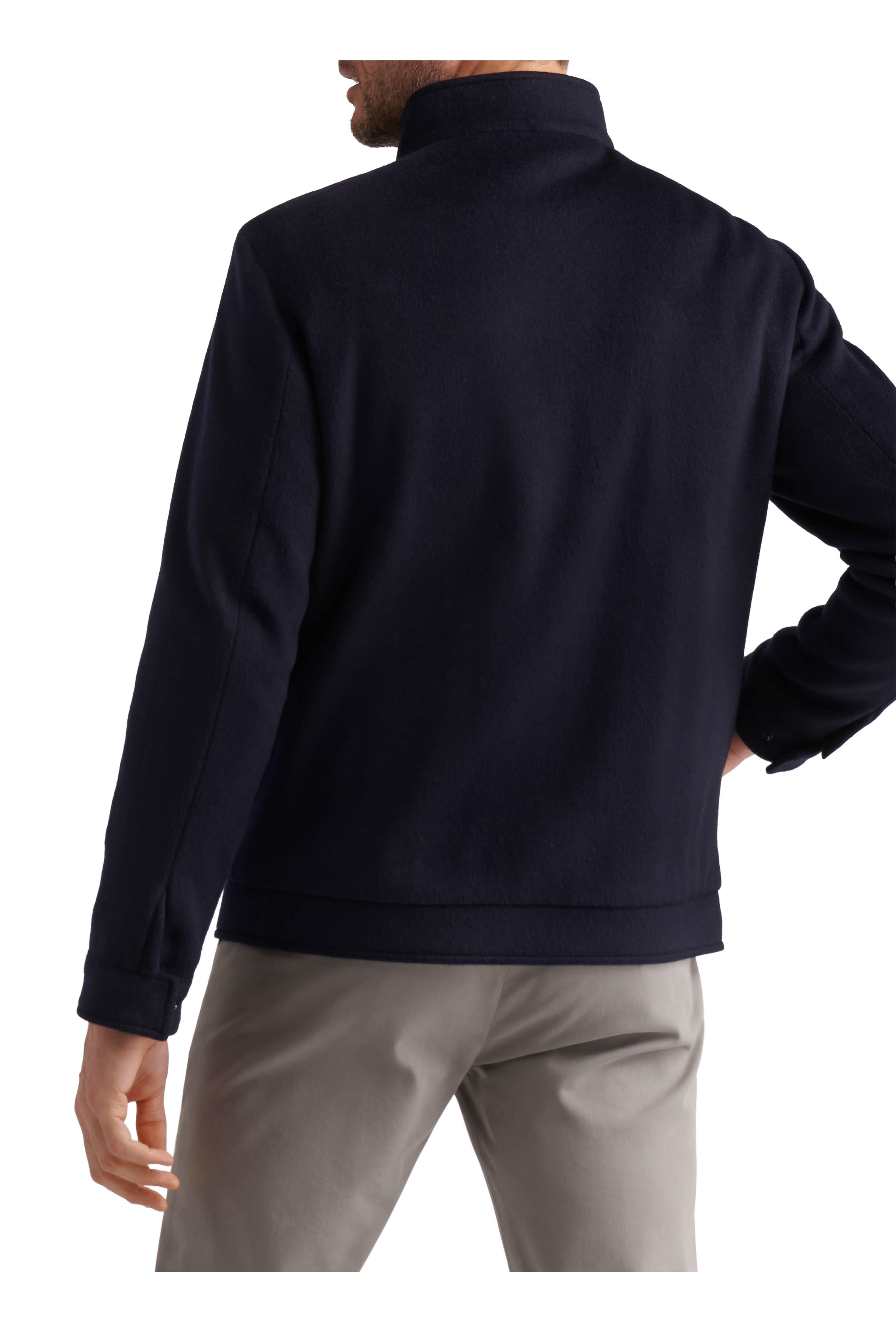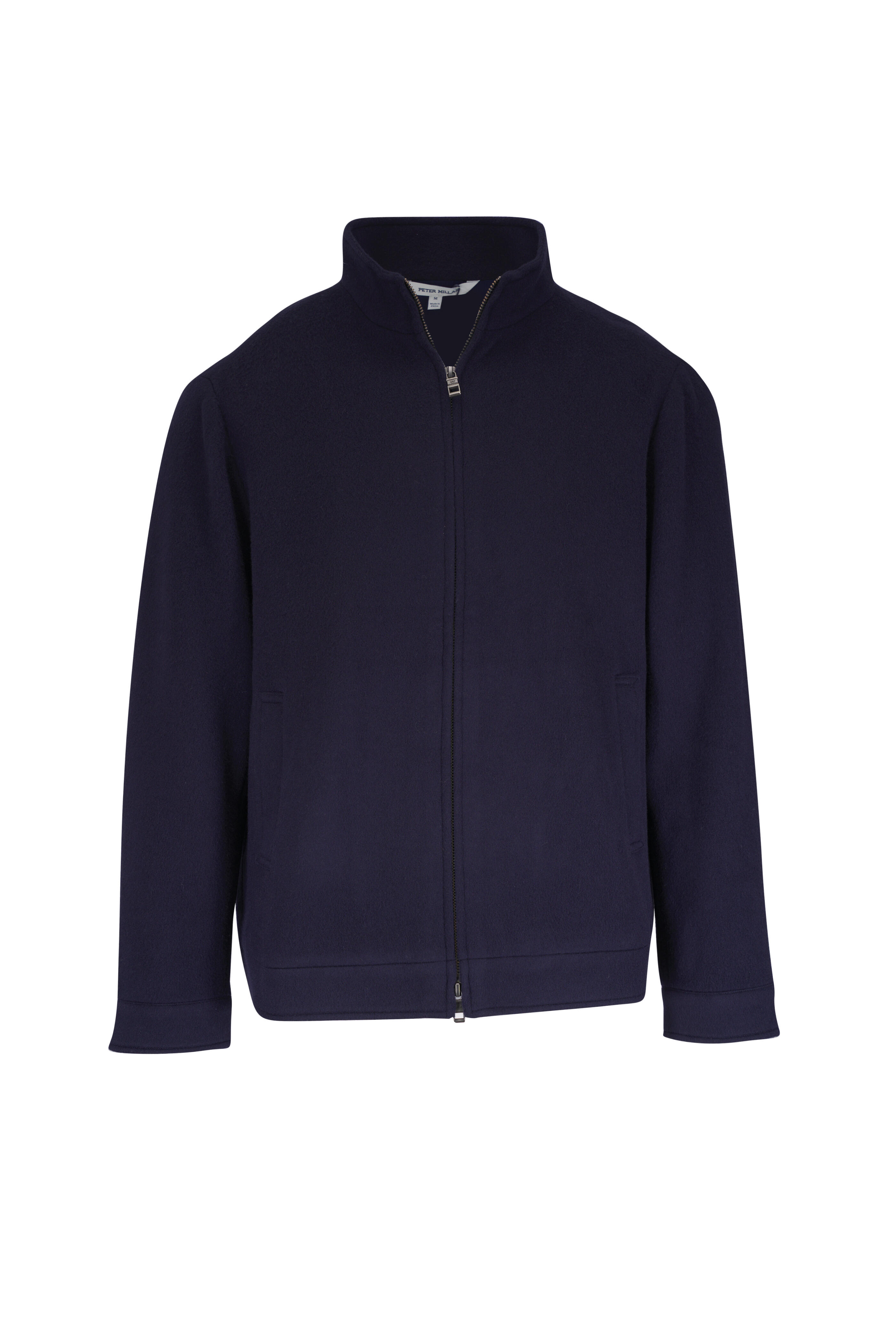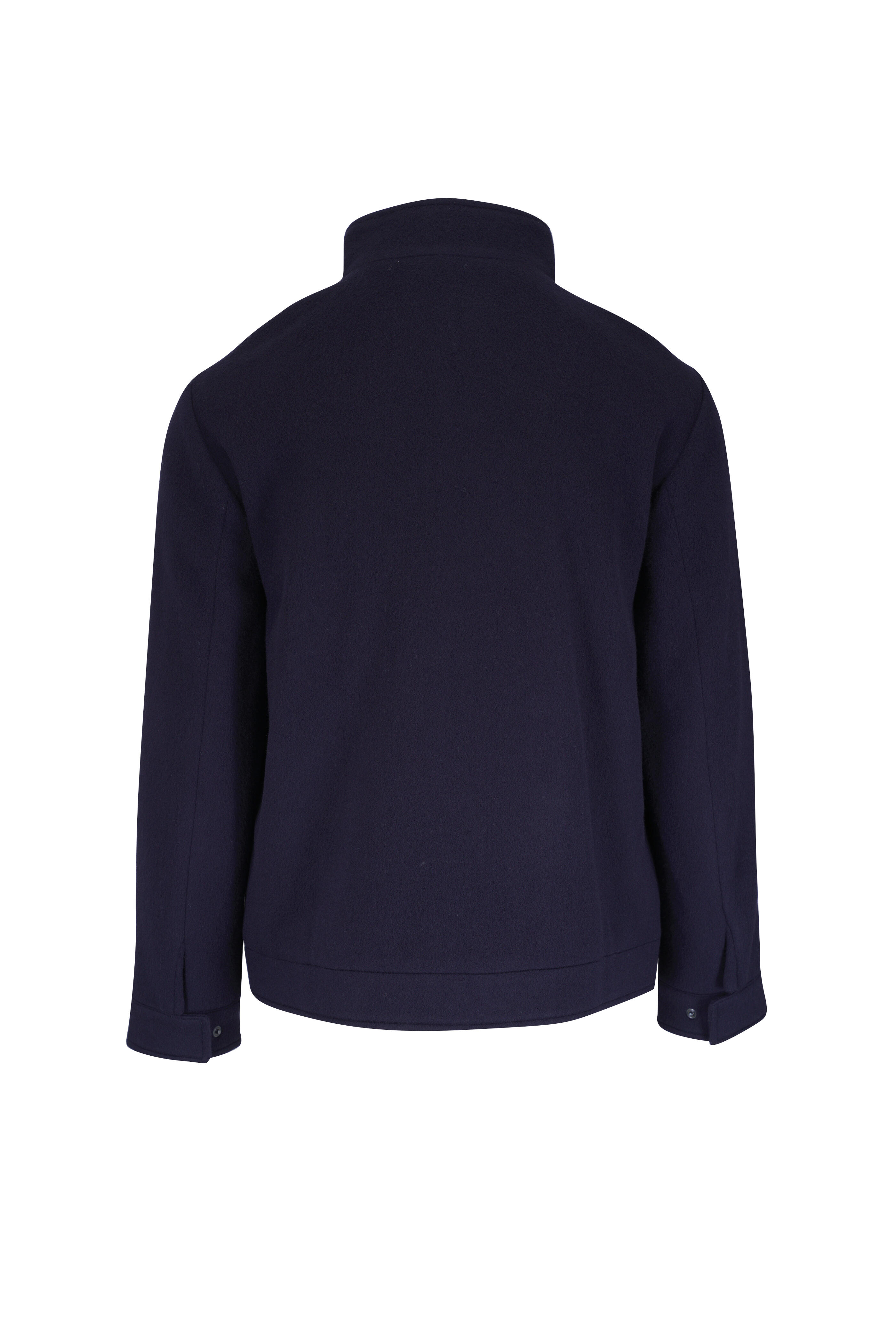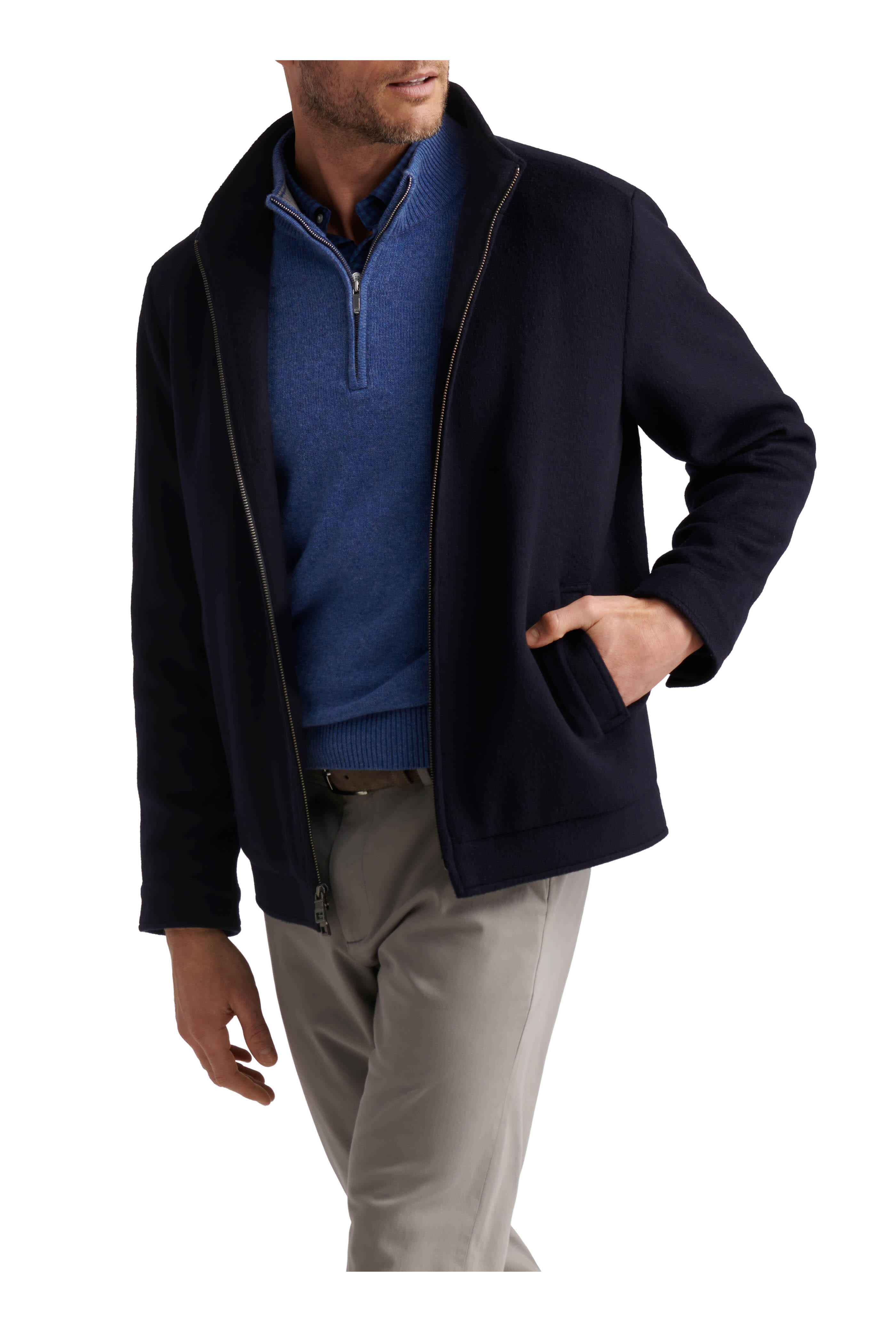 Stand collar. Two way front zip. Side slip pockets; internal pockets. Single snap button cuffs. Imported. 100% wool, lined: 100% polyester. Dry clean.