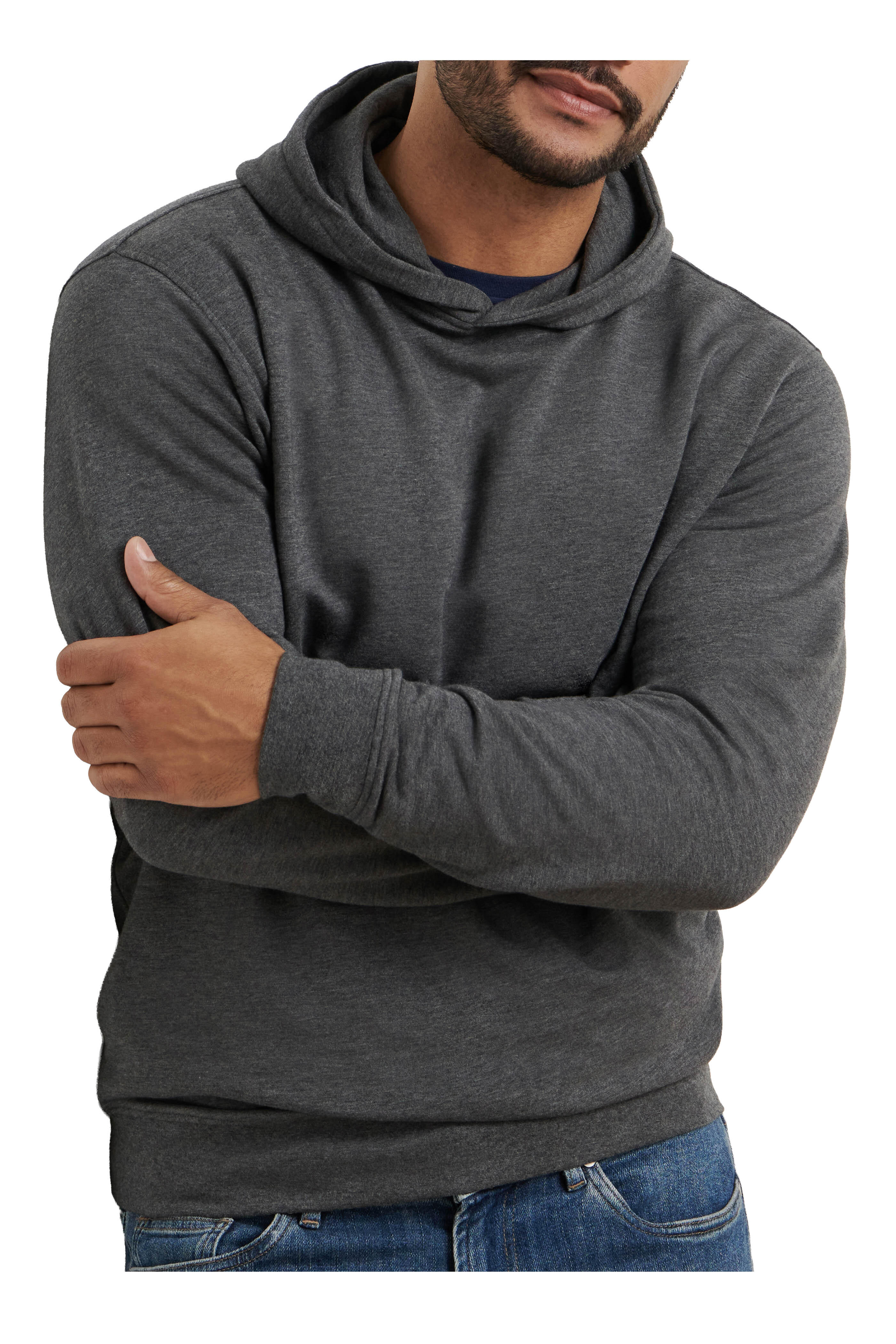 Attached hood. Pullover style. Ribbed trims. Straight hem. Imported. Shoulder to hem 27" (size s). 55% Organic cotton, 40% modal, 5% spandex. Machine wash.