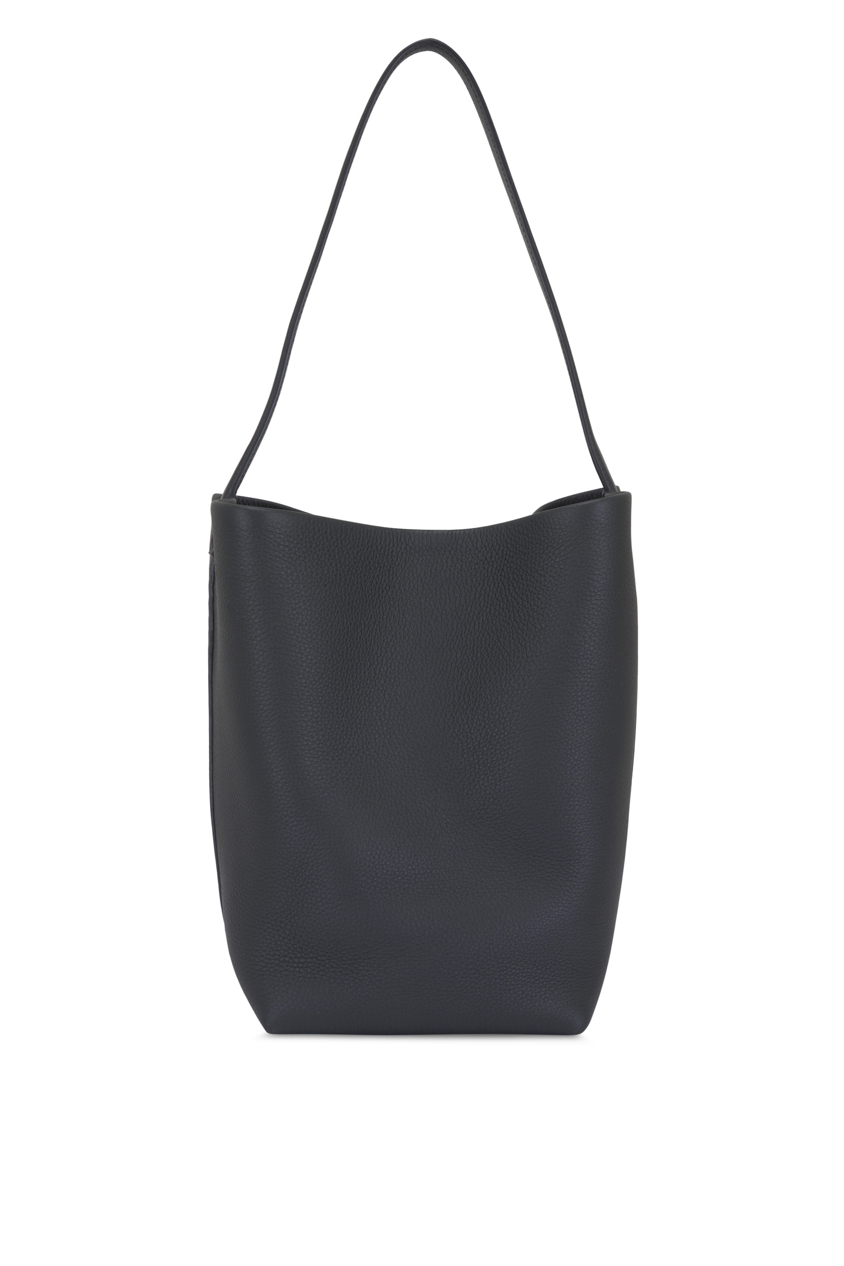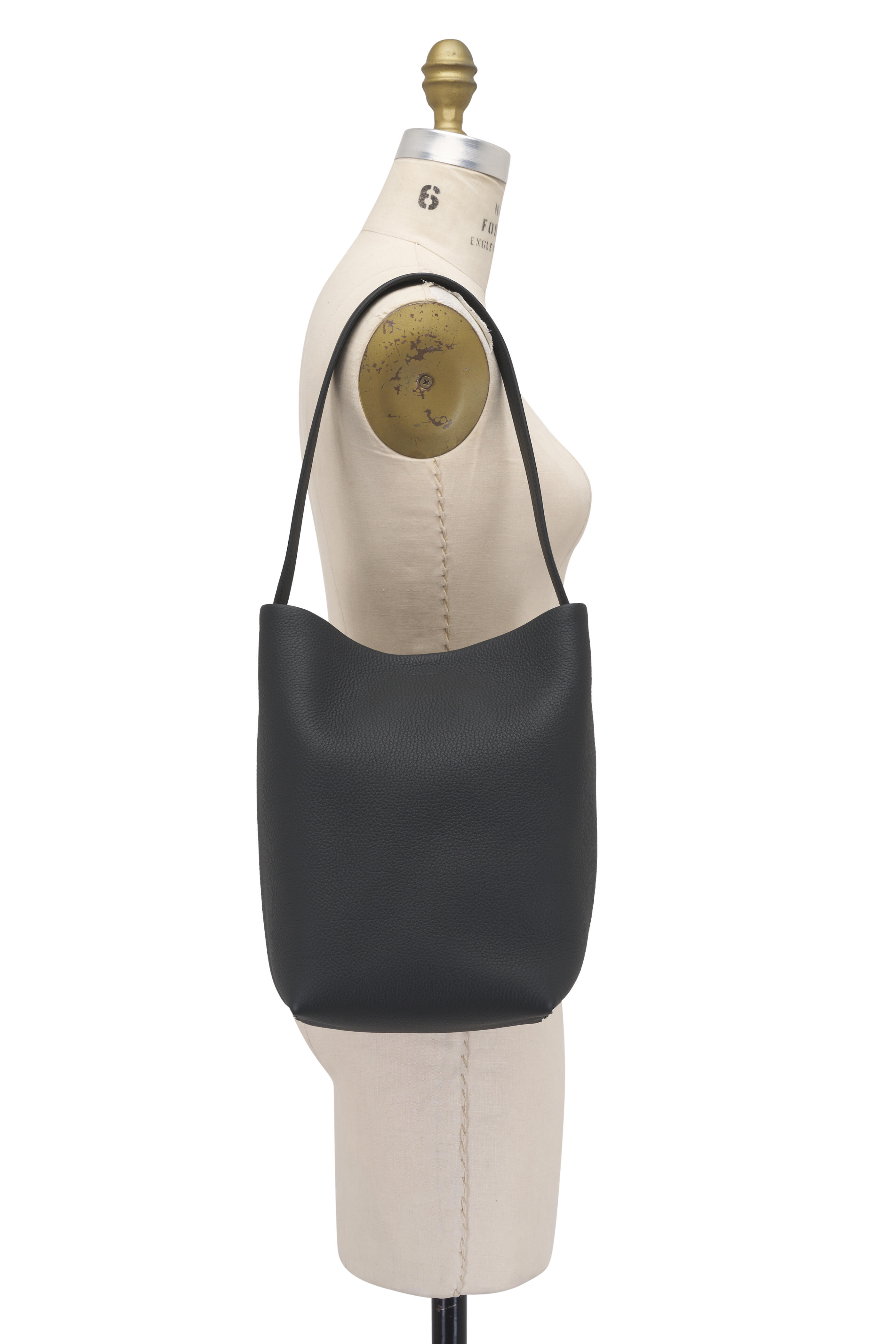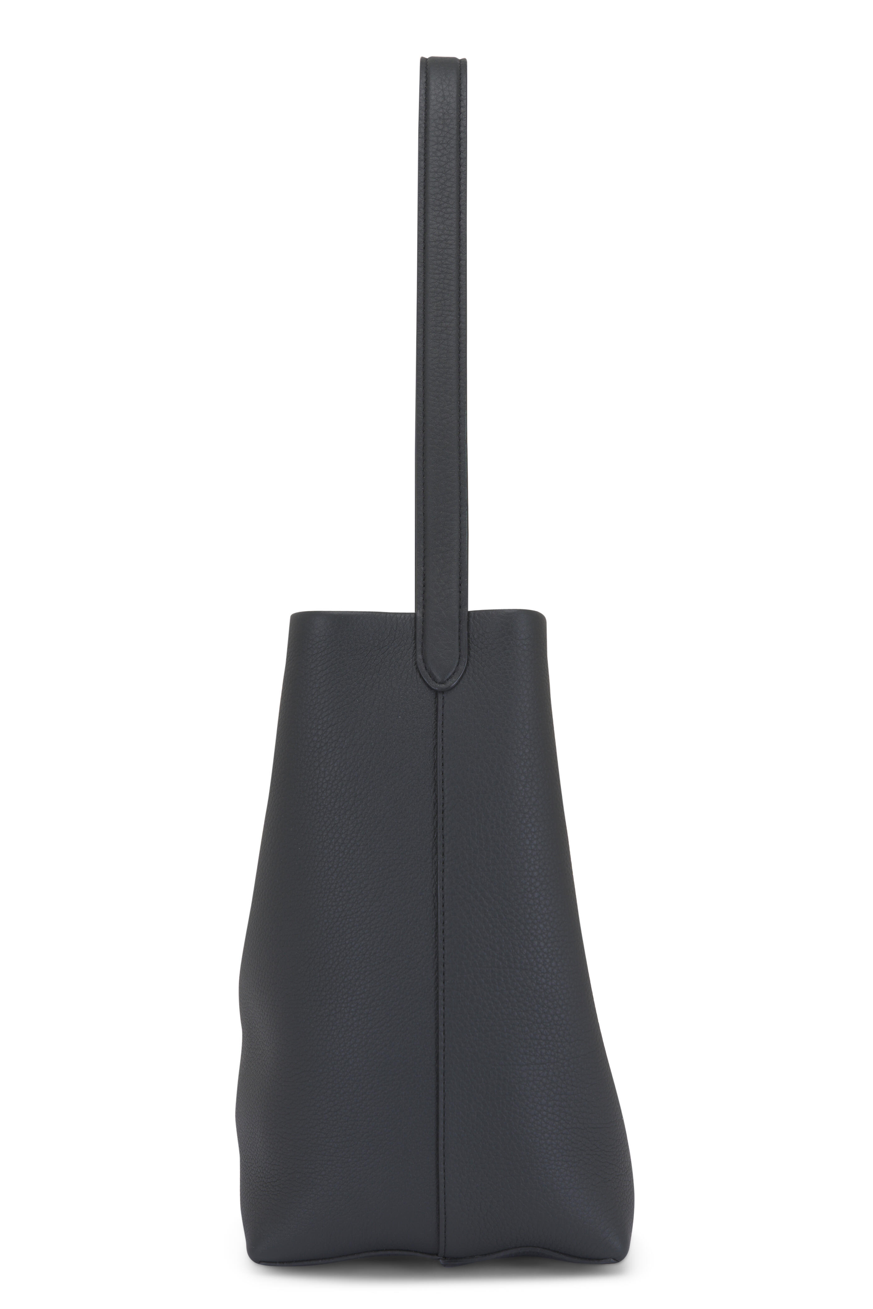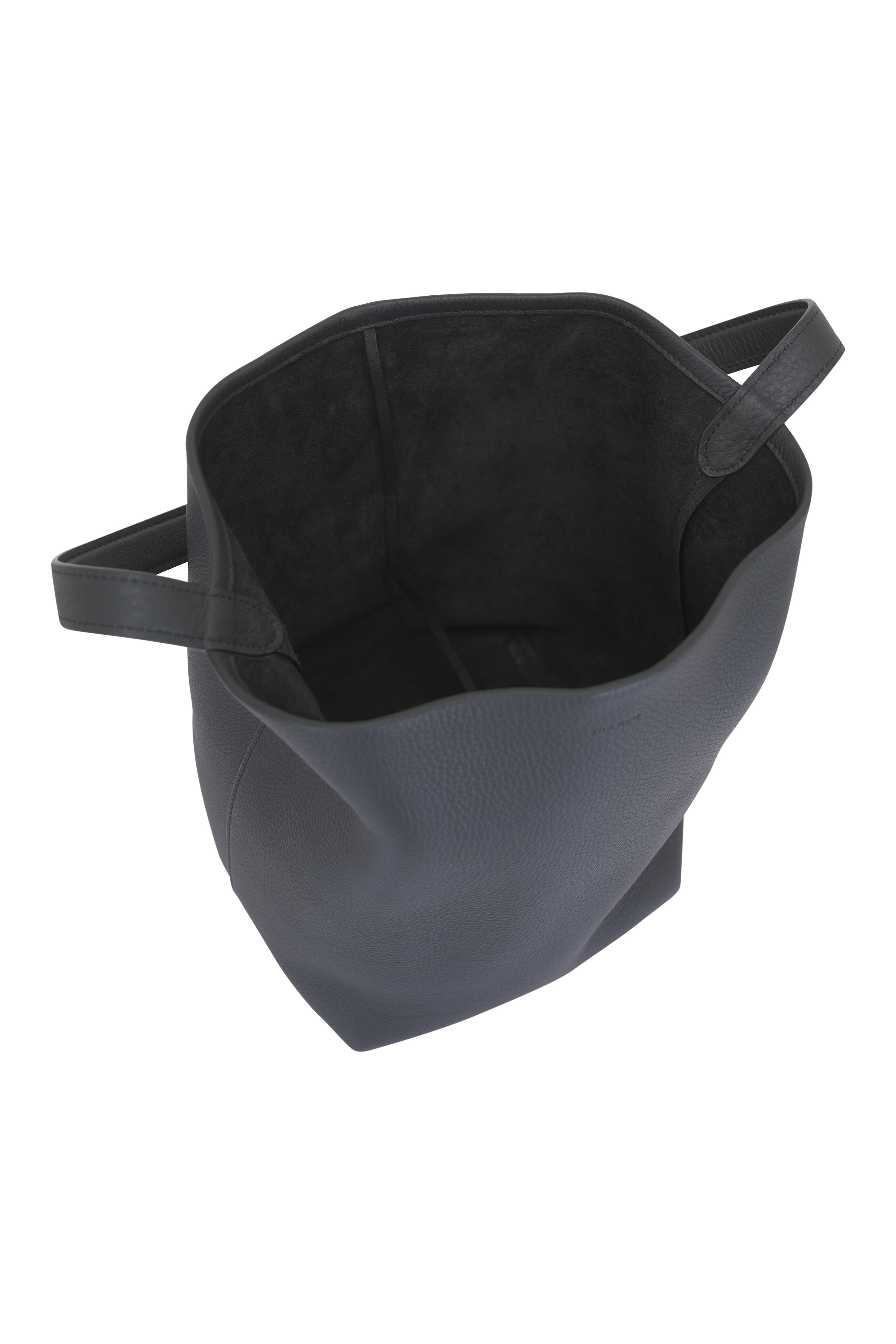 Calfskin leather. Interior tie closure. Single top handle. Square base. Suede lining. Made in Italy. Width: 7". Height: 11 ½". Depth: 7". Handle drop: 10-12".