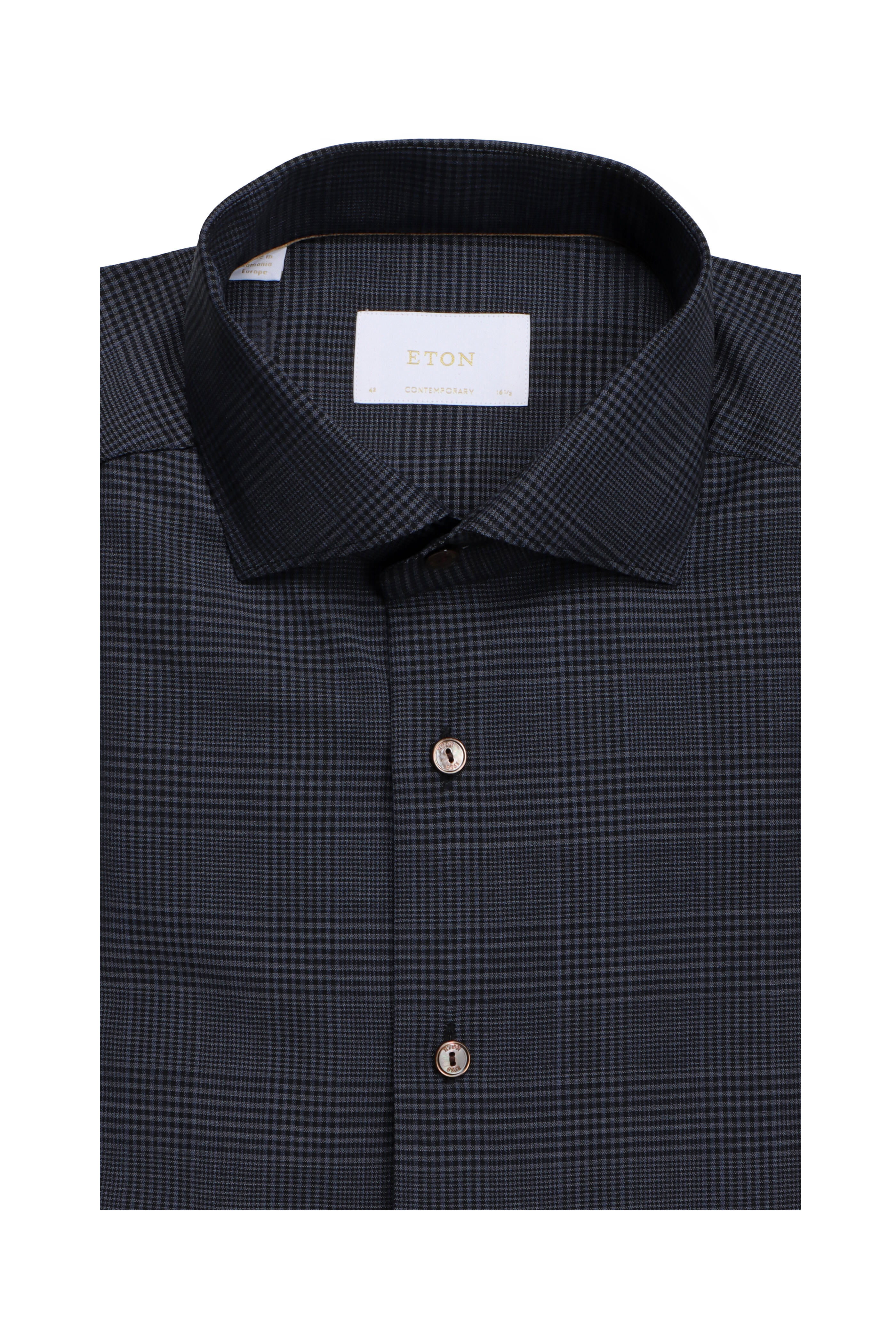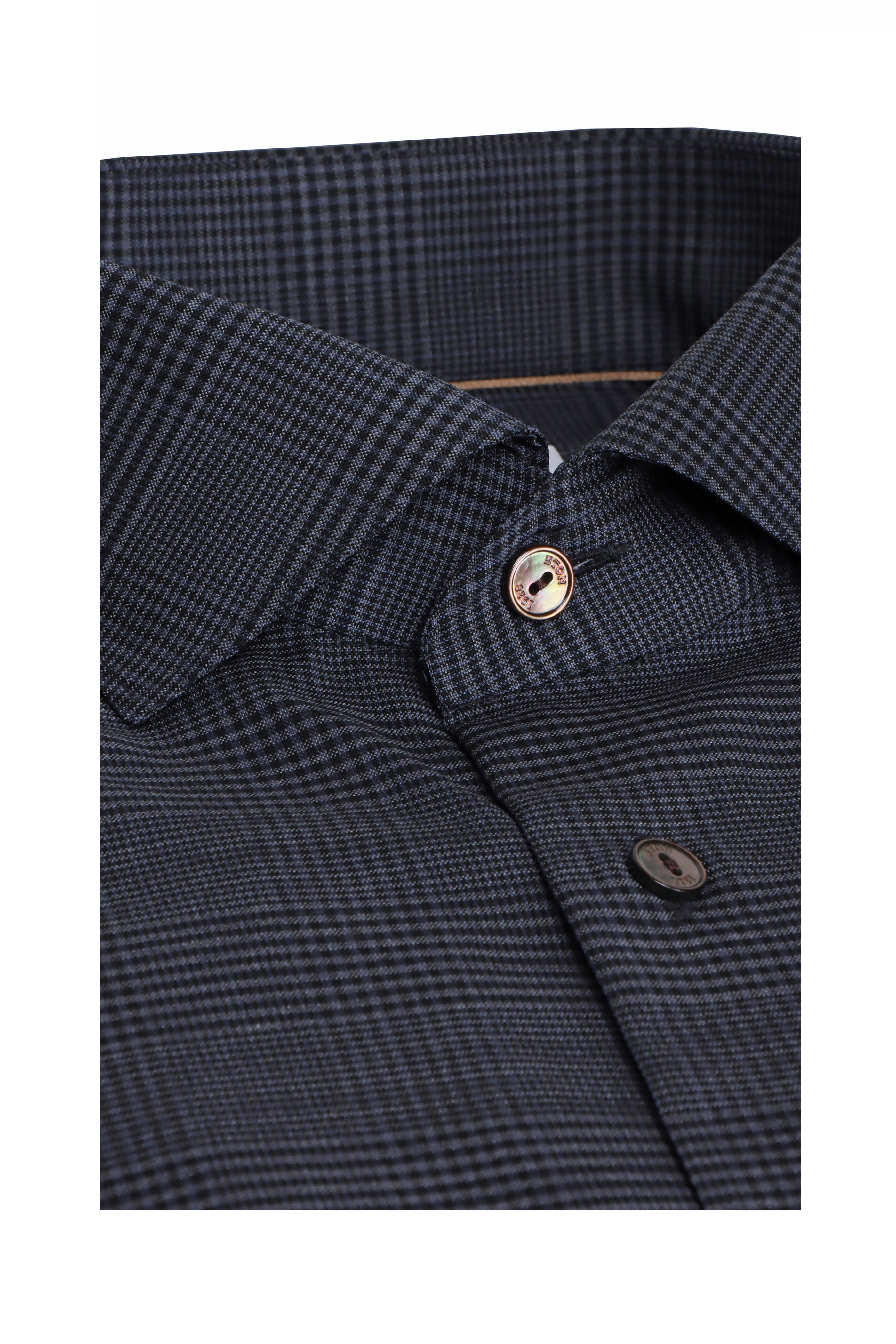 Spread collar. French front button placket. Single button barrel cuffs. Made in Italy. 100% wool. Dry clean.