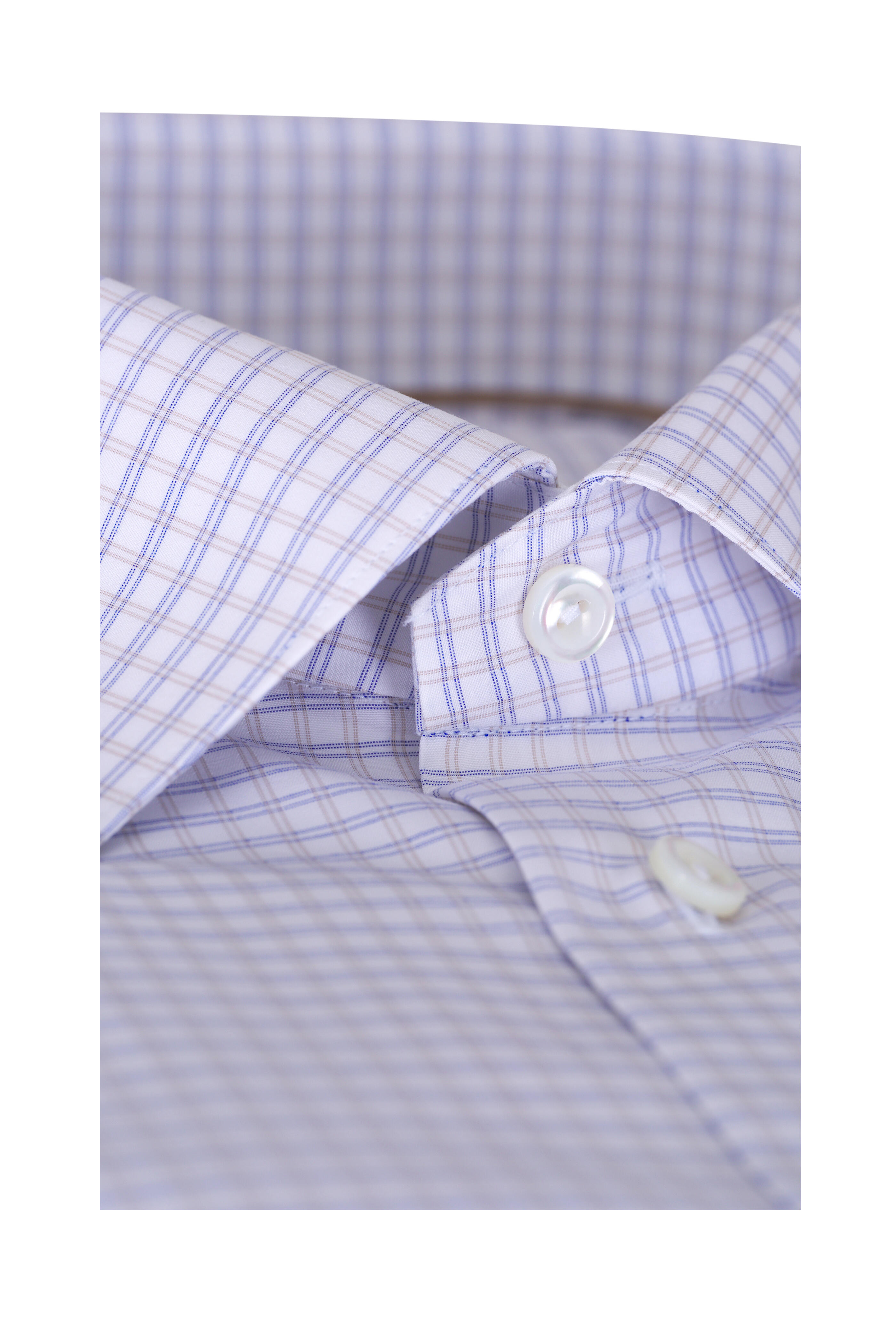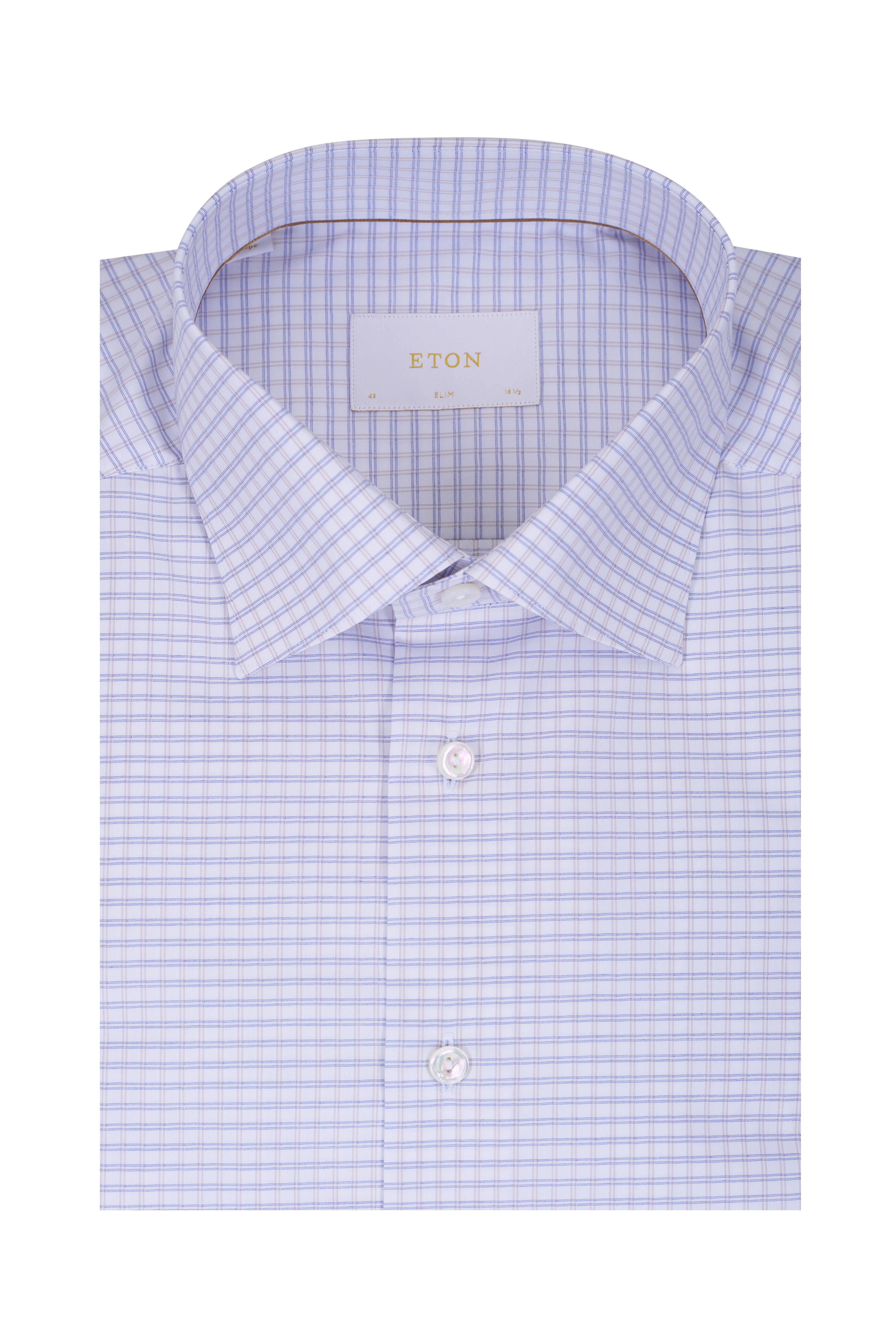 Spread collar. French placket. Single button mitered cuffs. Imported. Slim fit. 100% cotton. Machine wash.
