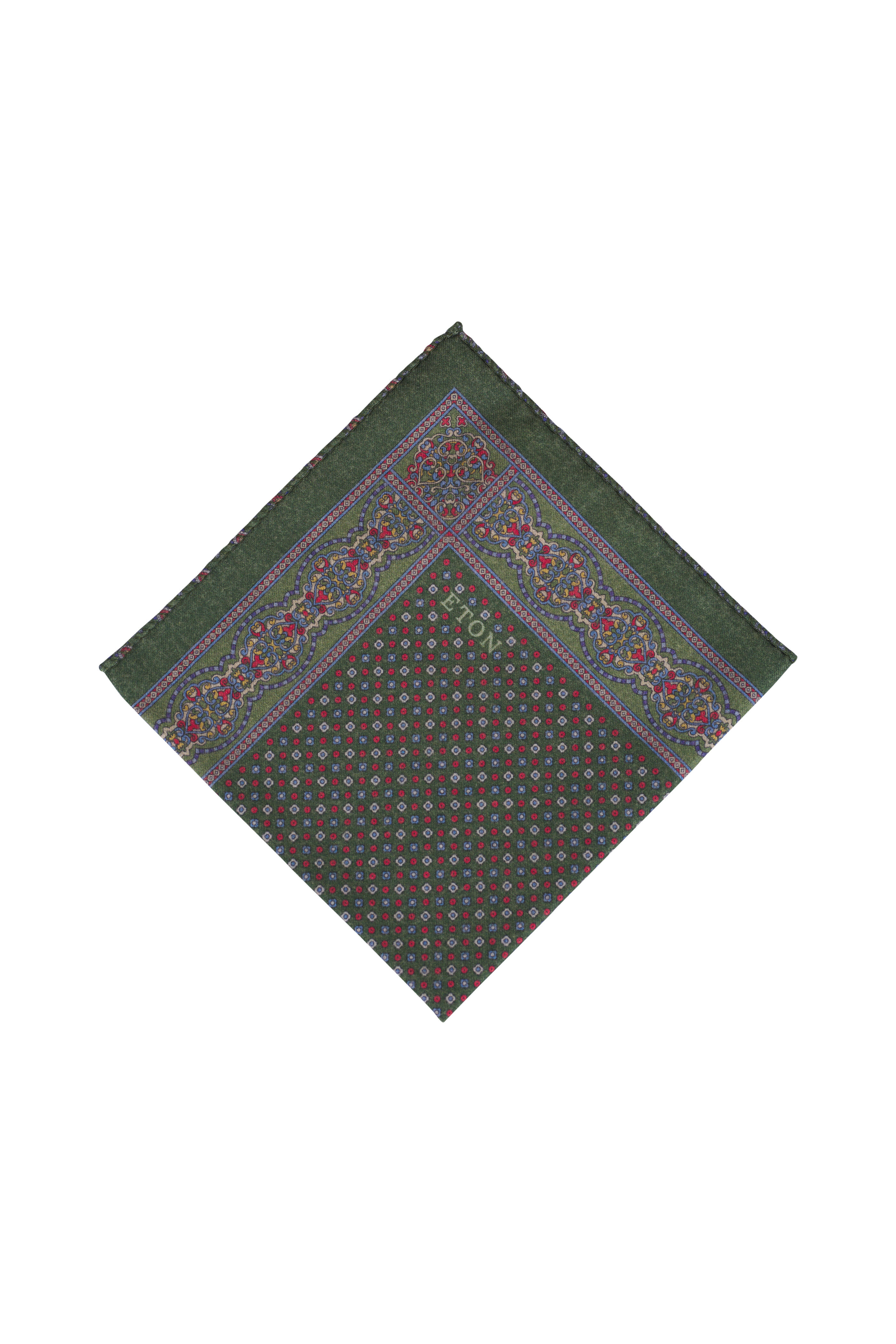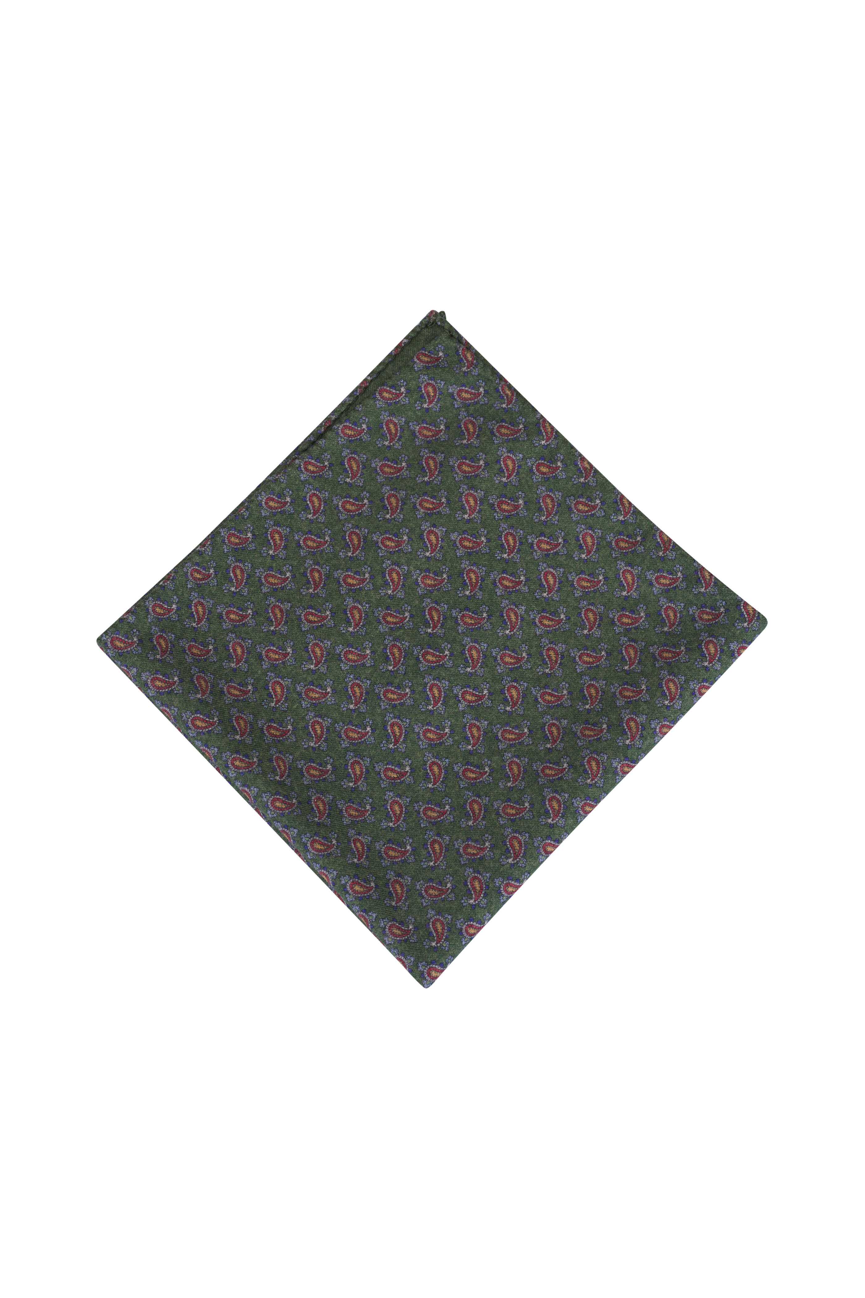 Green Paisley Print Wool Pocket Square