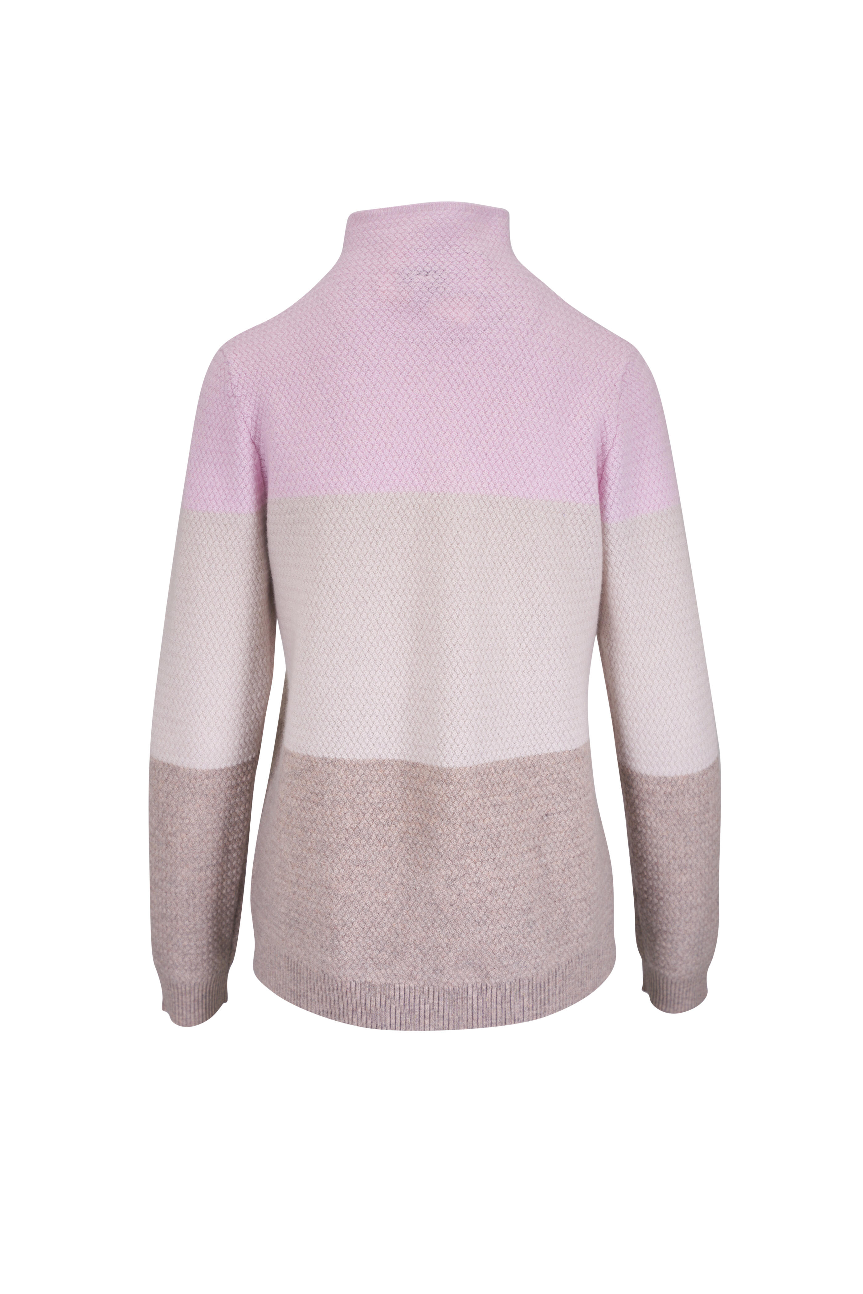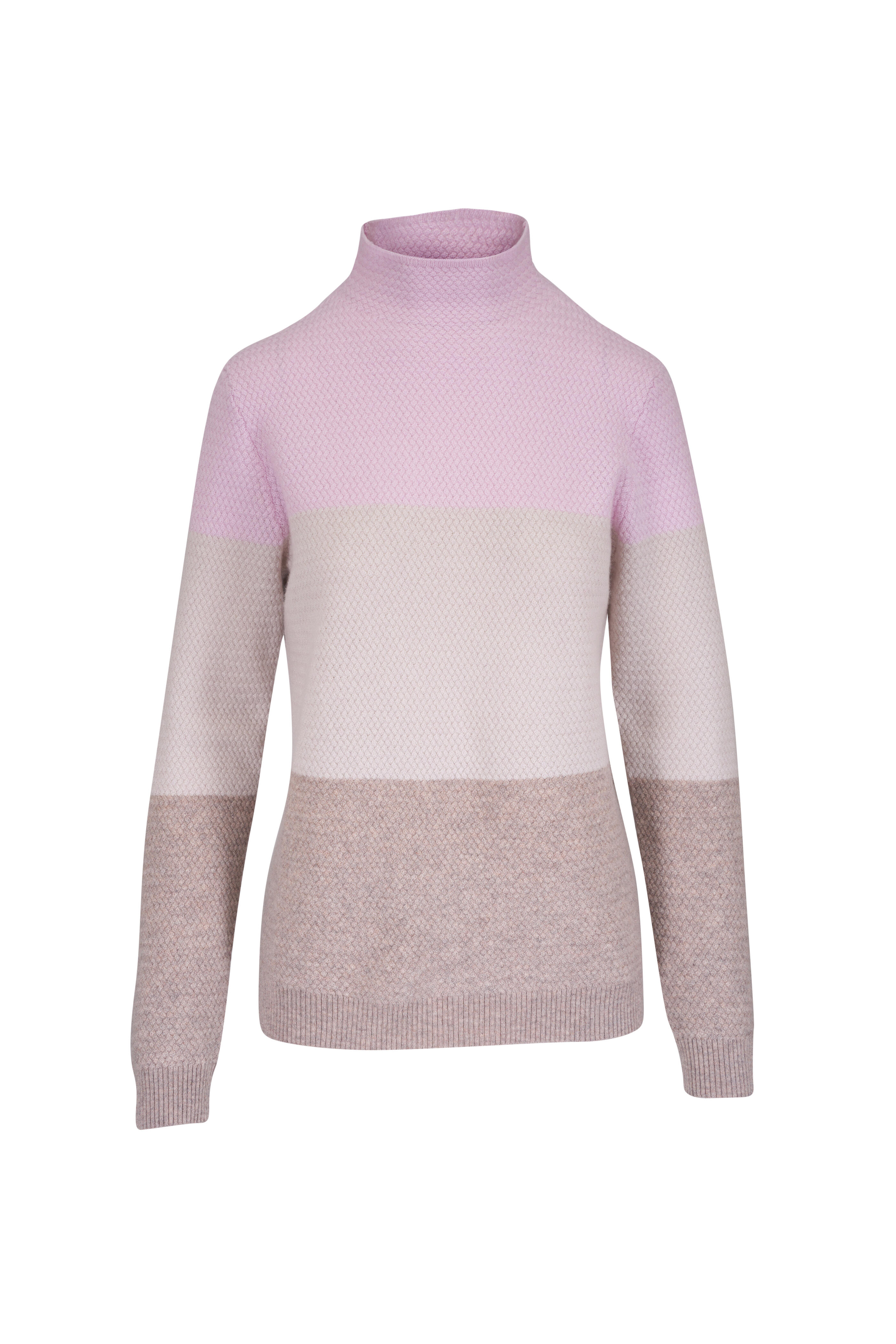 Funnel neckline. Ribbed trims. Imported. 100% cashmere. Dry clean.