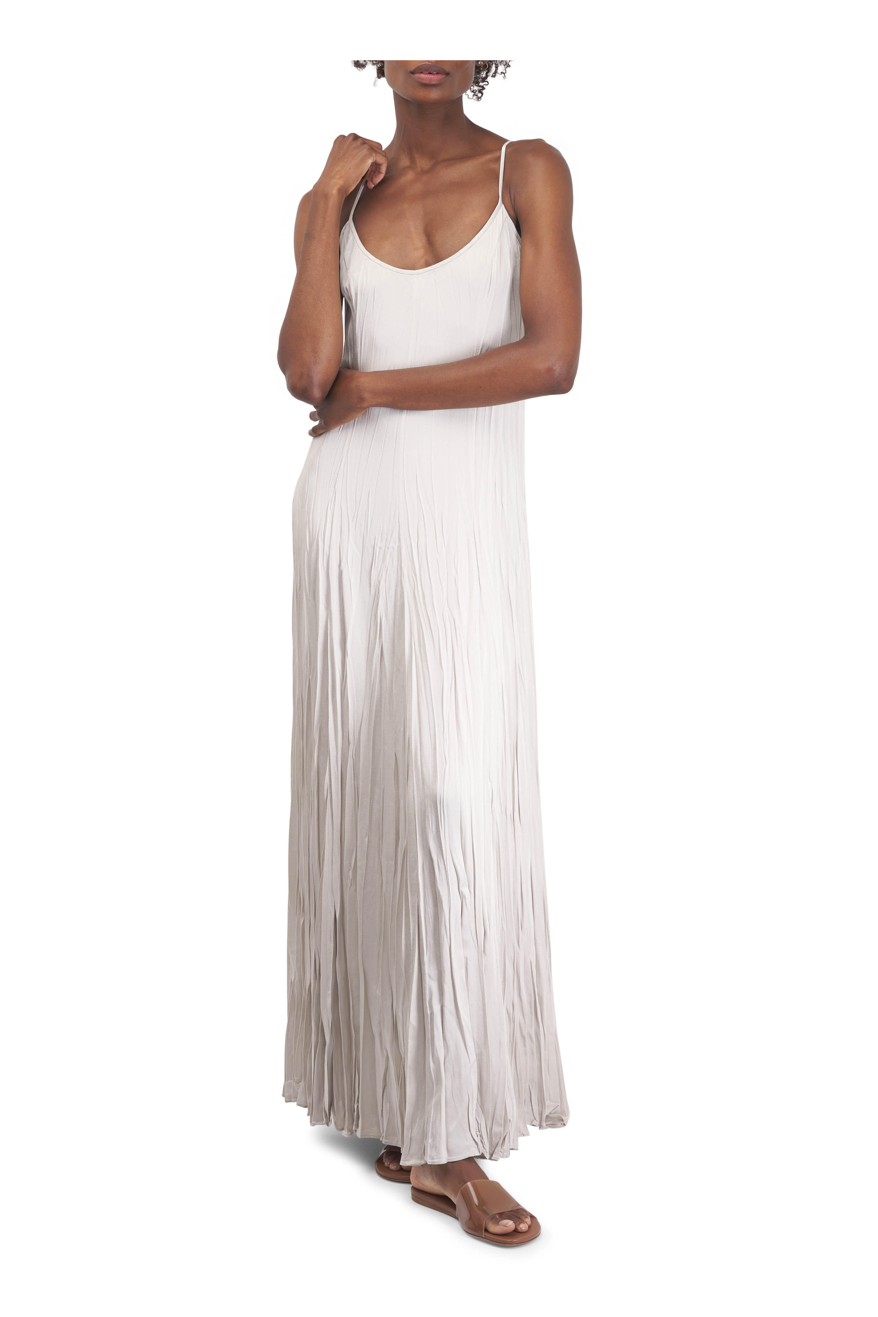 Oyster Crushed Techno Charmeuse Maxi Slip Dress