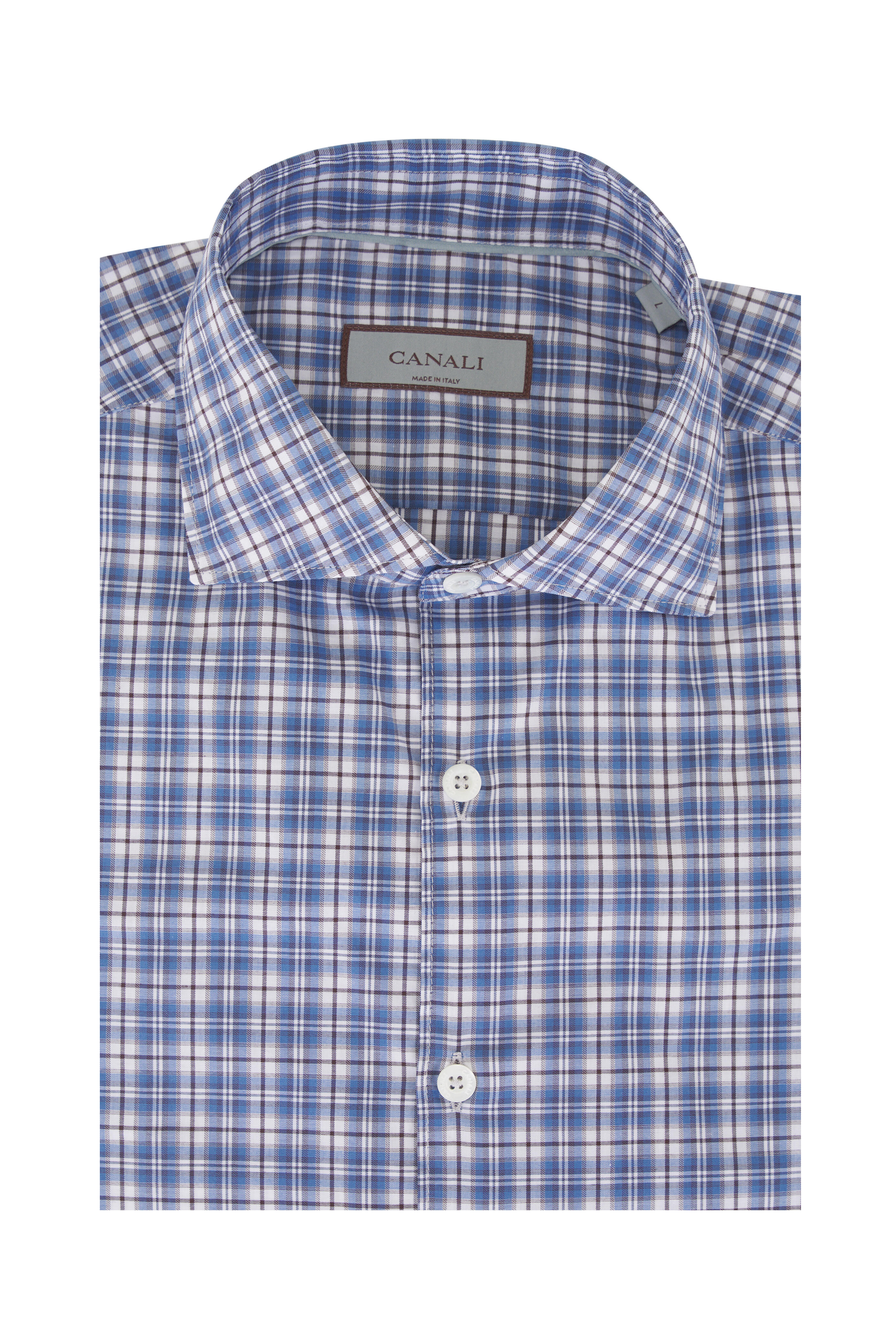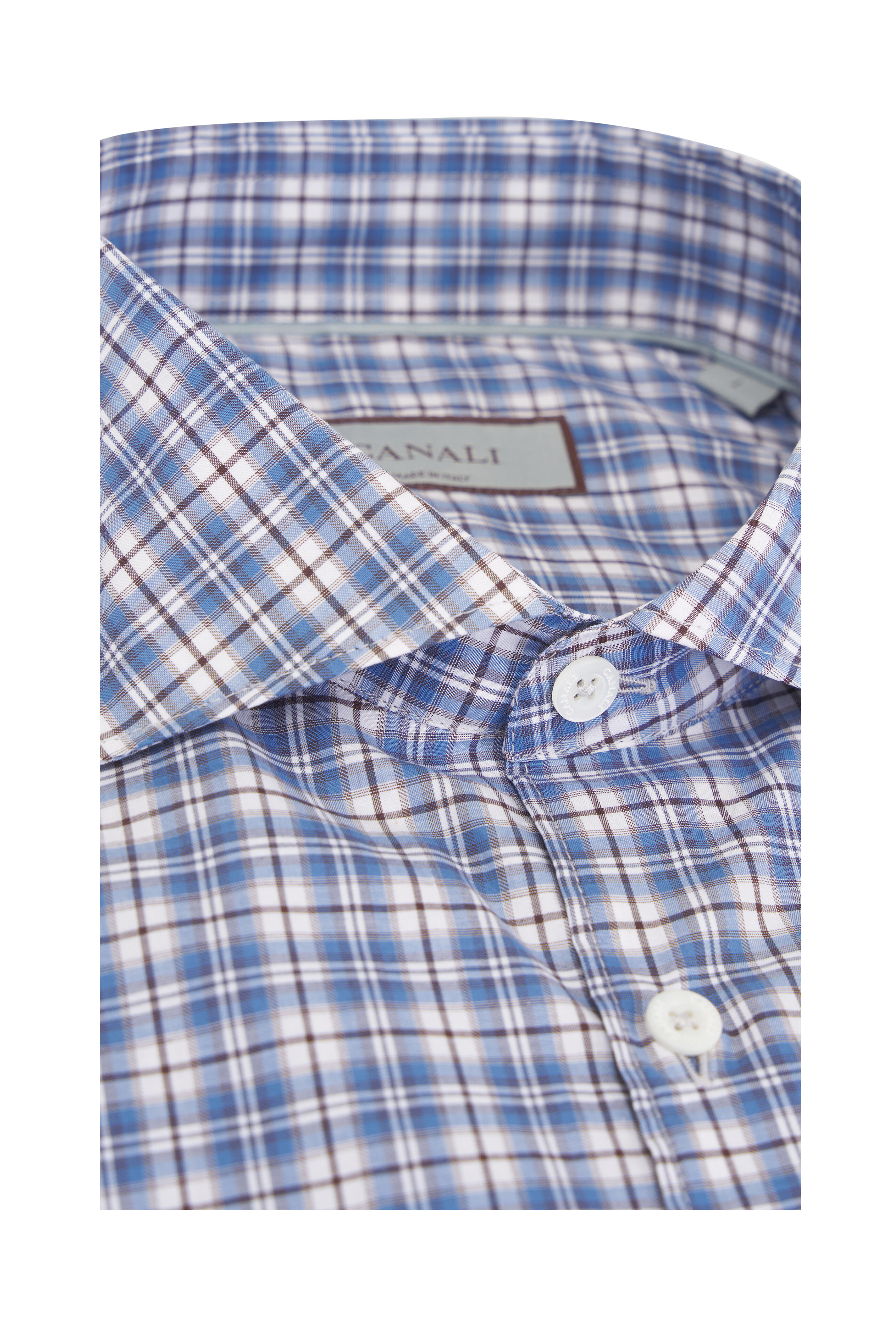Light Blue & Brown Plaid Cotton Sport Shirt