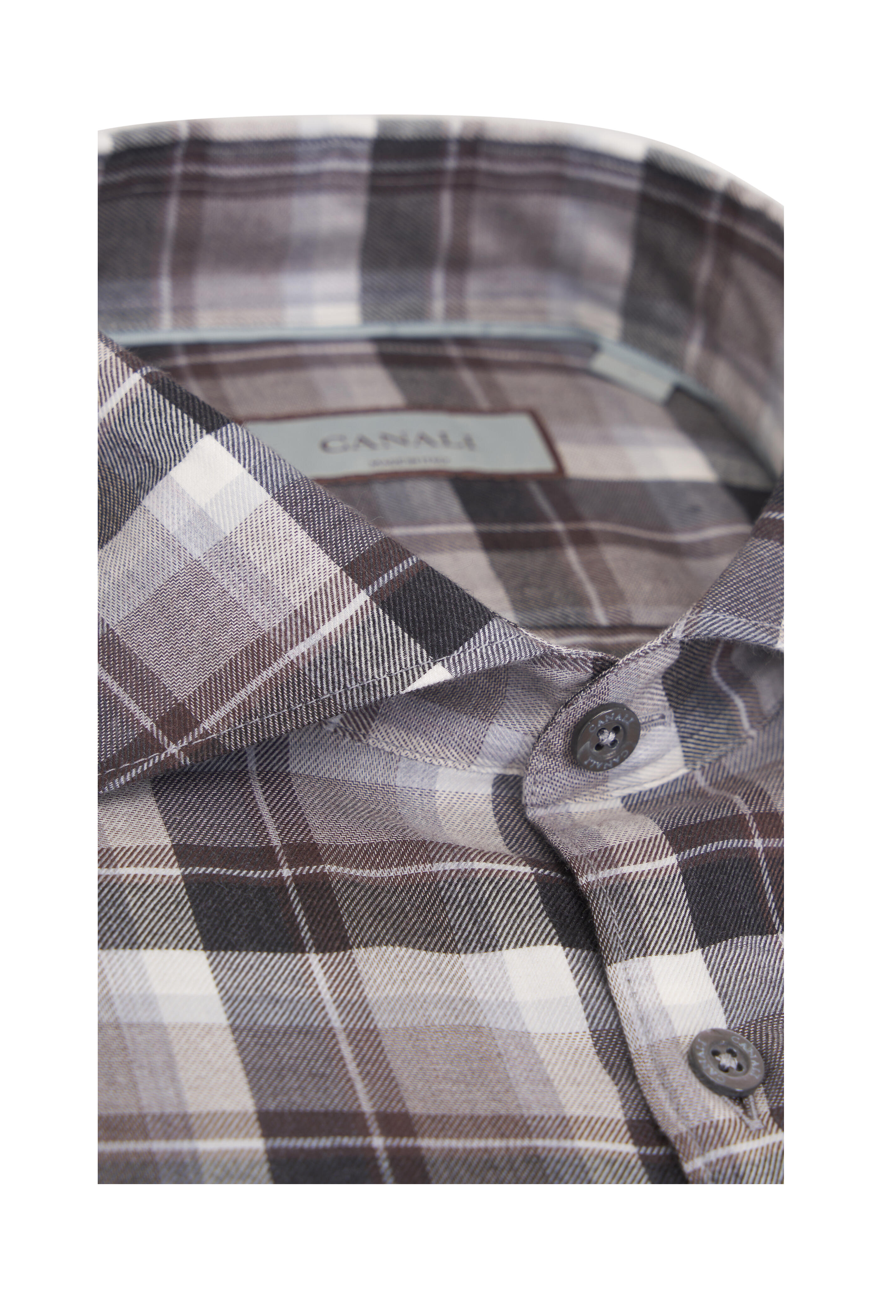 Brown & Gray Tonal Plaid Cotton Sport Shirt
