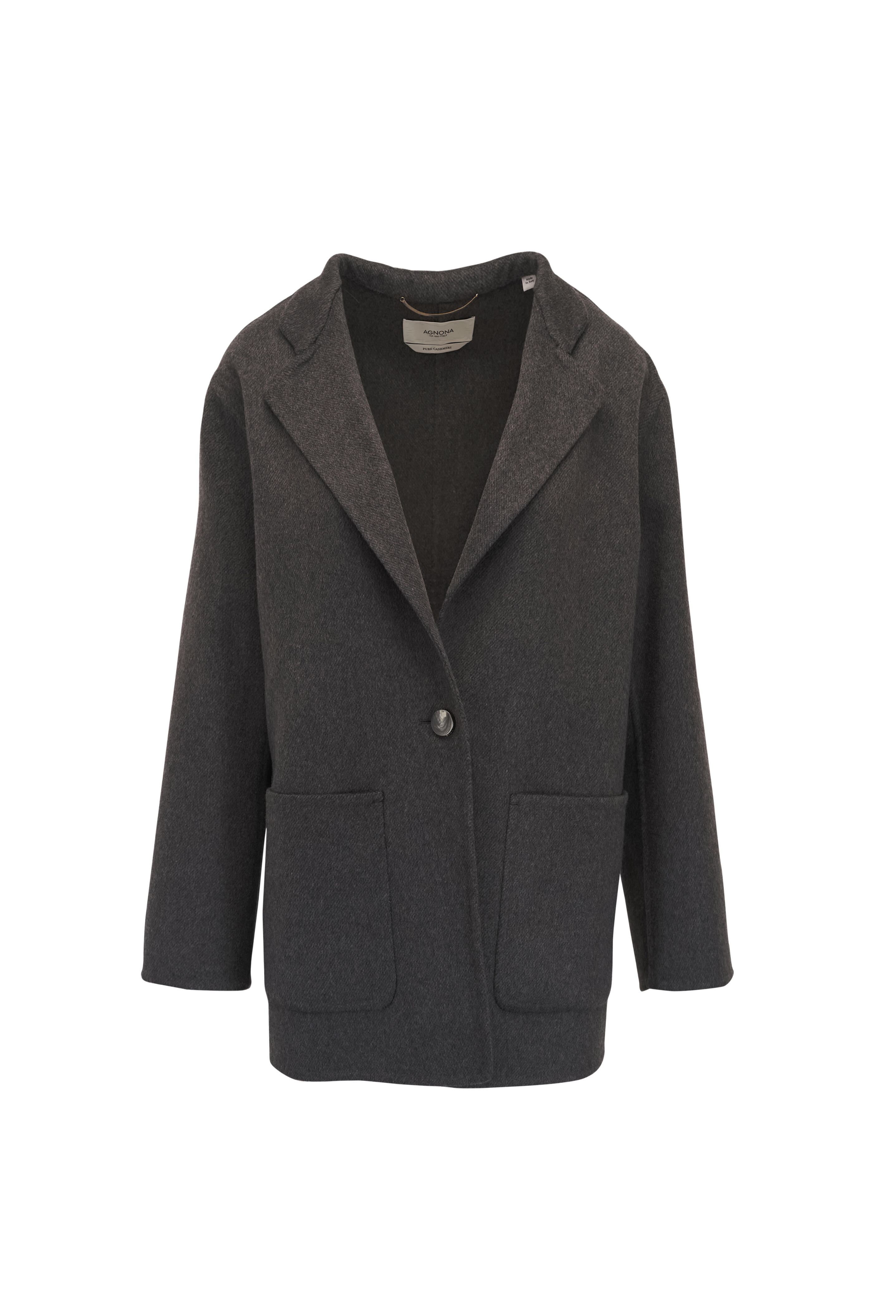 Notched lapel & high-neck style. Single button closure. Two front patch pockets. Made in Italy. 100% cashmere. Dry clean.