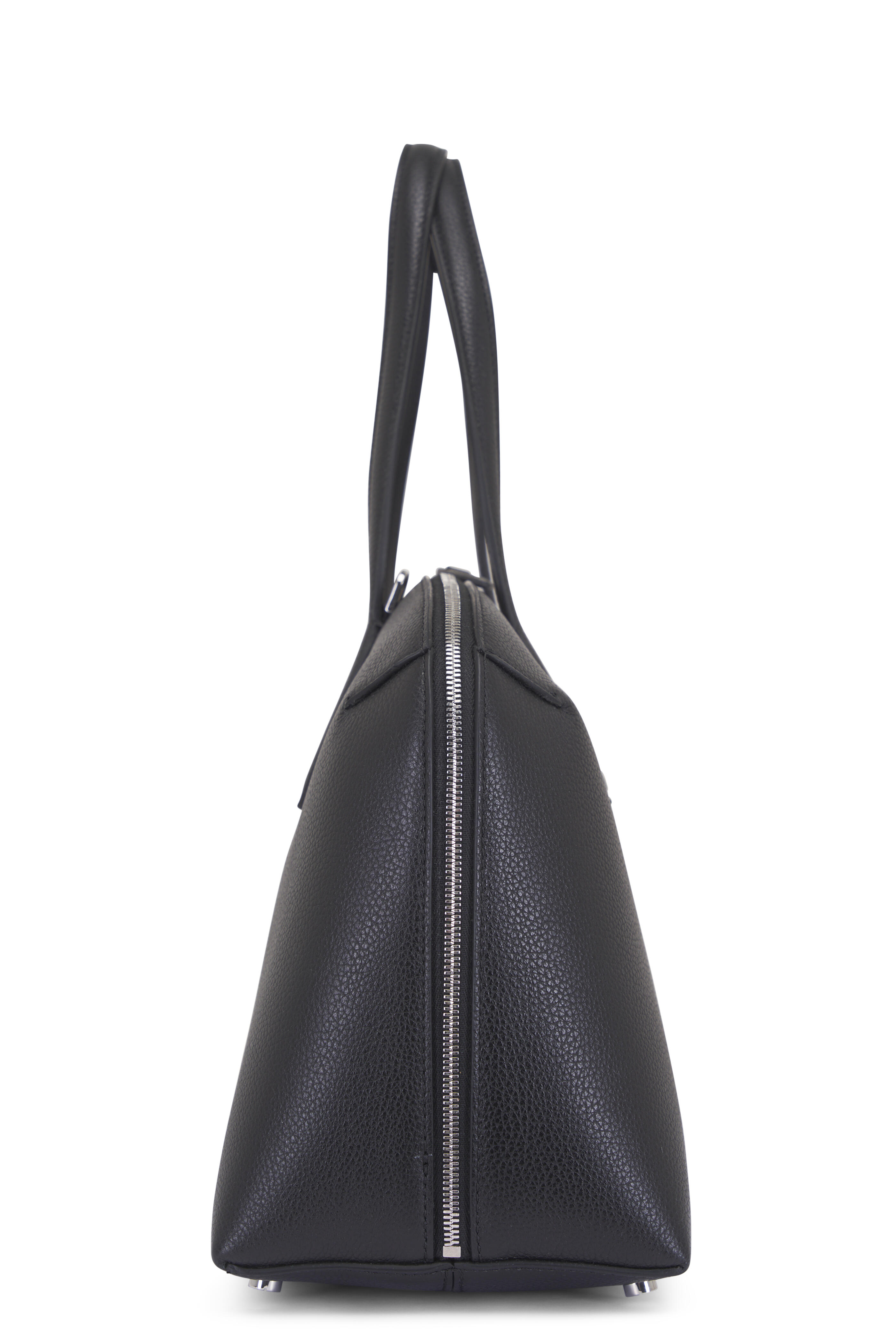 Grained leather. Dual top handles. Top dual zip closure. Interior slip pocket. Microsuede lining. Made in Italy. Top handle 14cm/5.5". Height 23cm/9". Width 36cm/14". Depth 14cm/5.5".