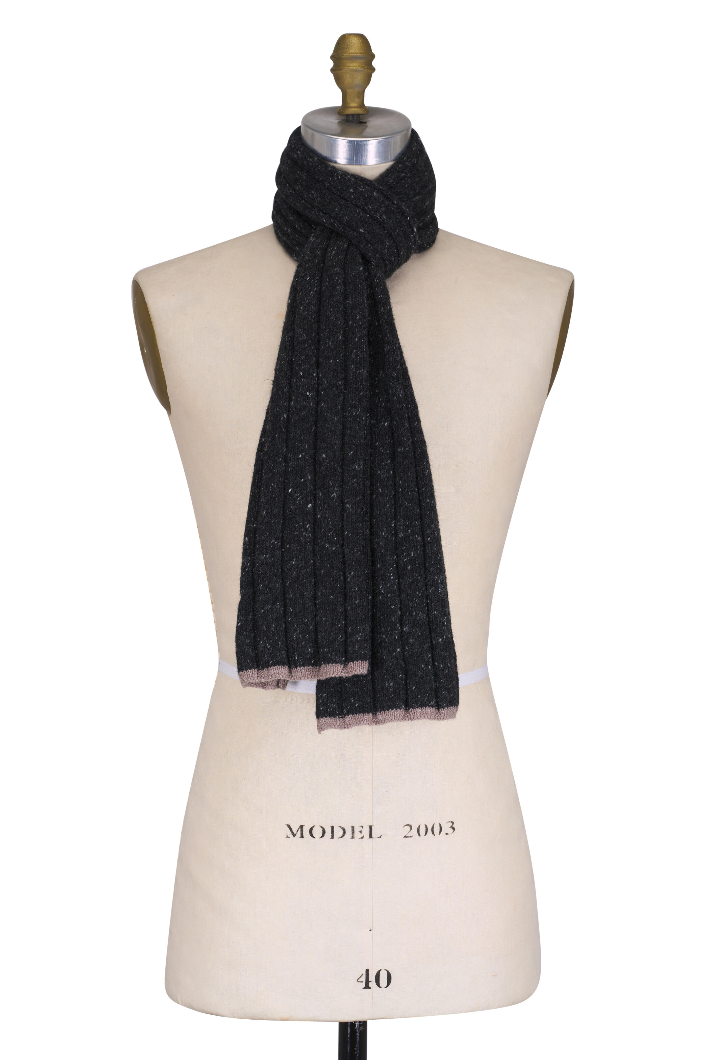Contrast tipping. Made in Italy. 100% cashmere. Hand wash.