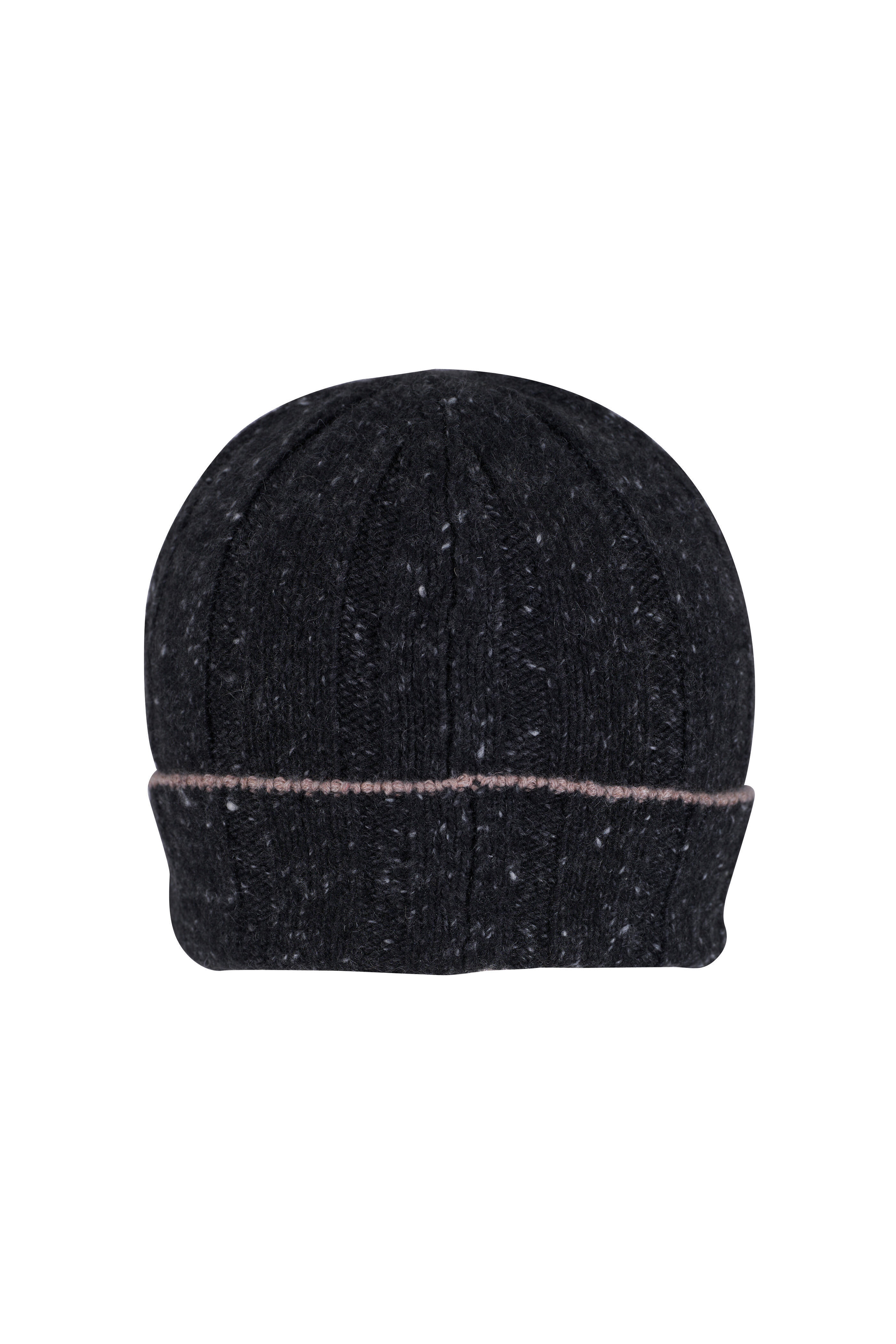 Anthracite Flecked Cashmere Rib Knit Beanie
