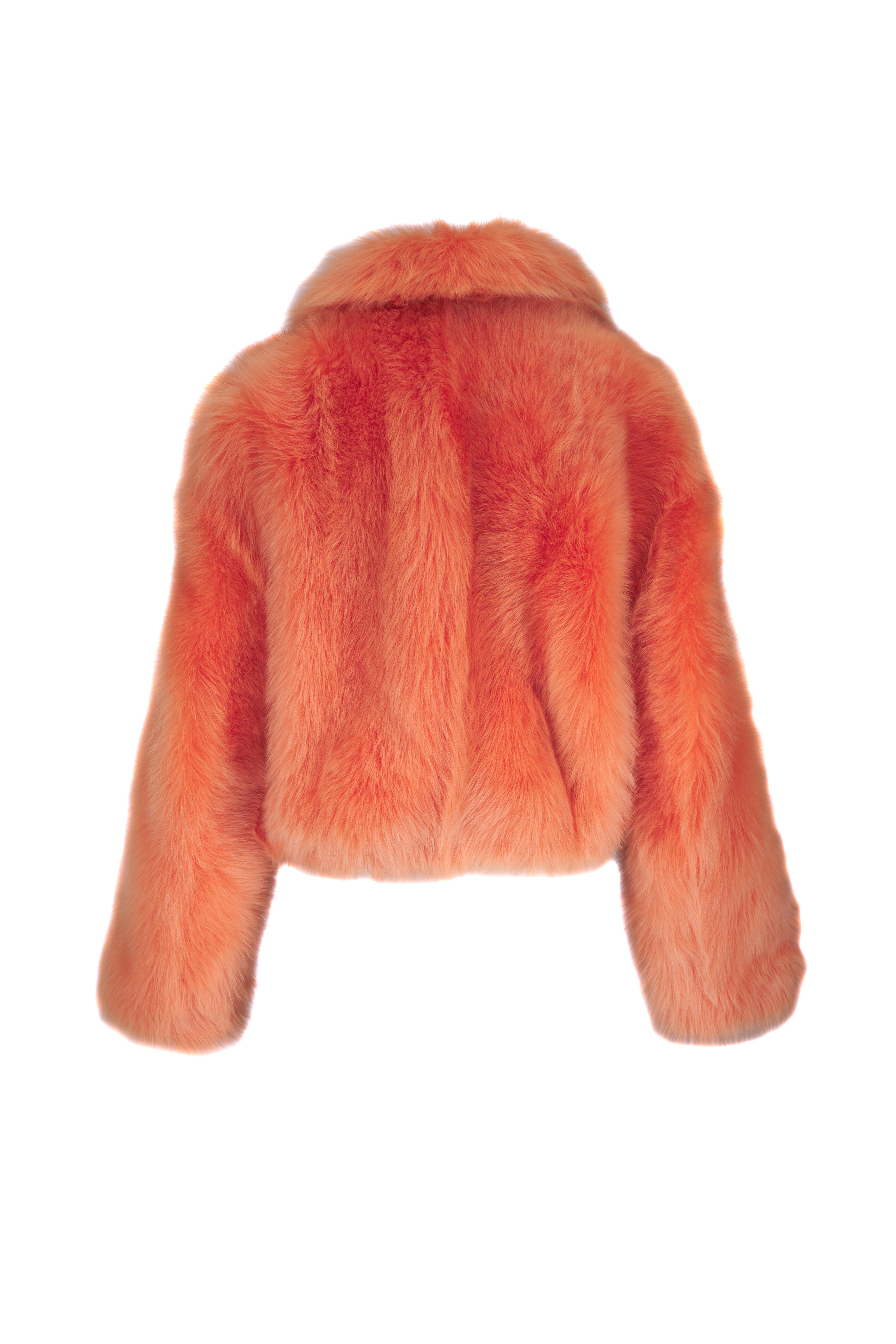 Specialist clean. Spread collar. Hook closure. Side slip pockets. Made in Italy. 20" shoulder to hem. 100% lambskin.