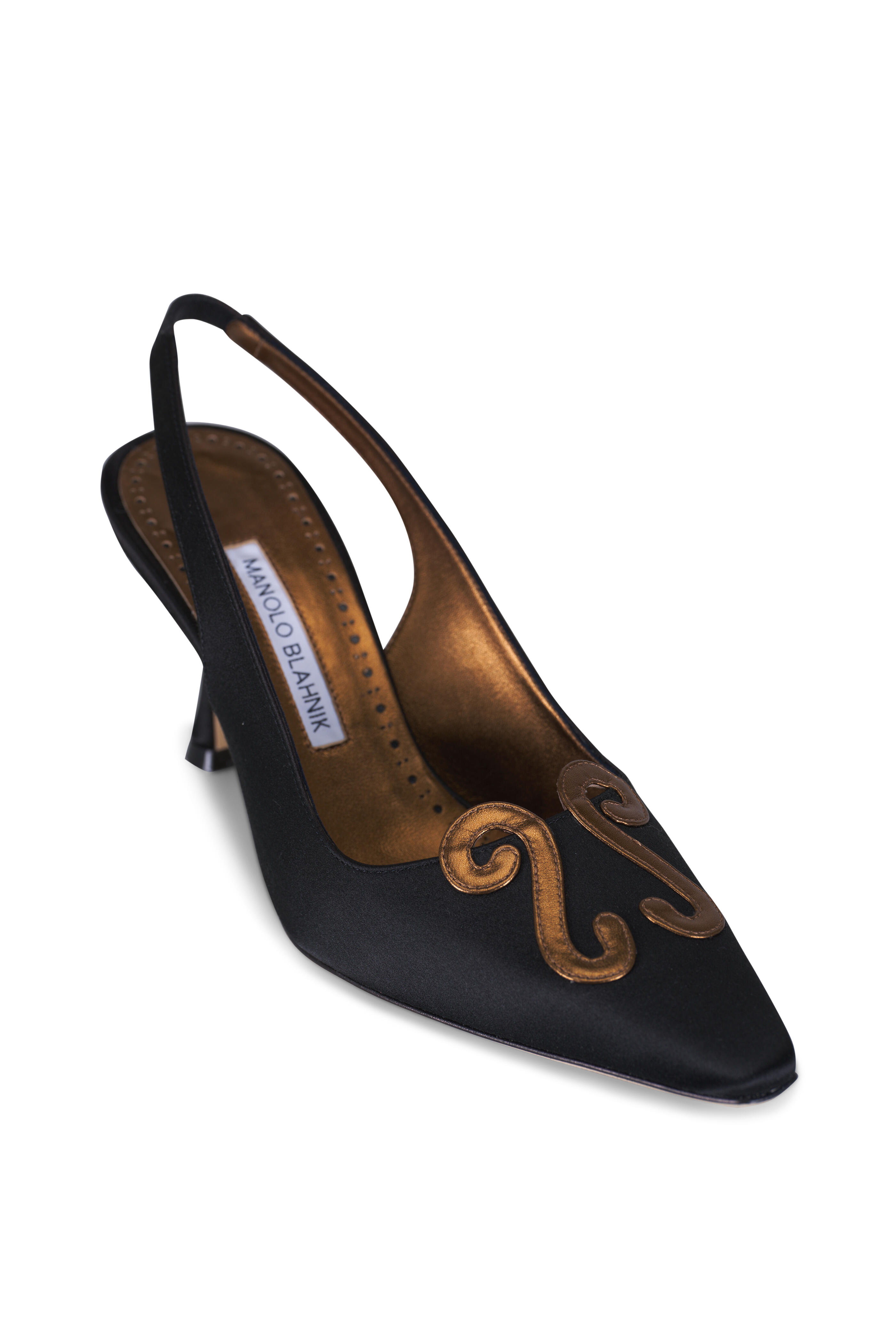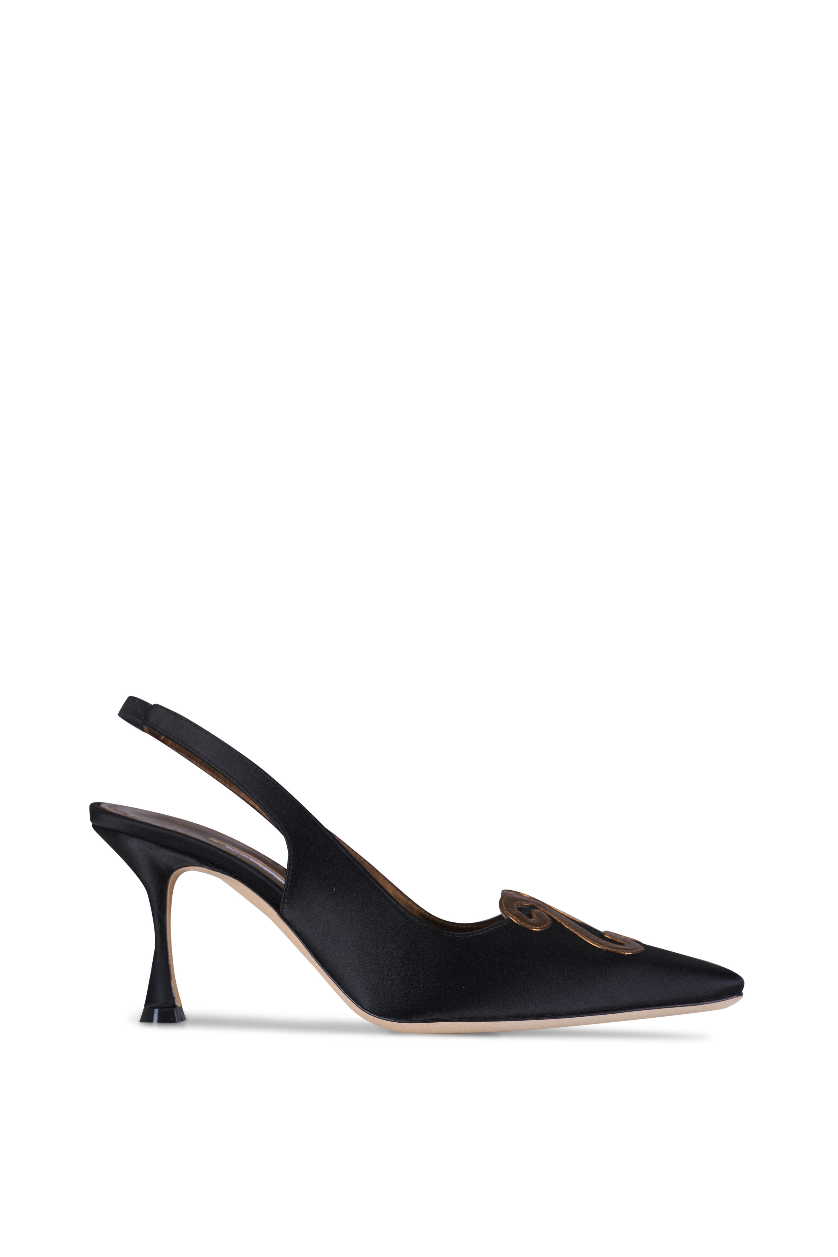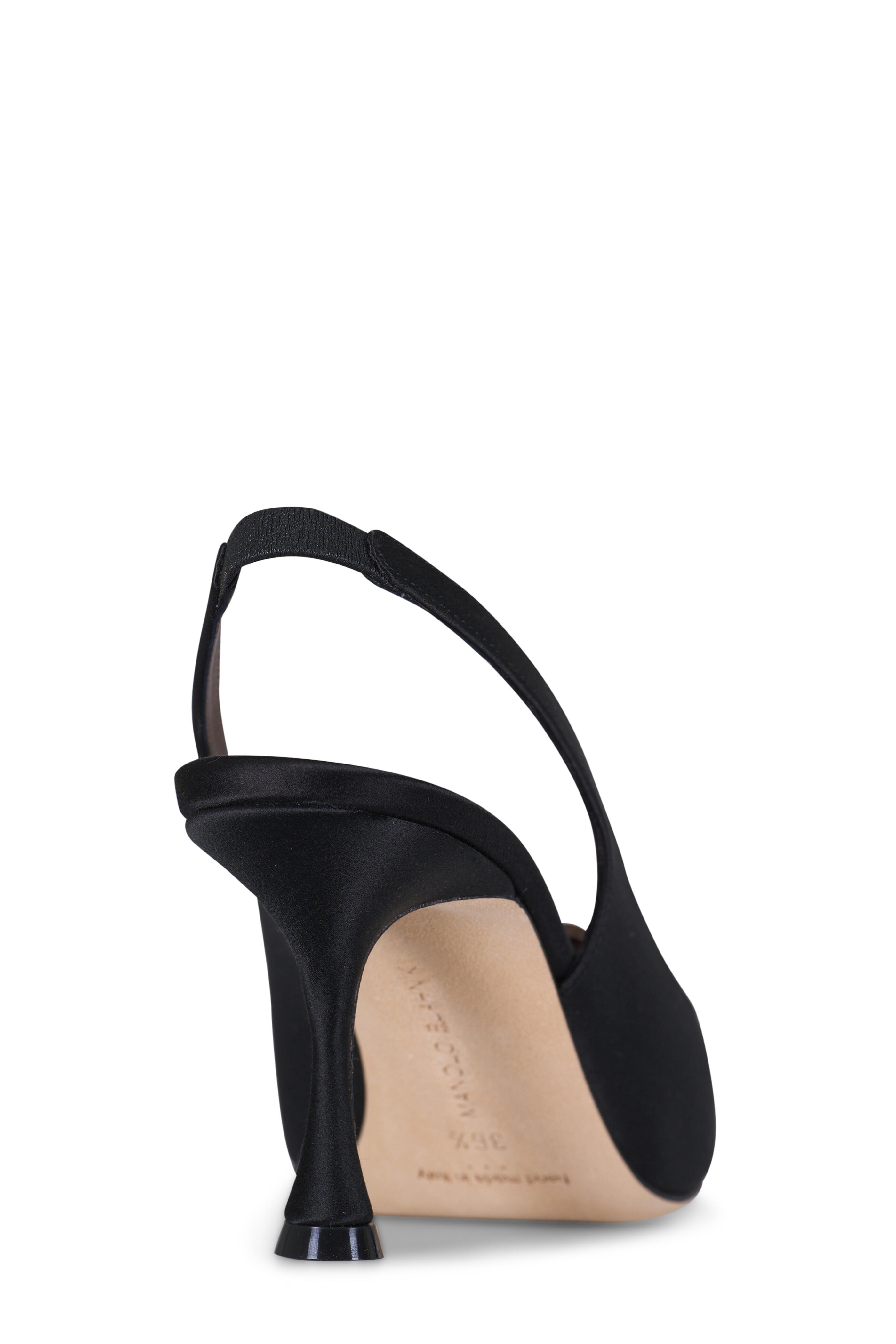 Satin upper. Pointed toe. Slingback. Leather lining and insole. Leather sole. Made in Italy. Heel measurement: 70mm.