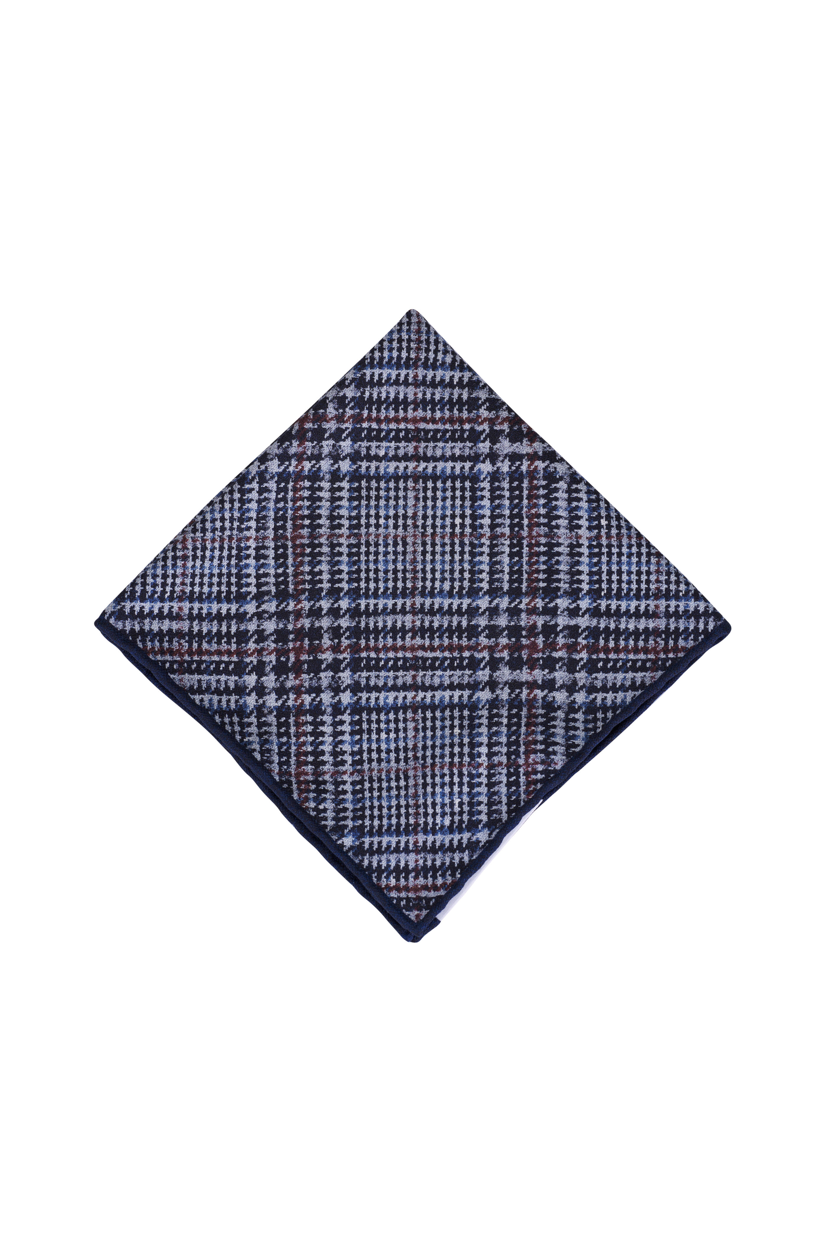 Navy & Gray Plaid Silk Pocket Square