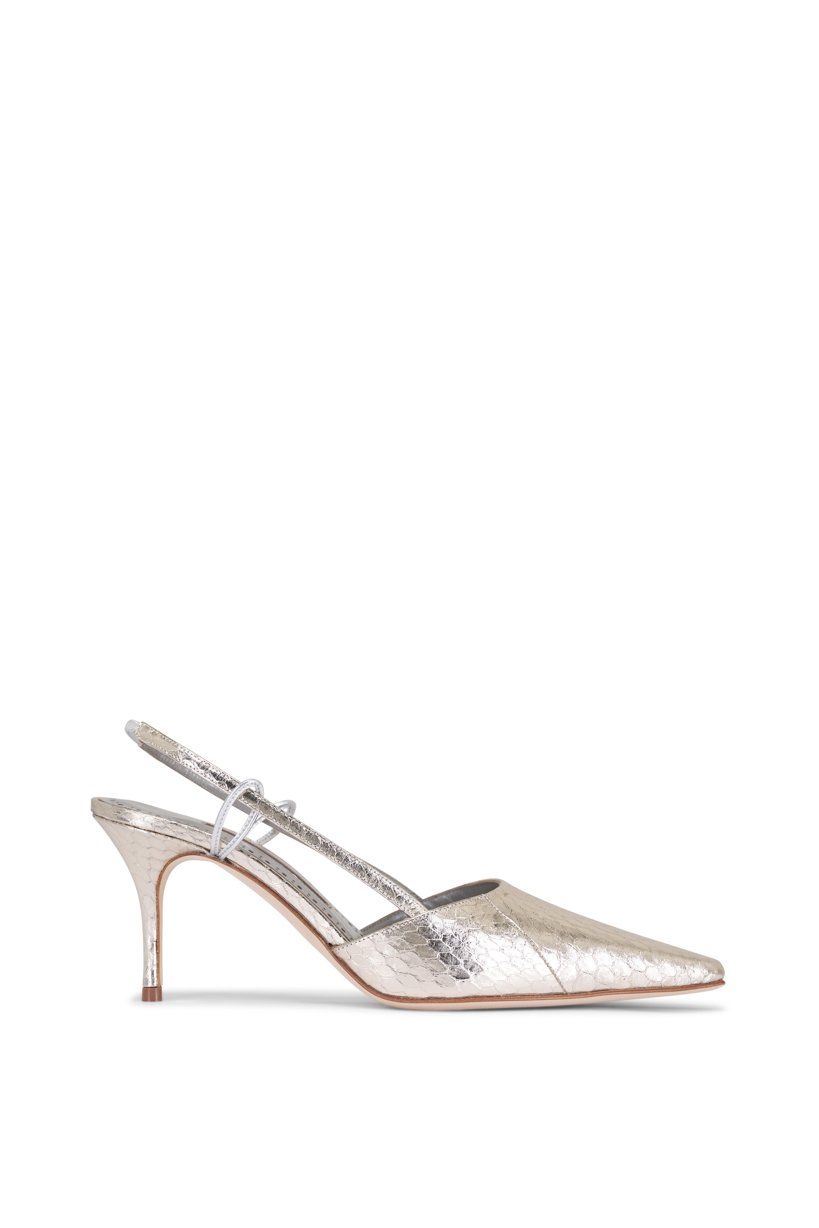 Touki Silver Metallic Leather Slingback, 70mm