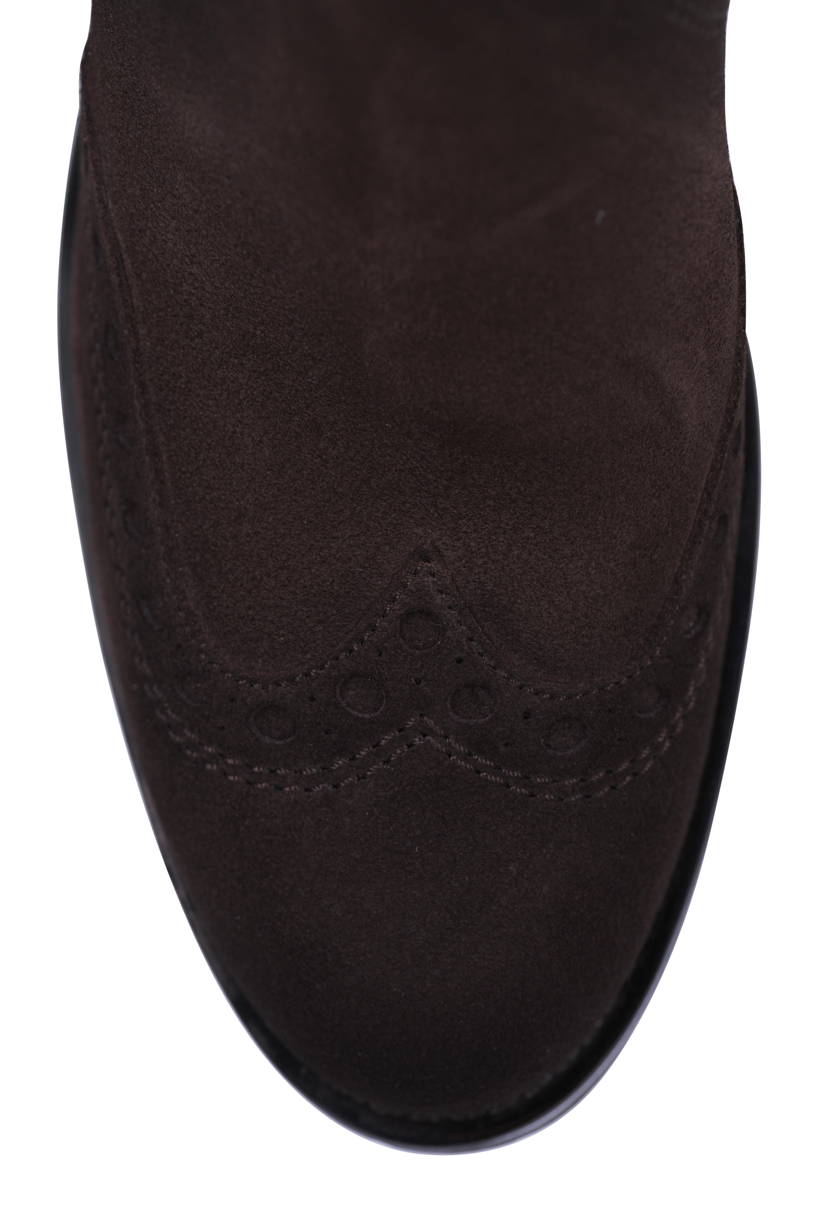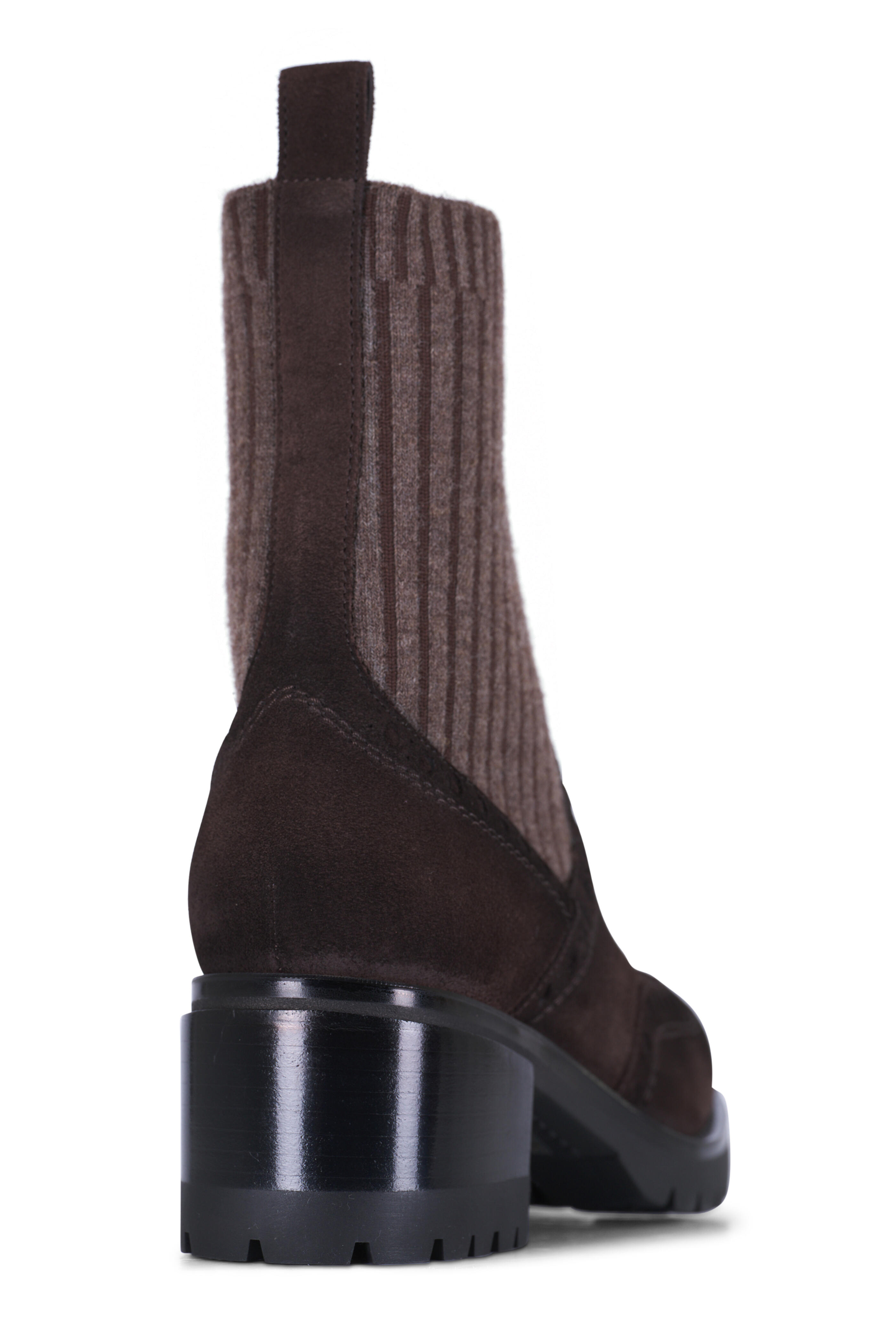 Suede and textile upper. Round toe. Slip-on style. Back pull tab. Textile lining. Leather insole. Block heel. Rubber lug sole. Made in Italy. Heel measurement: 50mm.