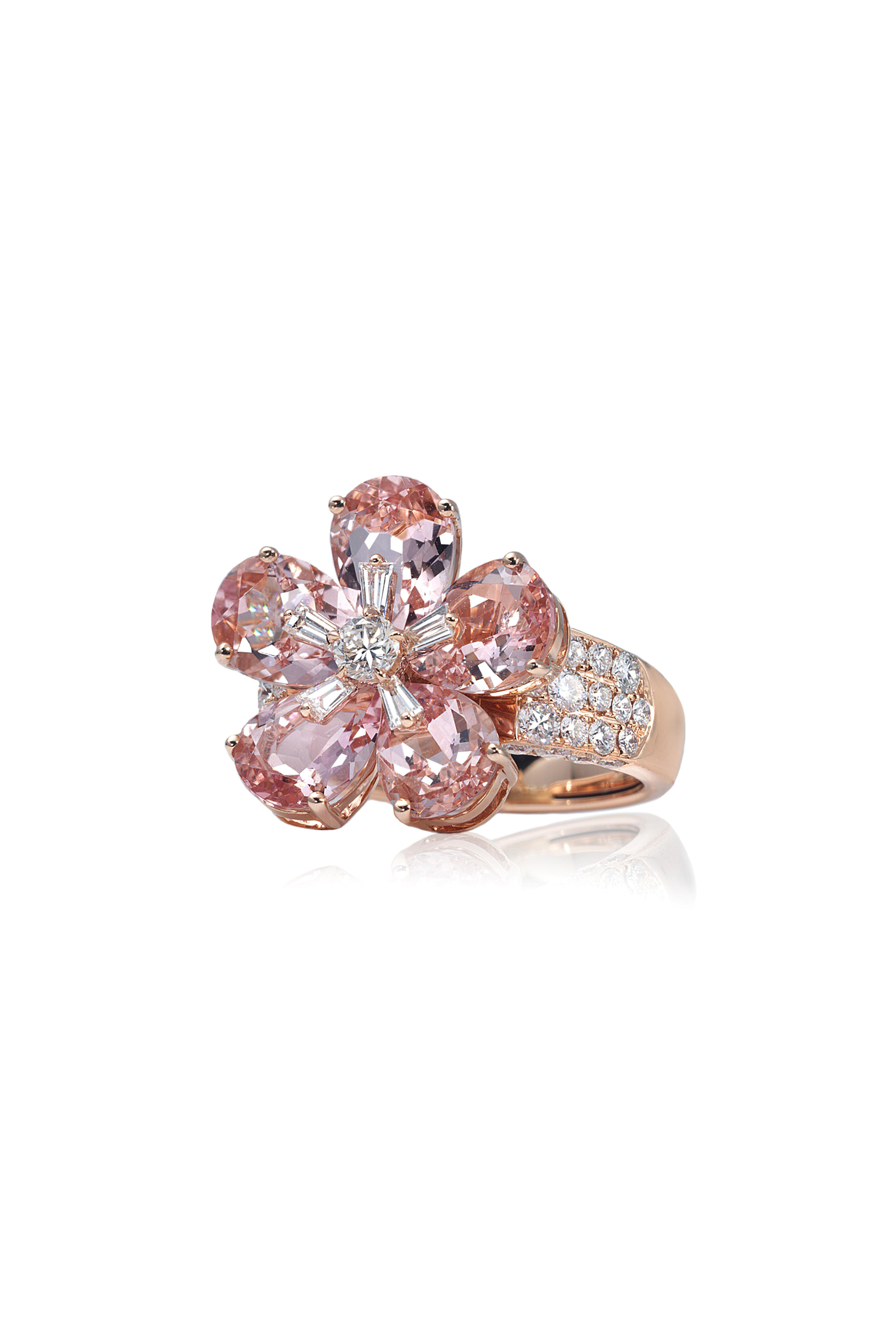 18k Rose Gold. 1.09 ct White Diamond. 4.42 ct Pink Morganite.