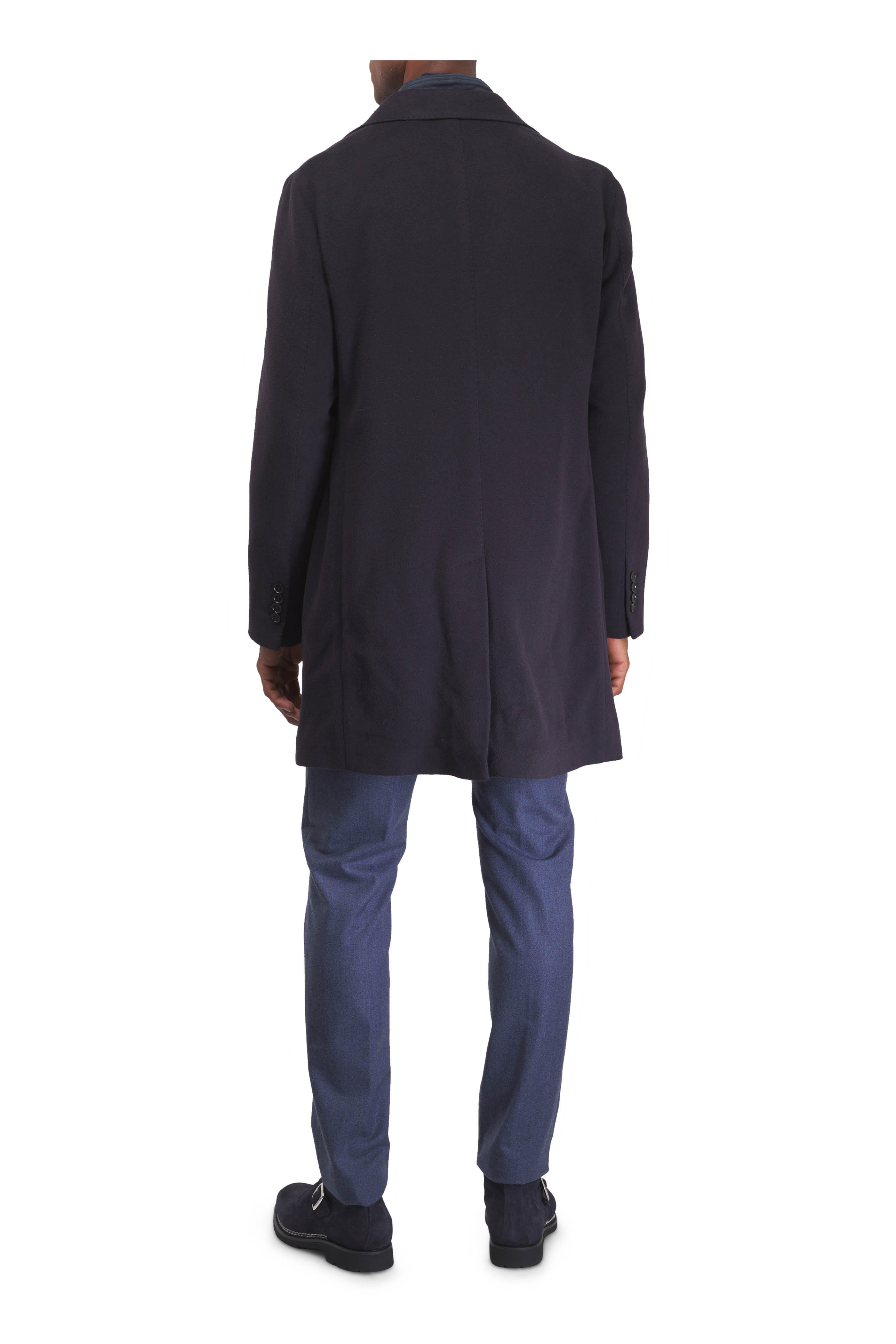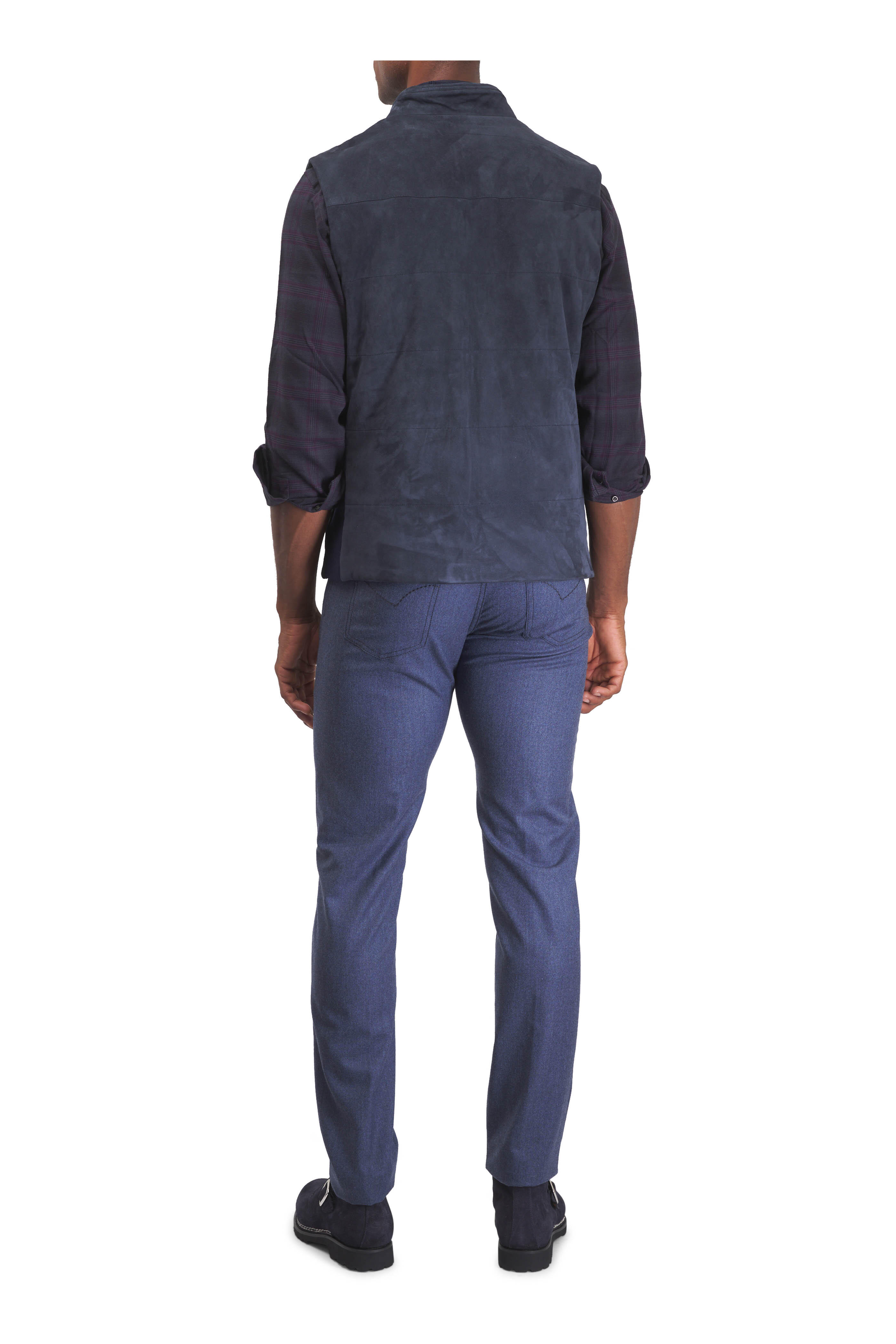 Zip fly with button closure. Banded waist; belt loops. Five pocket styling. Straight hem. Made in Italy. 35" Inseam (size 36). 96% cashmere, 4% elastane. Dry clean.