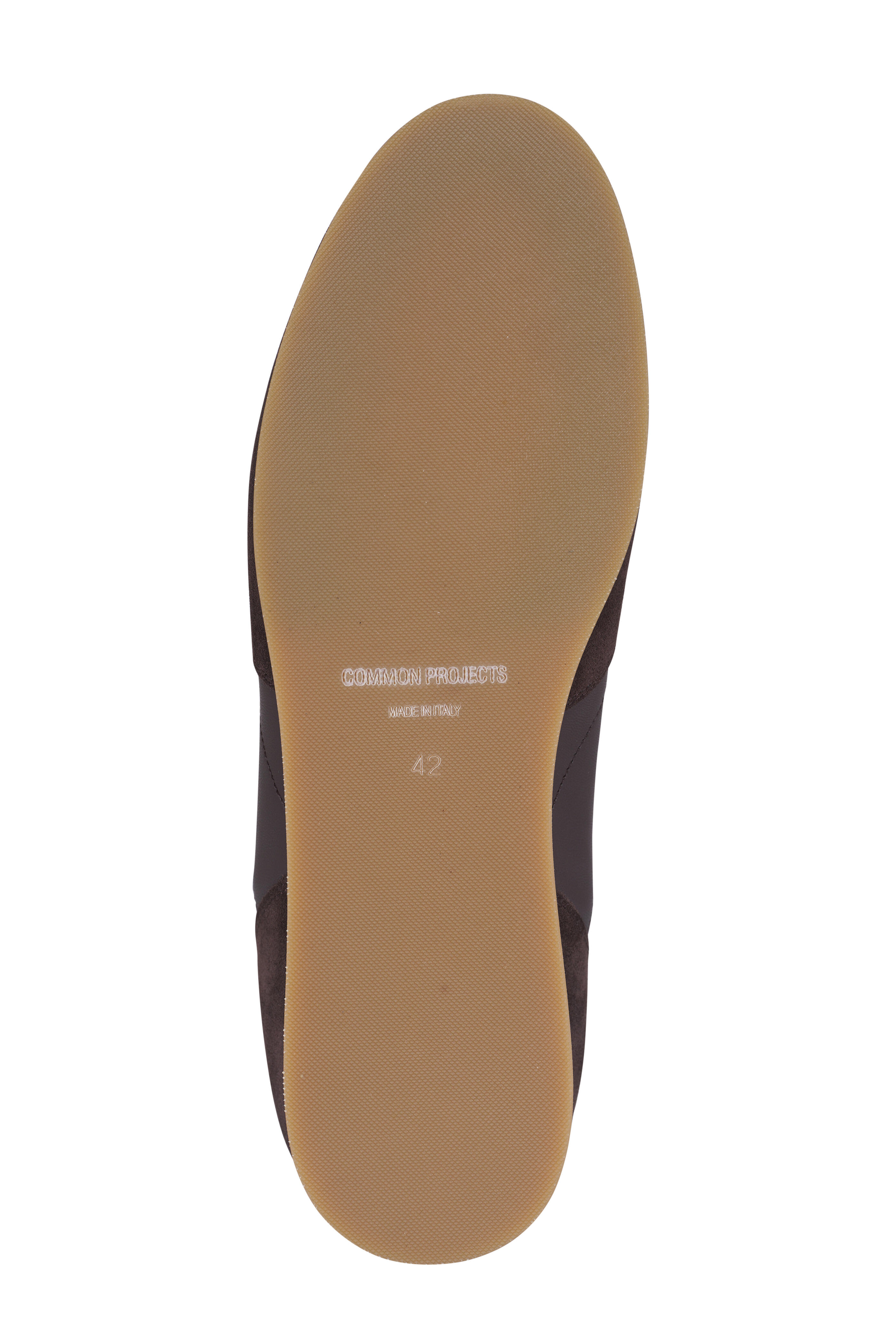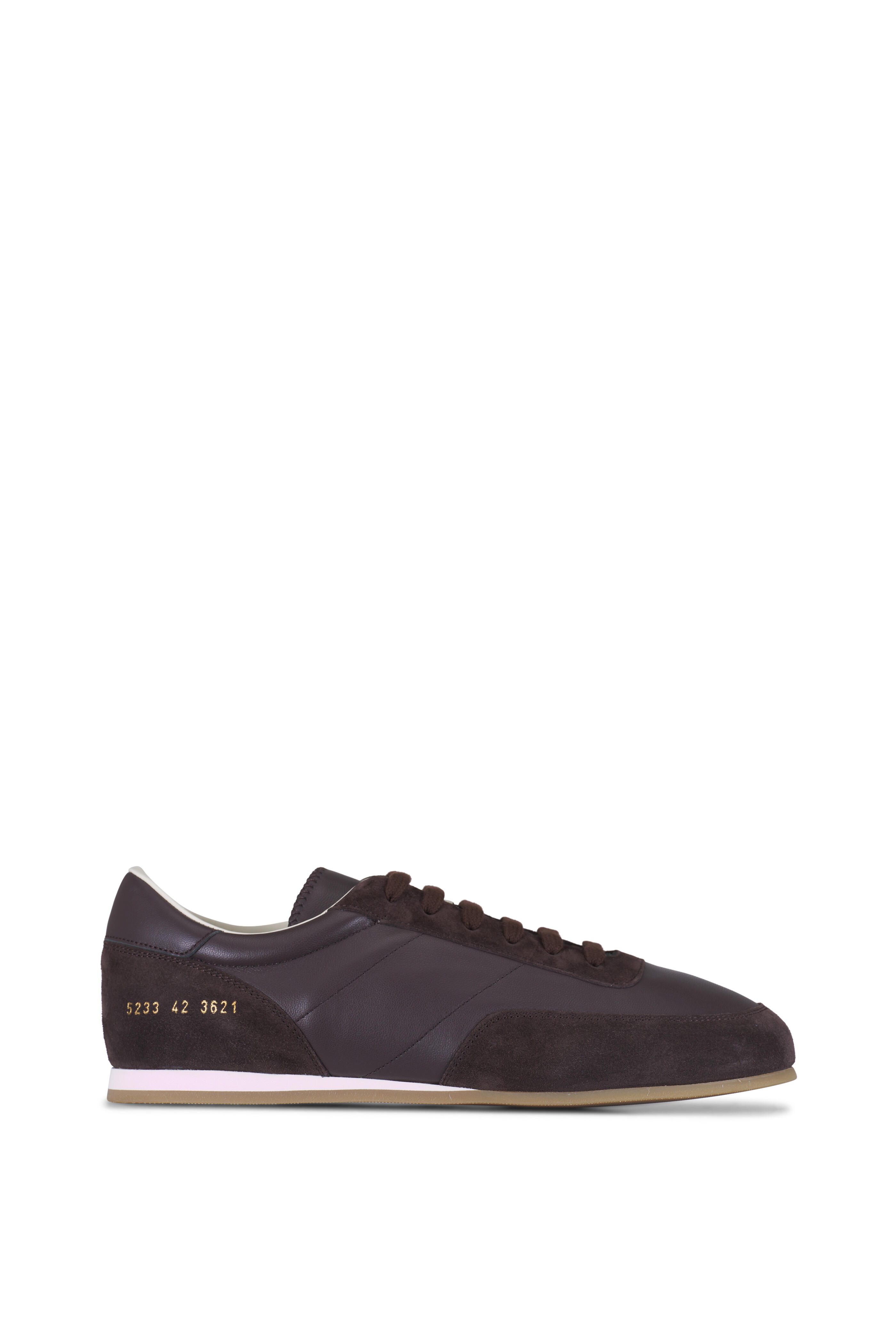 Leather & suede upper. Round toe. Six eyelet lace-up closure. Gold embossed serial number at side. Leather lining and insole. Rubber sole. Made in Italy.