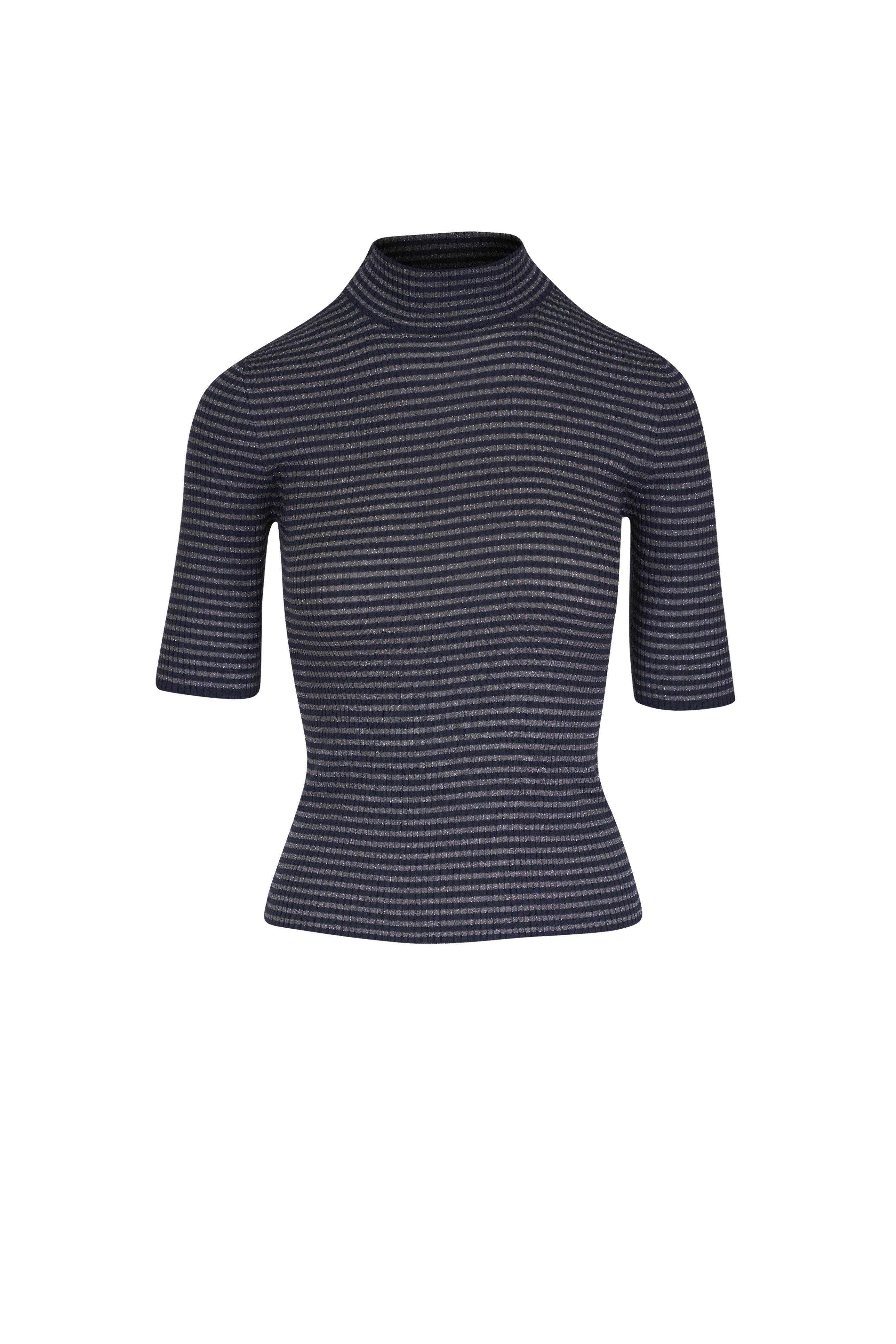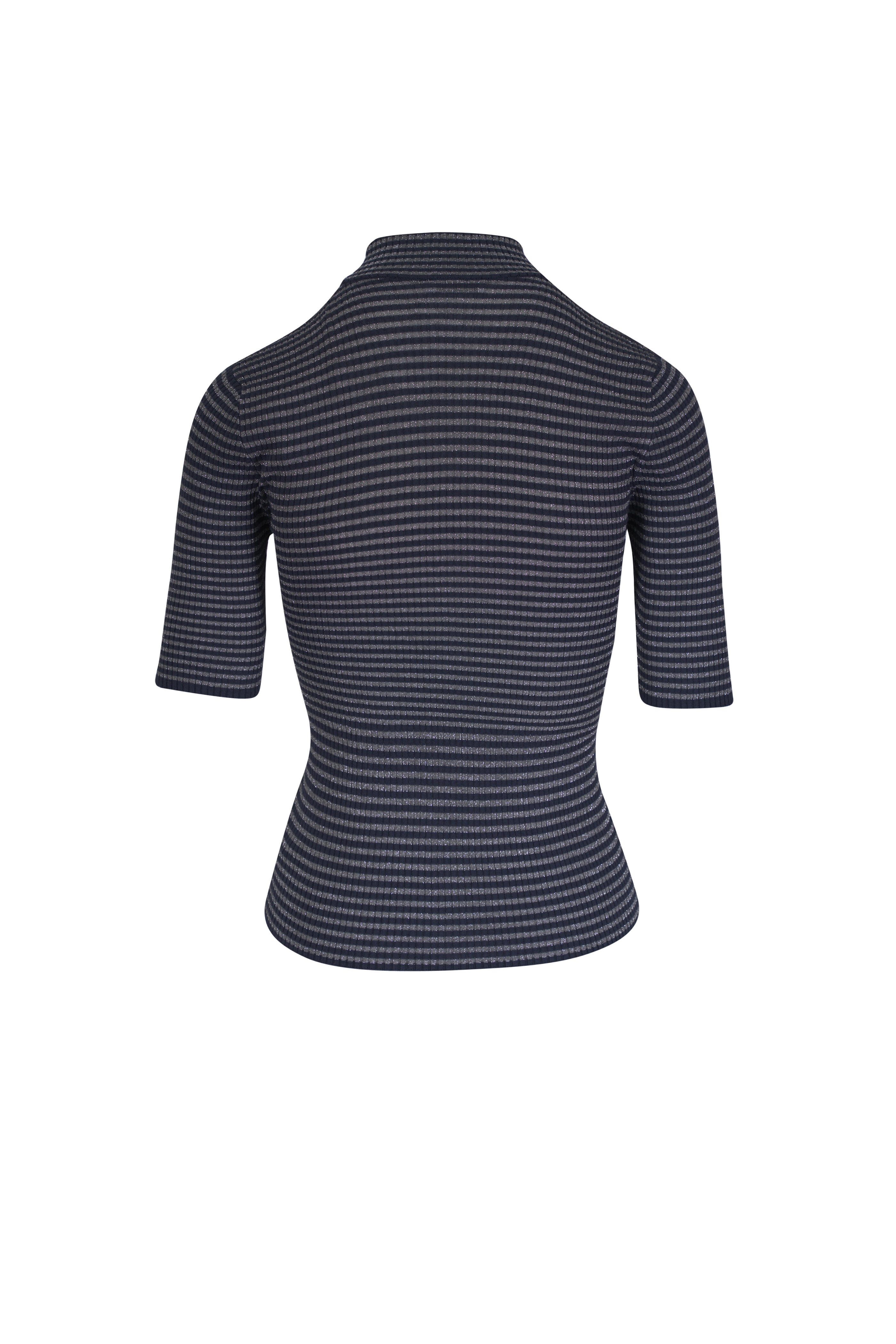 Midnight Stripe Shimmering Wool Ribbed T-Shirt