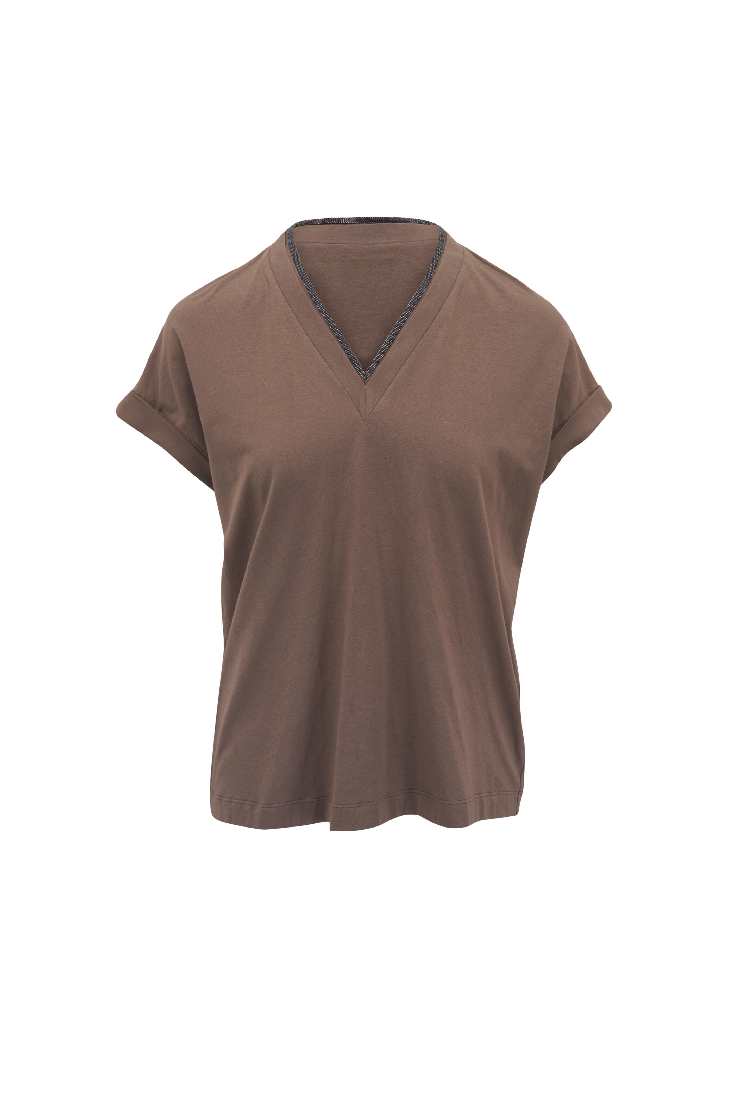 Chocolate Stretch Cotton Knit Top