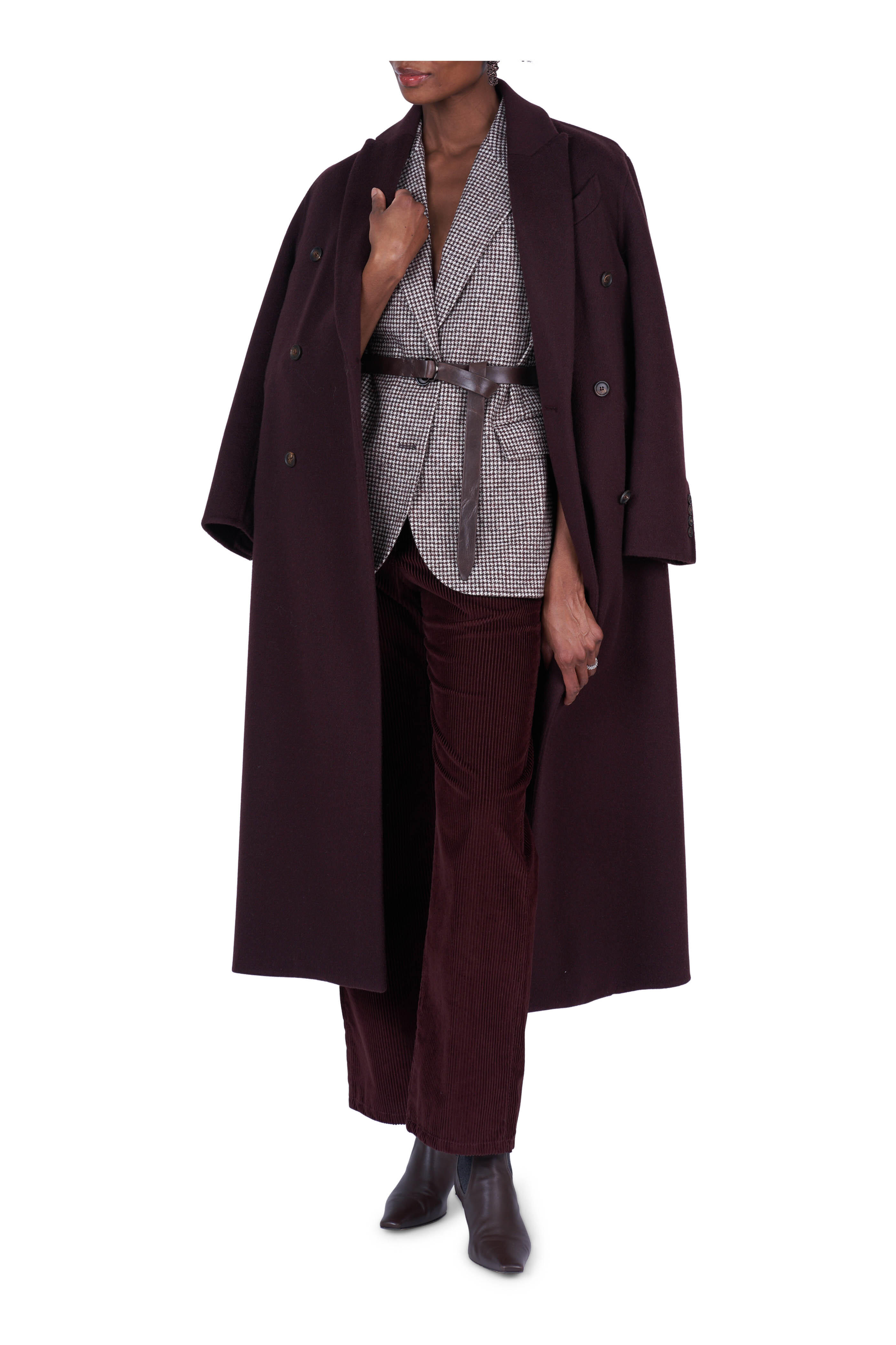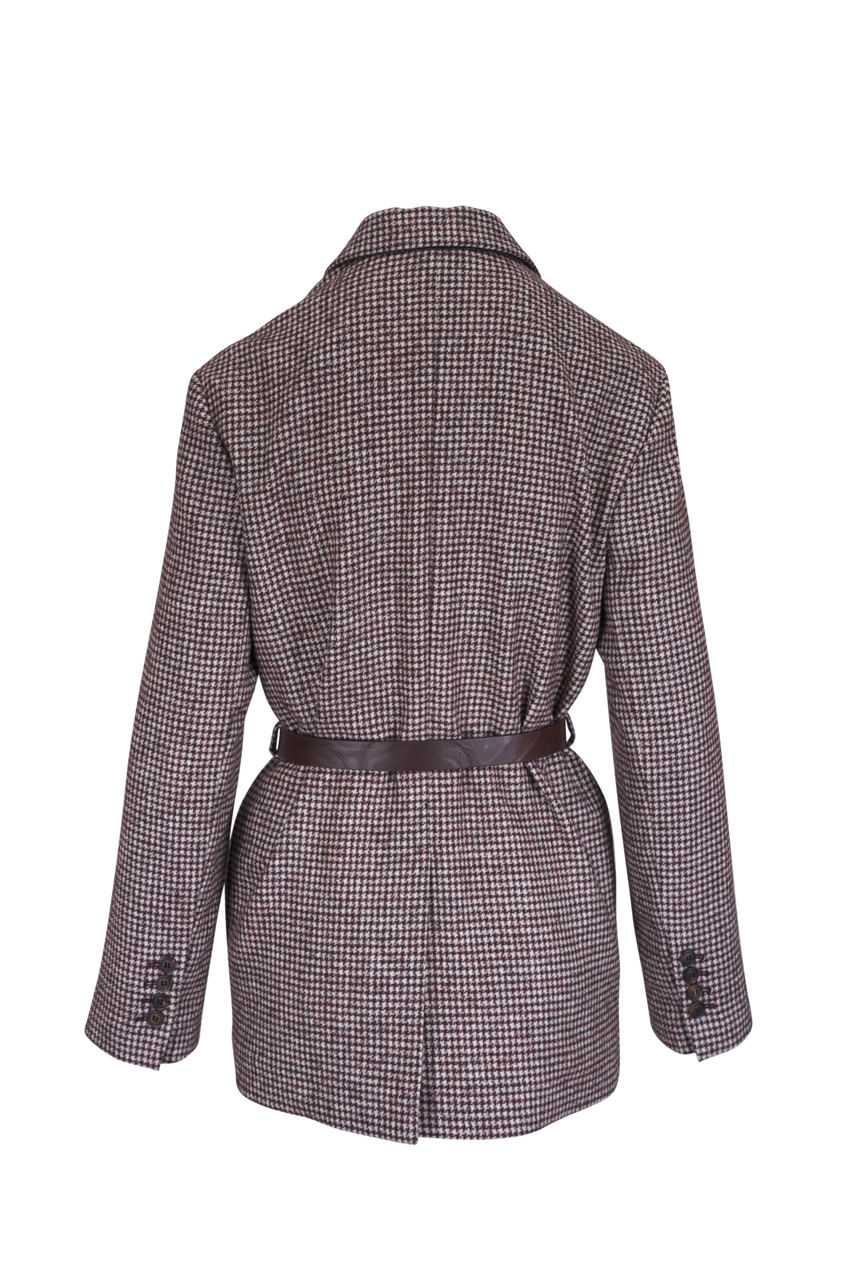 Notched lapels. Two button closure. Removable self-tie belt. Lower patch pockets; chest welt pocket. Back vent. Made in Italy. 58% wool, 33% alpaca, 9% polyamide. Dry clean.