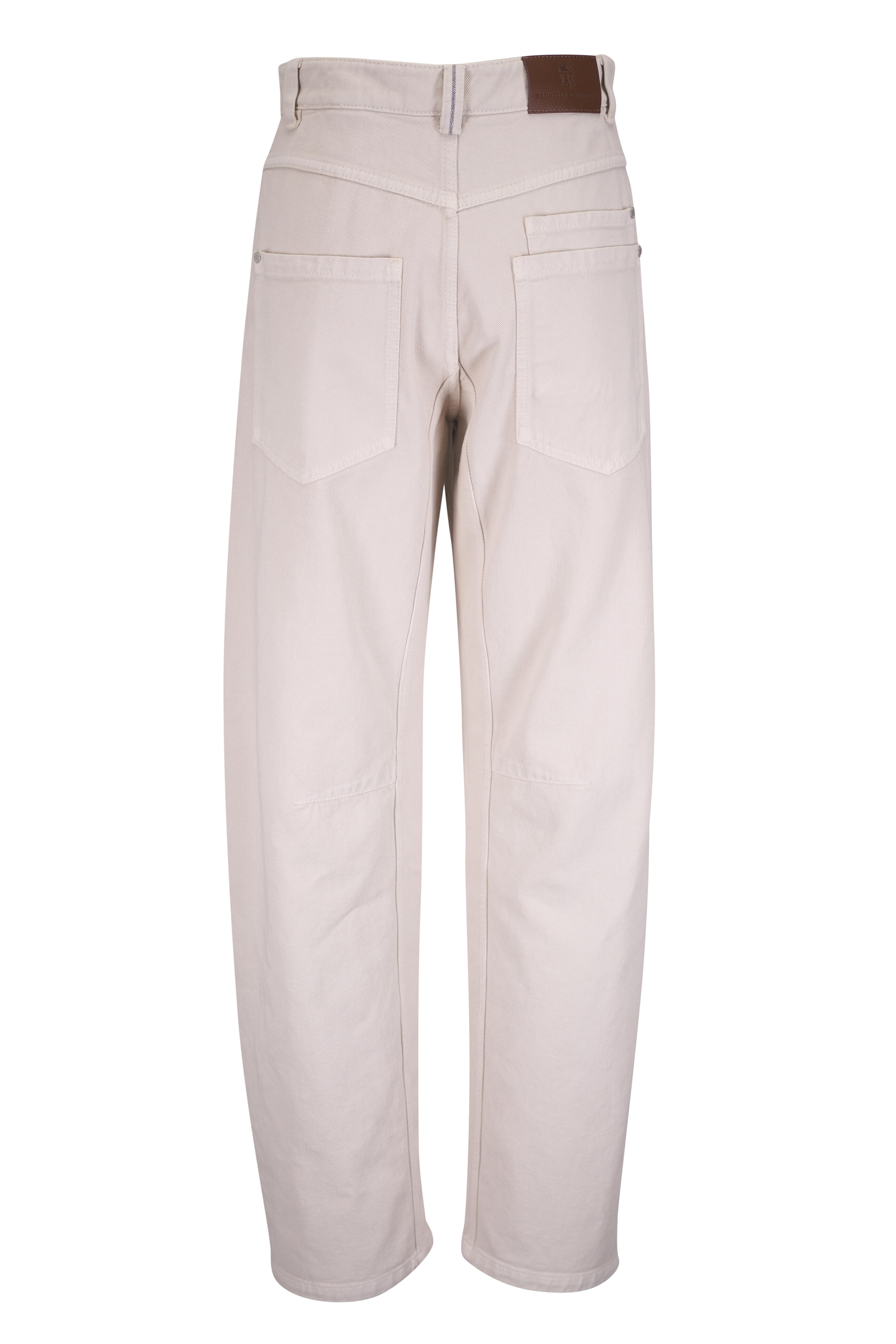 Dyed Warm White Soft Curved Cotton Denim Pant
