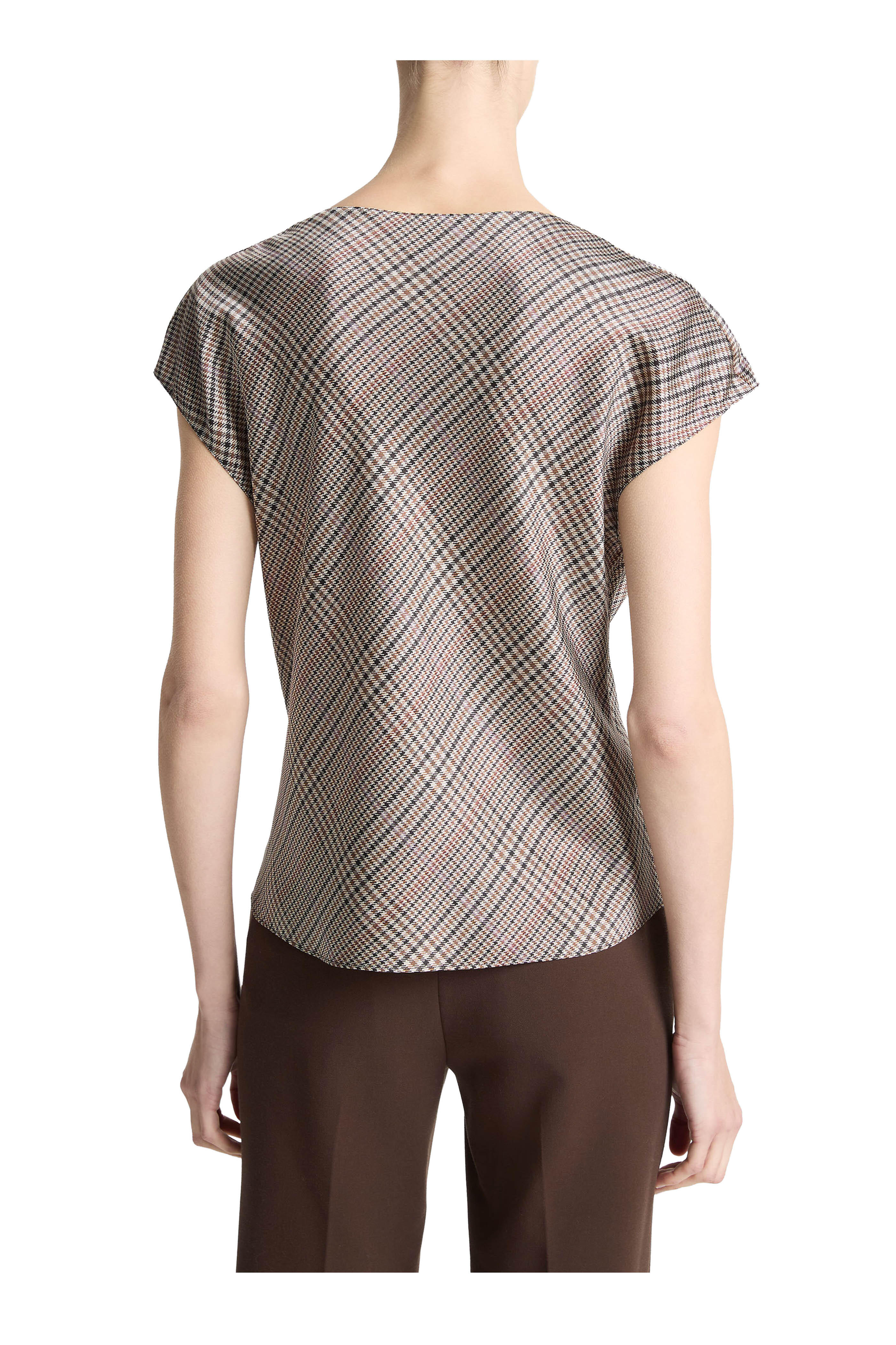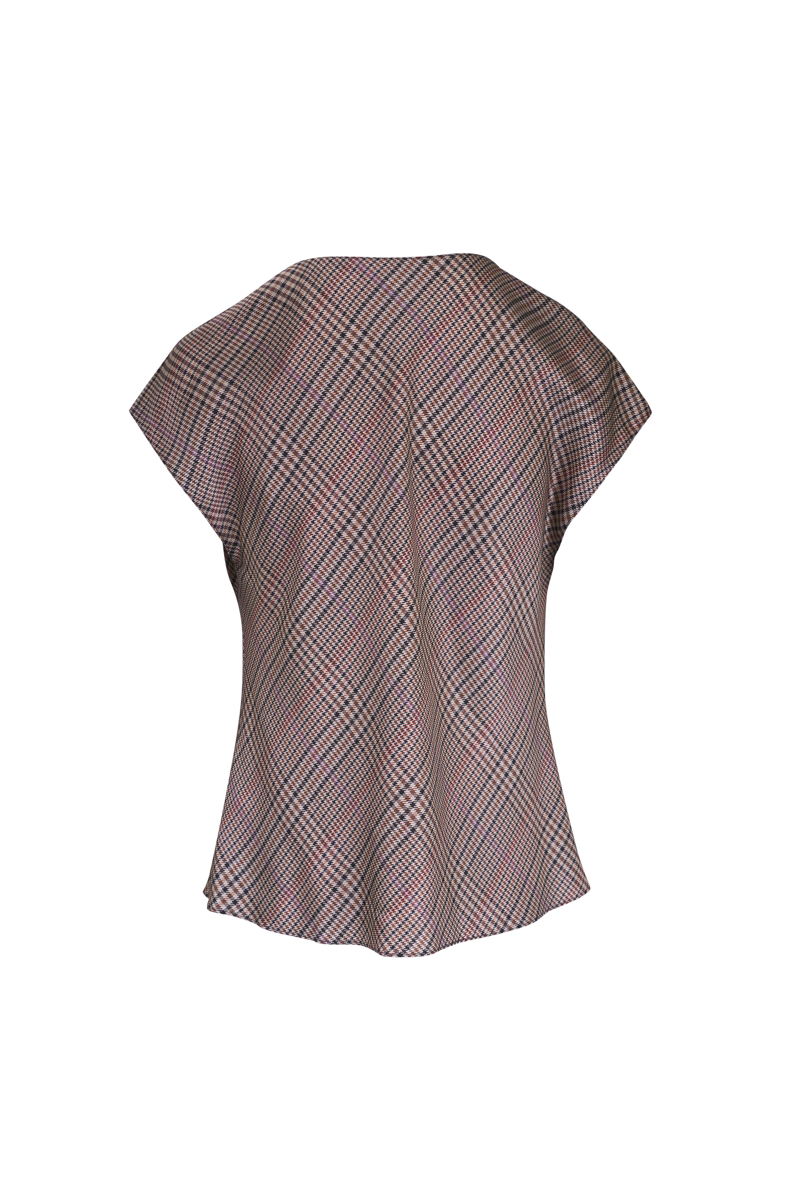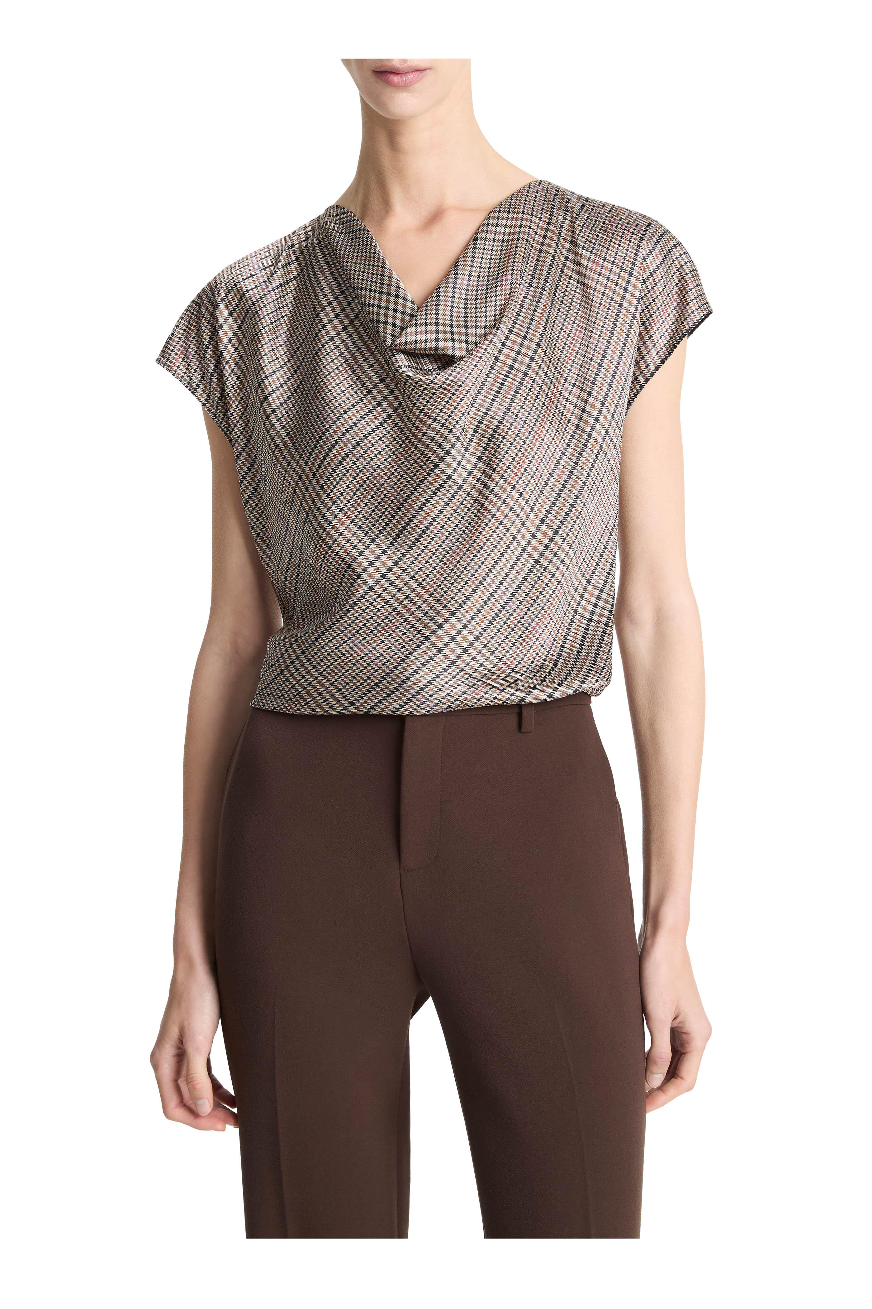 • Vince - Multicolor Plaid Silk Cowl Neck Blouse