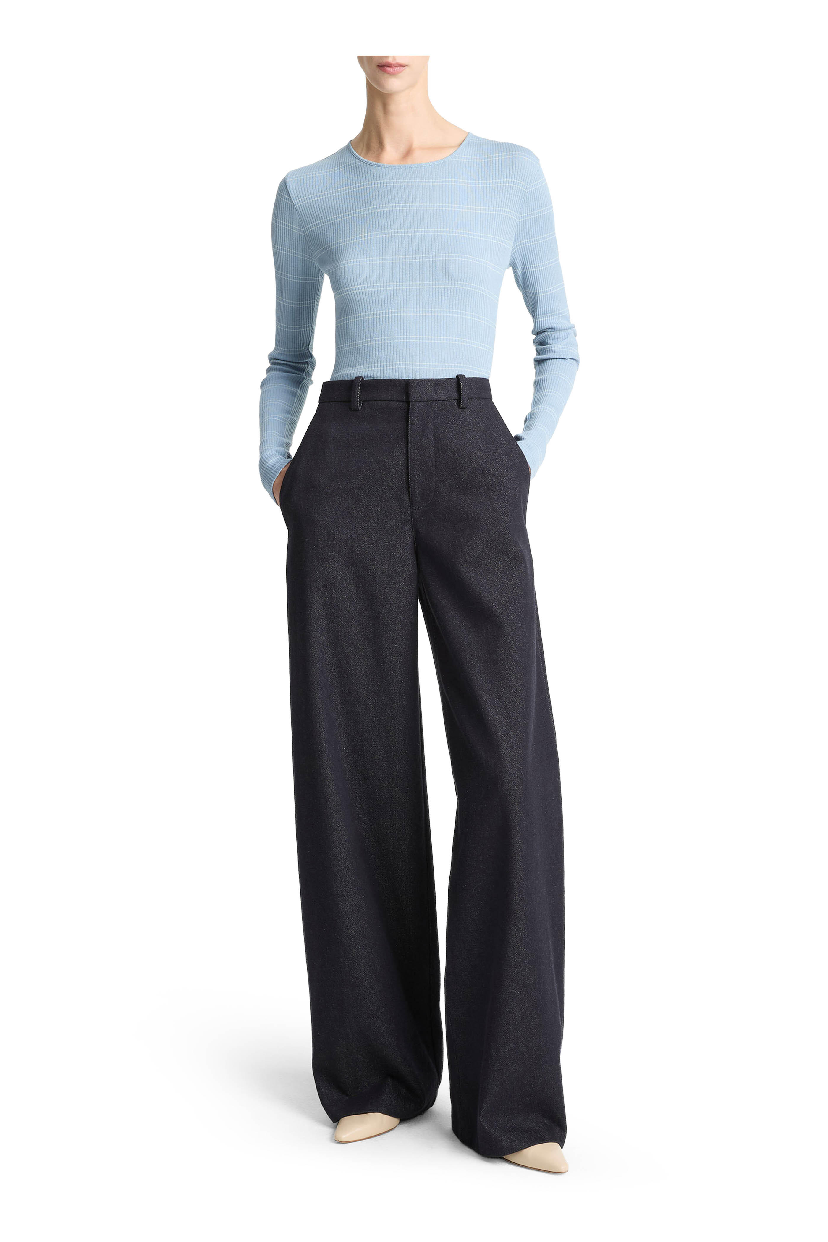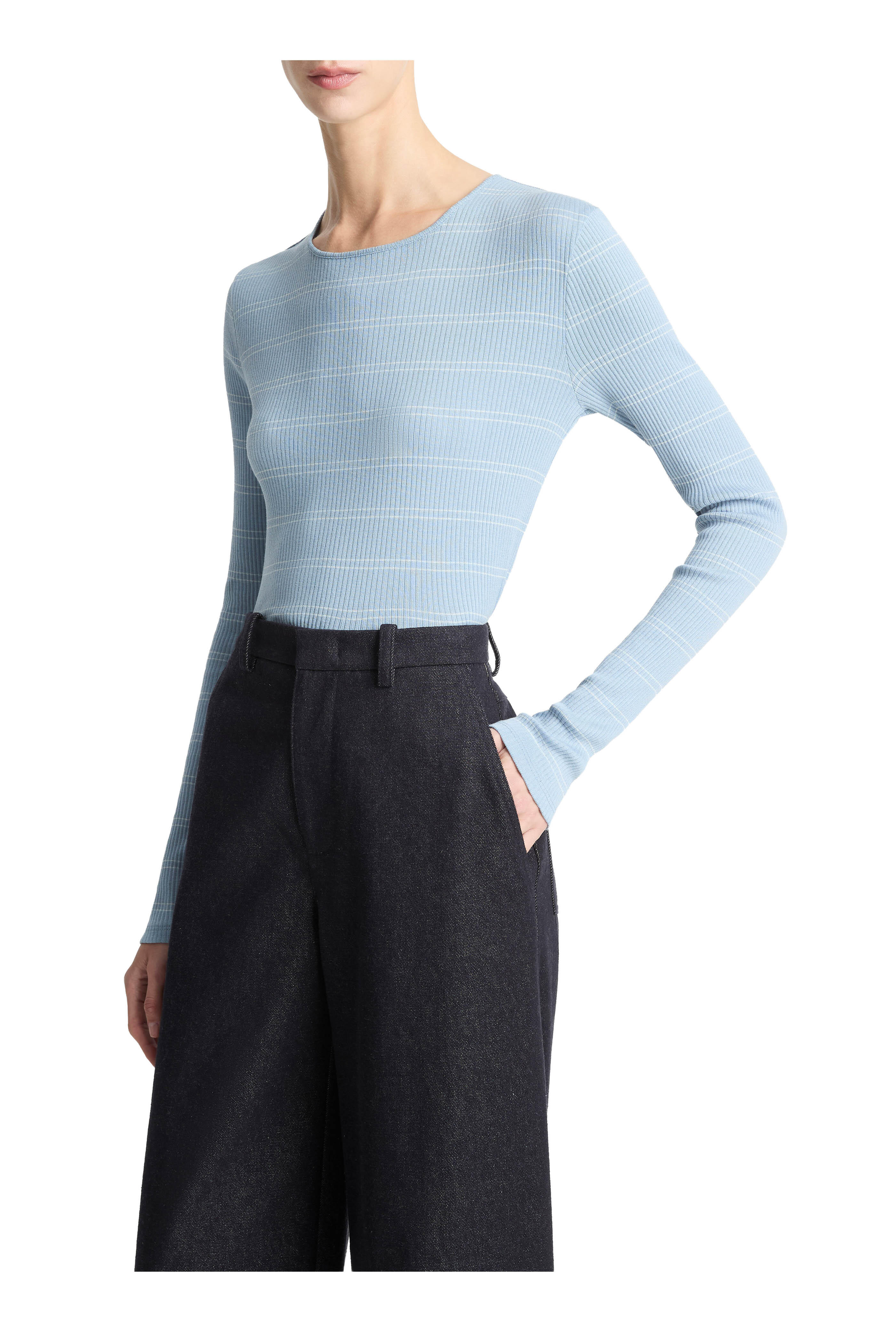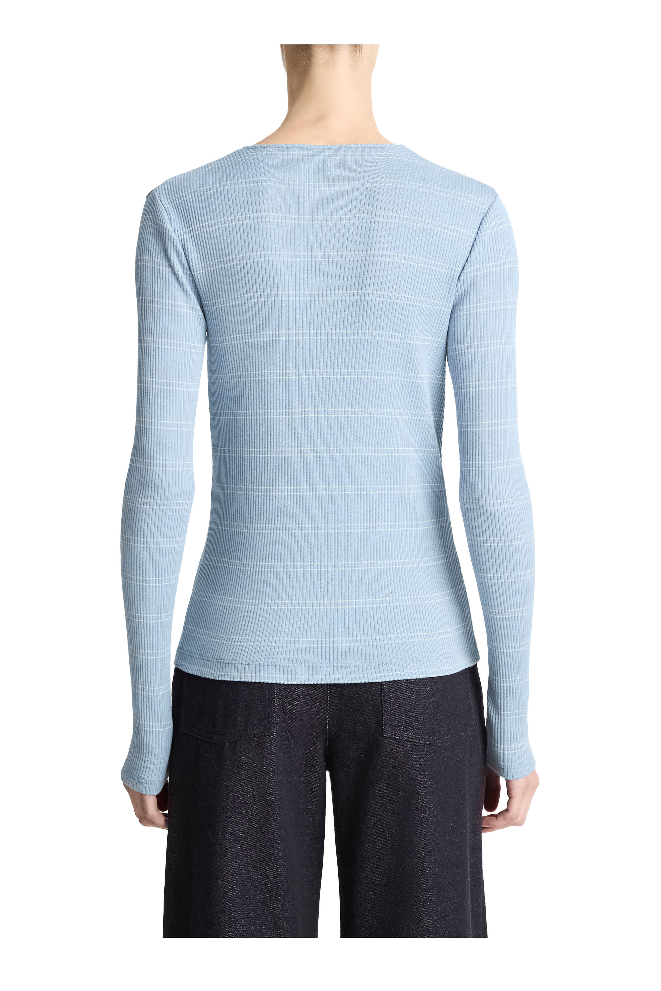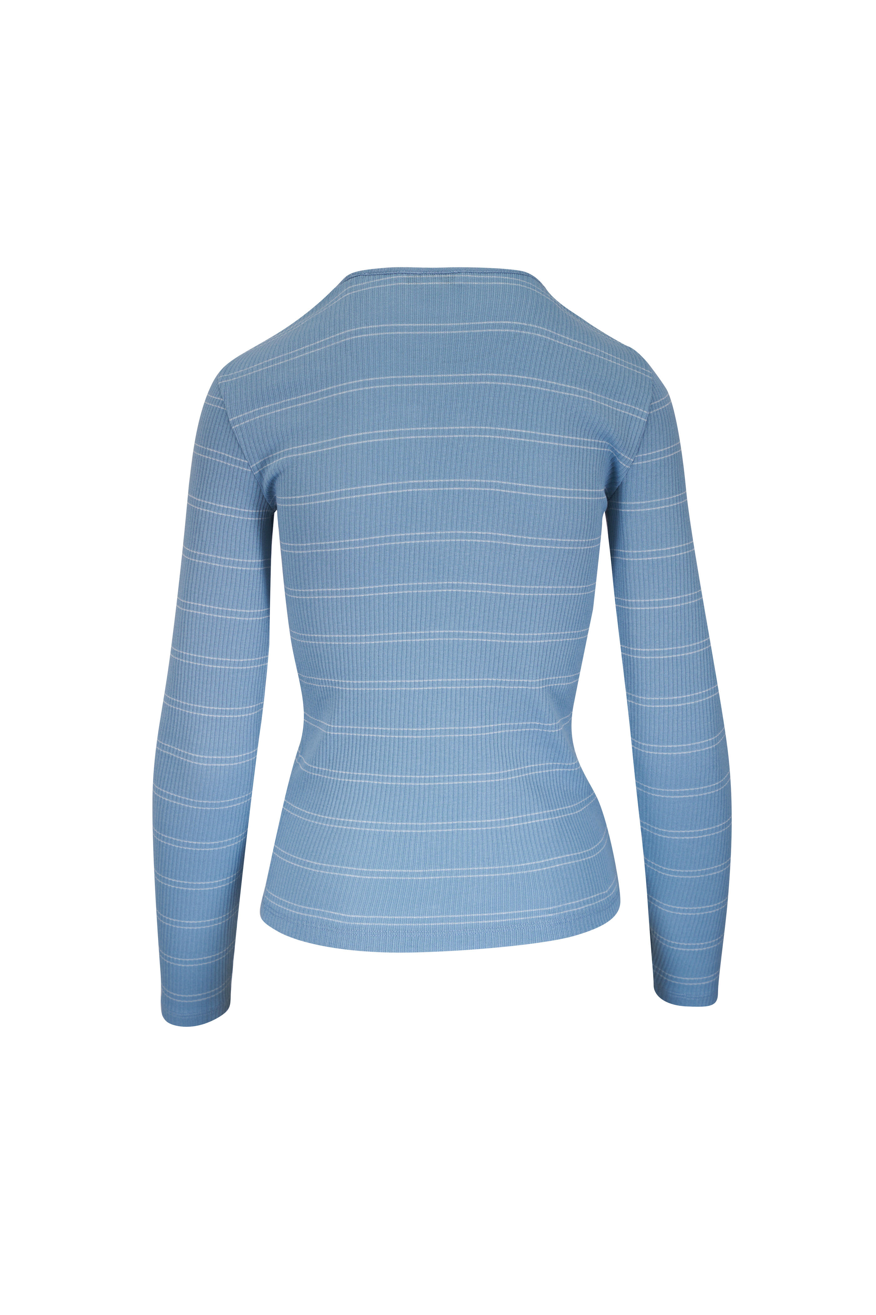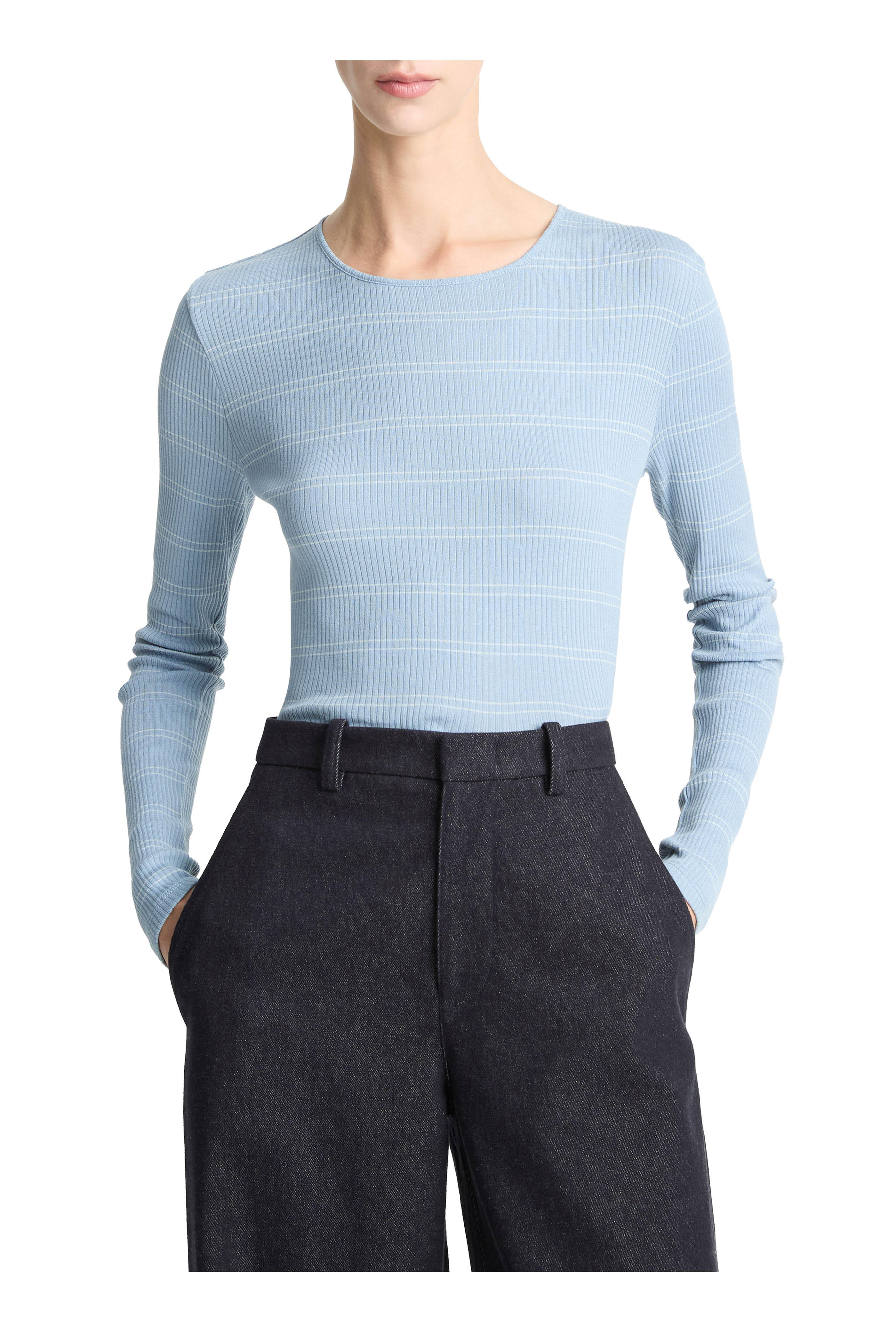 • Vince - Pale Blue Stripe Cotton Long Sleeve T-Shirt